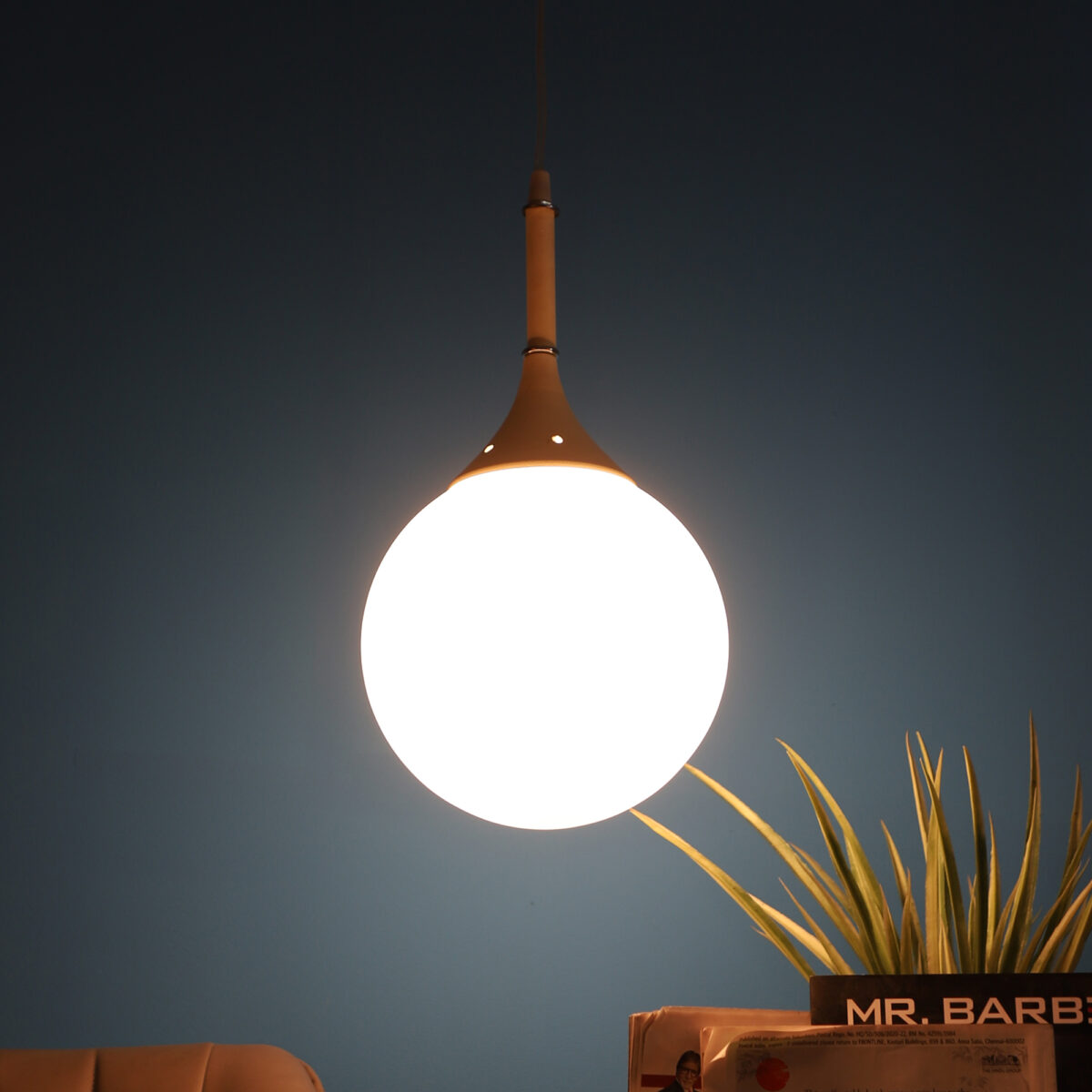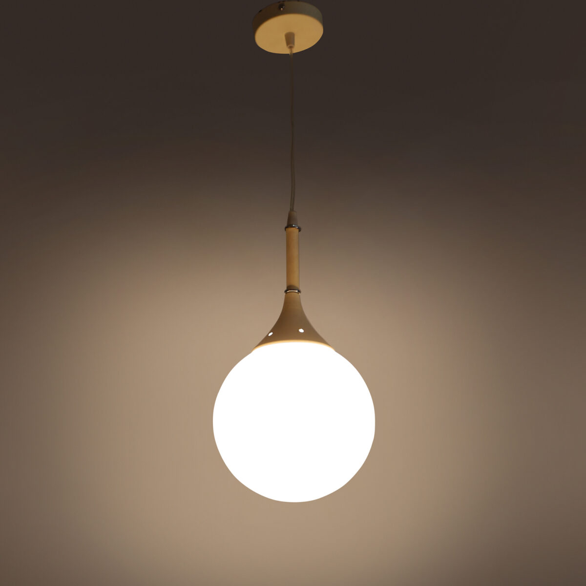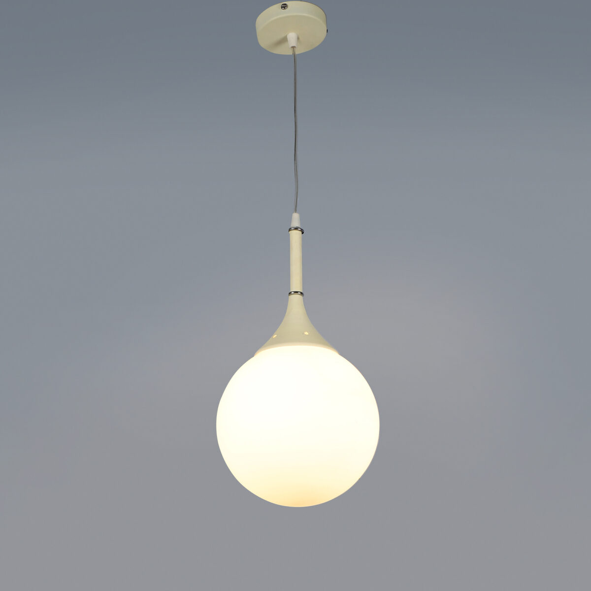 Powder coated white finish, modern doom (globe) glass, single hanging light made of mild steel and glass. It is one of the regular design which is never out of trend. The suspension can be adjusted at time of installation to the desired height. It is maintenance free, easy to remove glass and wash them, comes with an E27 holder, only the change of lamp is required, which is available locally everywhere. Application includes both residential and commercial premises wherever it matches with your interiors. Also available in three lamp option with code HL3610. Can be customized as per requirement in case of bulk quantities. Lamp not included.