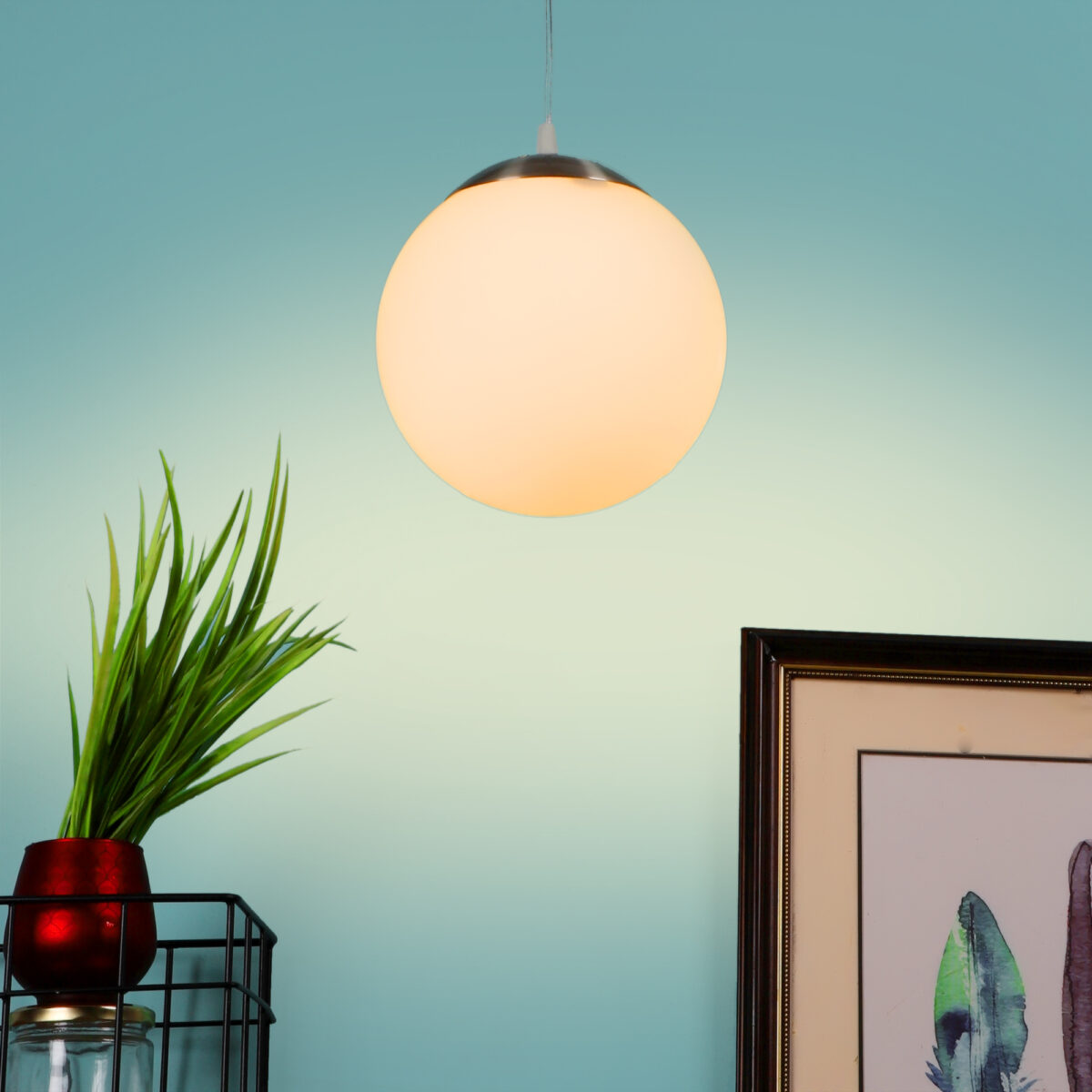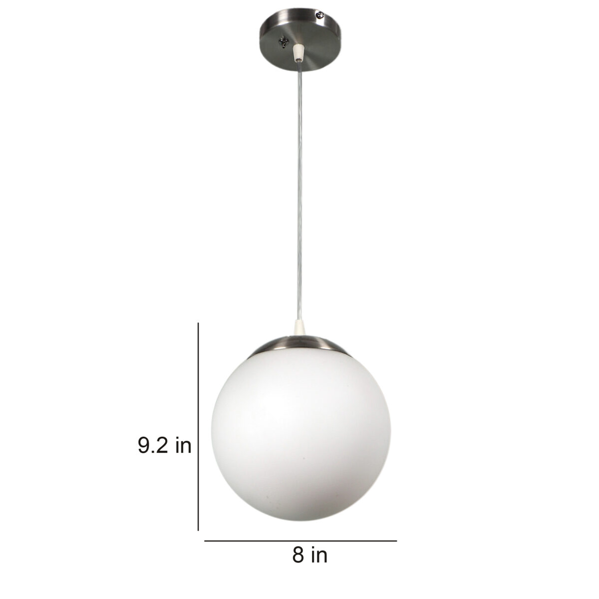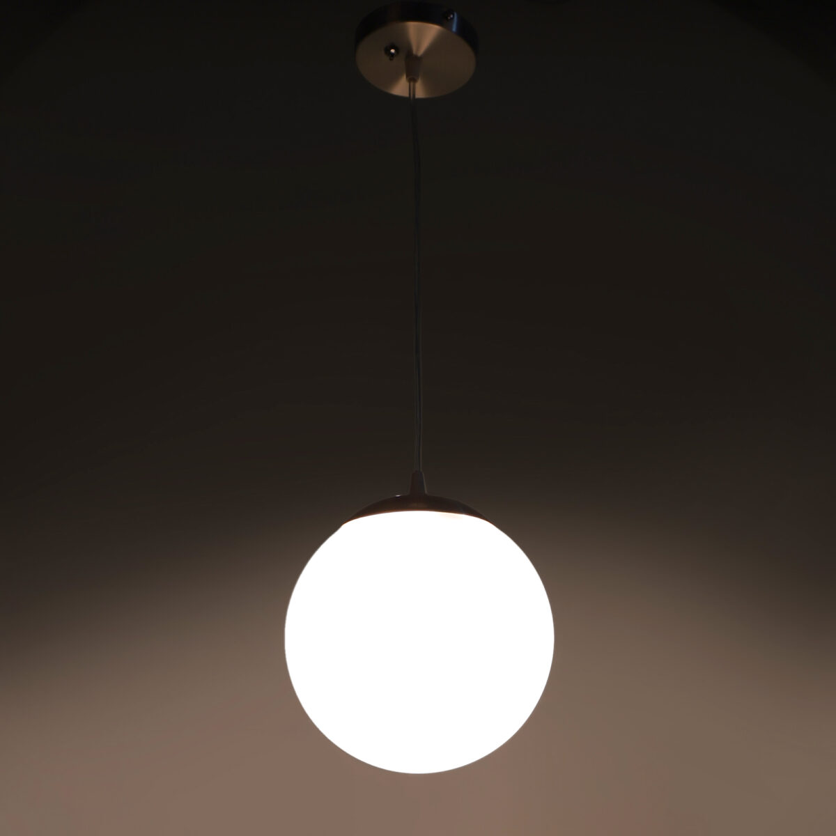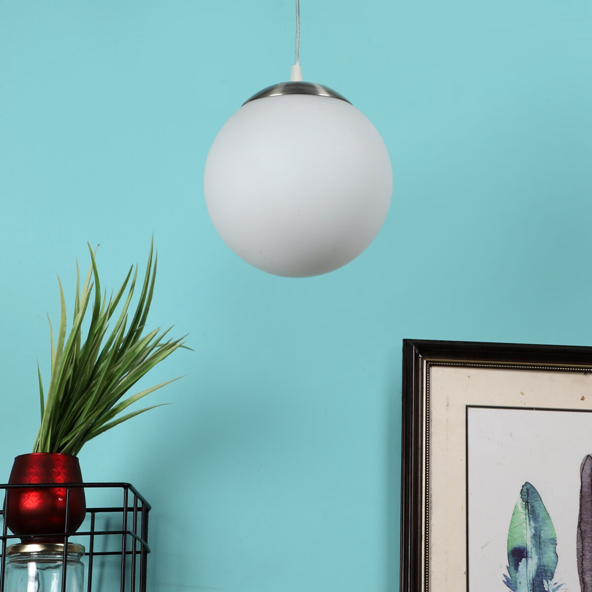 Silver (satin nickel) finish, modern doom (globe) glass, single hanging light made of mild steel and glass. It is one of the regular design which is never out of trend. The suspension can be adjusted at time of installation to the desired height. It is maintenance free, easy to remove glass and wash them, comes with an E27 holder, only the change of lamp is required, which is available locally everywhere. Application includes both residential and commercial premises wherever it matches with your interiors. It is one of the best selling design in our catalogue. Also available in big size with code HL3626. . Matching wall light code – Wl1262, WL1272. Can be customized as per requirement in case of bulk quantities. Lamp not included.