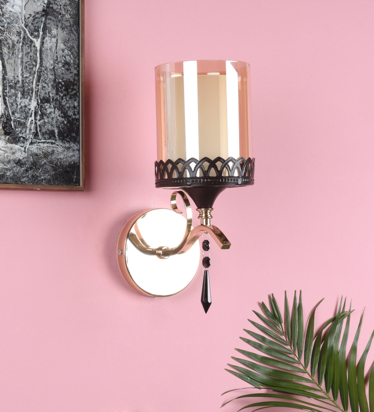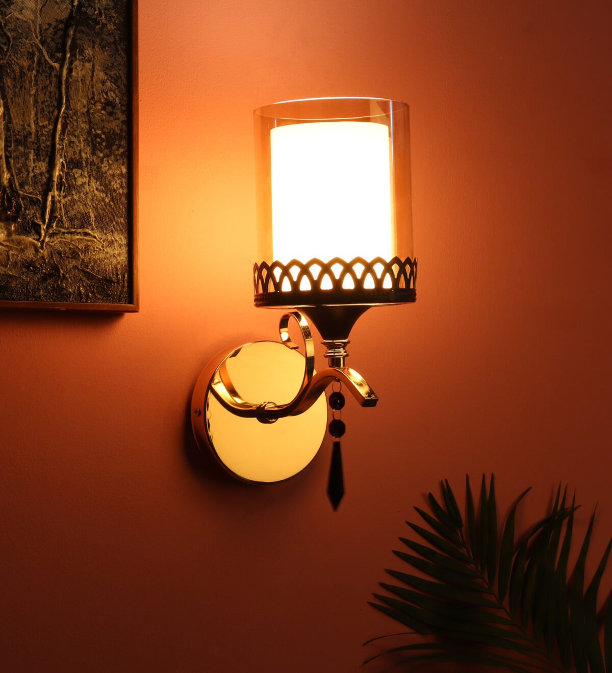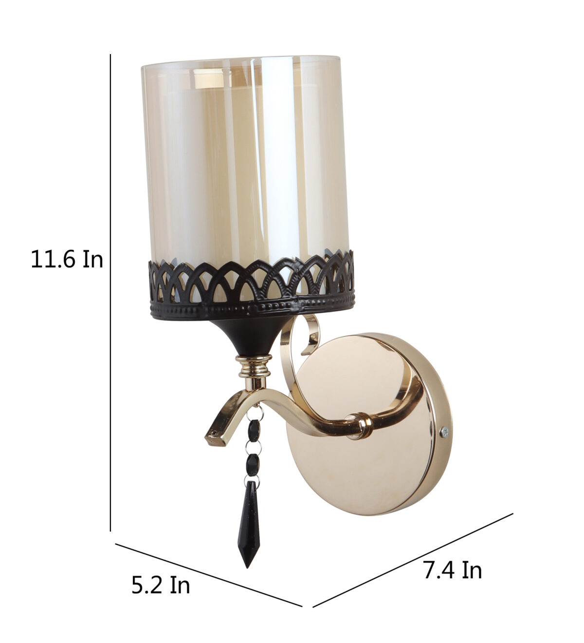 Gold modern, mild steel single wall light in Champaign colored glass. It is maintenance free, comes with an E27 holder, only the change of lamp is required, which is available locally everywhere. Matching double wall light code – WL2680. Application includes both residential and commercial premises wherever it matches with your interiors. Can be customized as per requirement in case of bulk quantities. LAMP NOT INCLUDED.