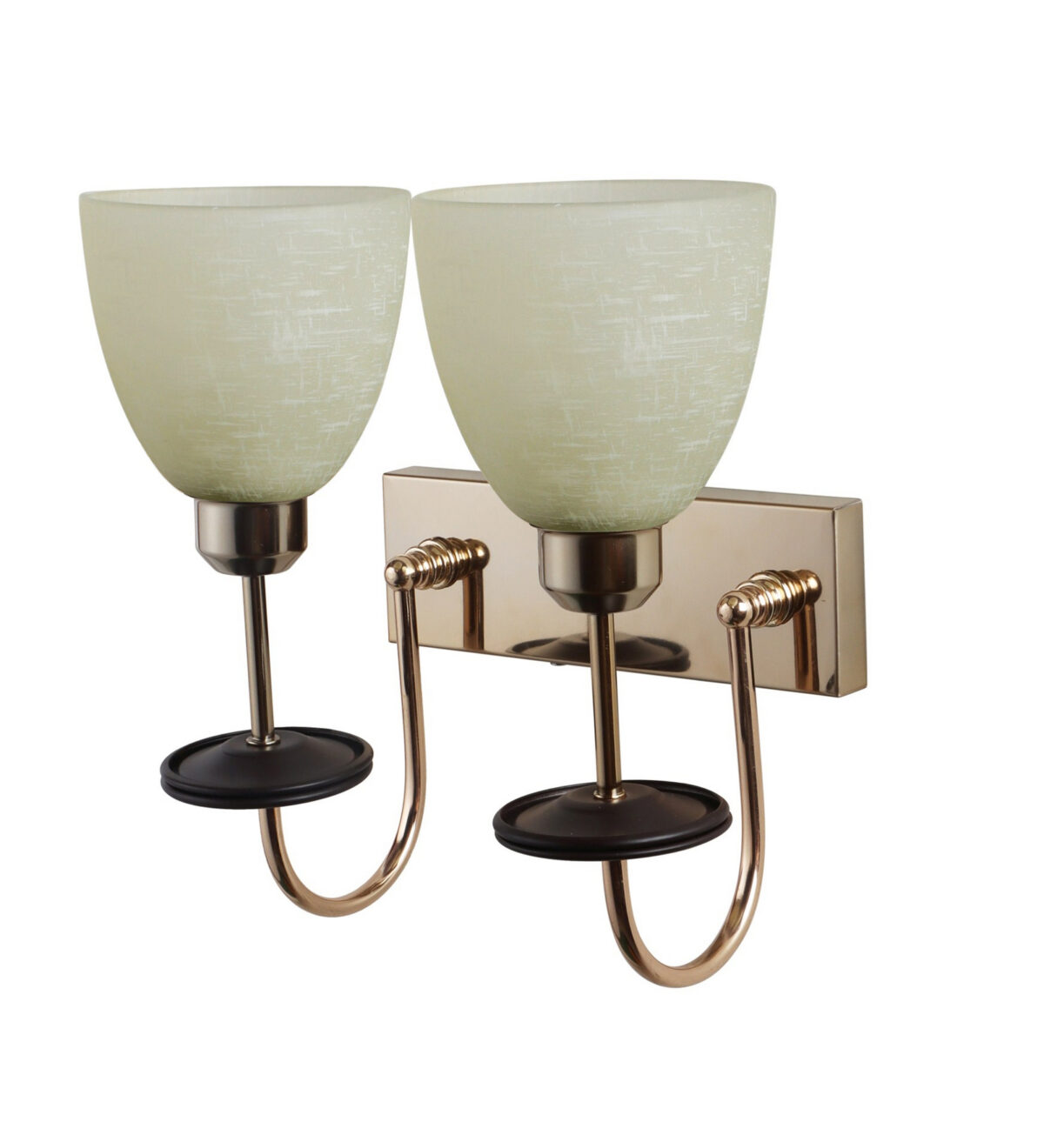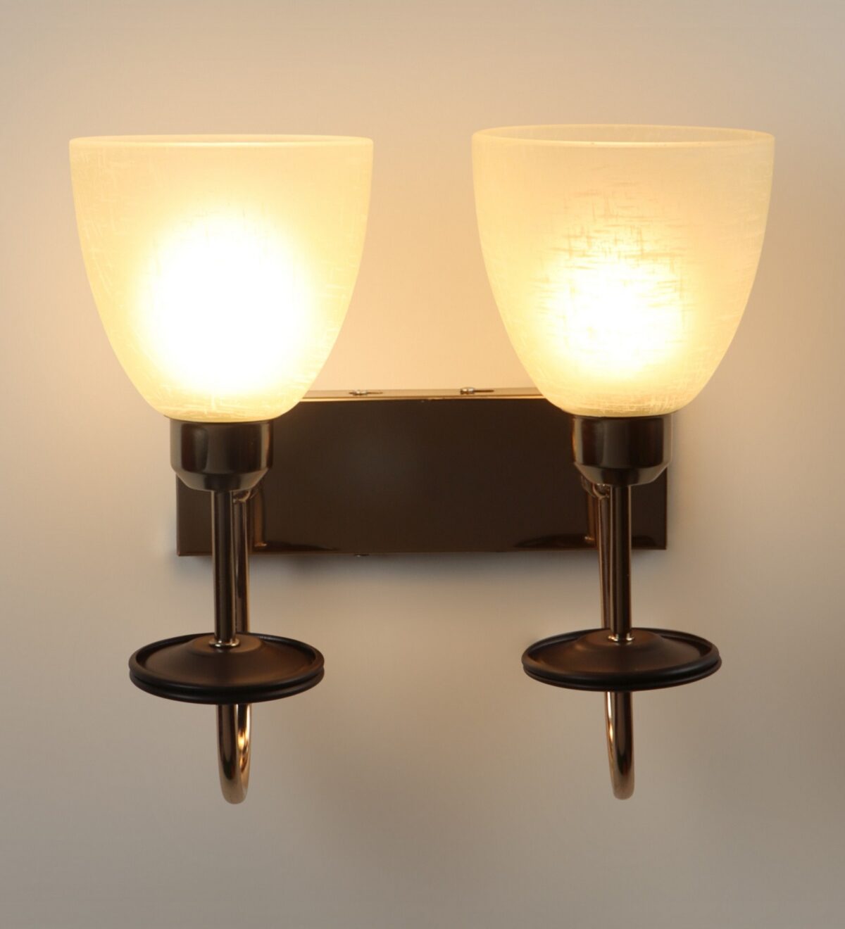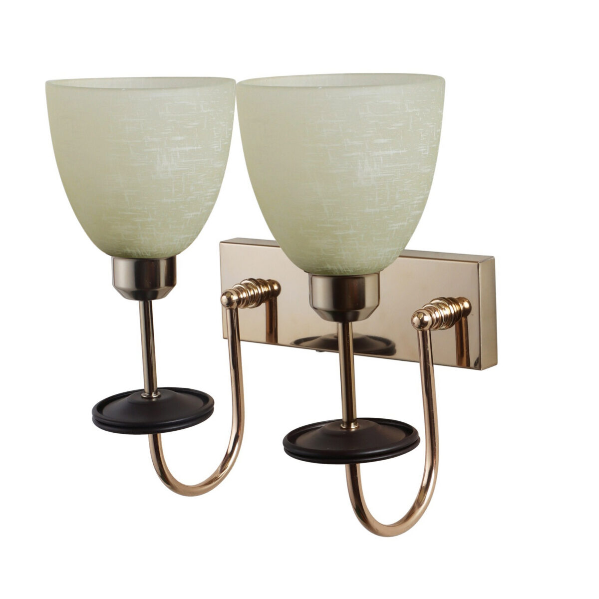 Gold modern, mild steel double wall light in white tectured glass. It is maintenance free, comes with an E27 holder, only the change of lamp is required, which is available locally everywhere. Matching single wall light code – WL2713. Application includes both residential and commercial premises wherever it matches with your interiors. Can be customized as per requirement in case of bulk quantities. LAMP NOT INCLUDED.
