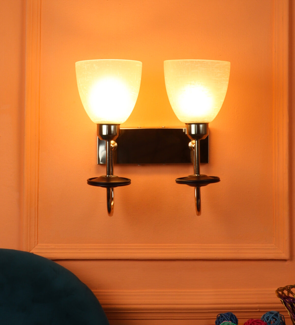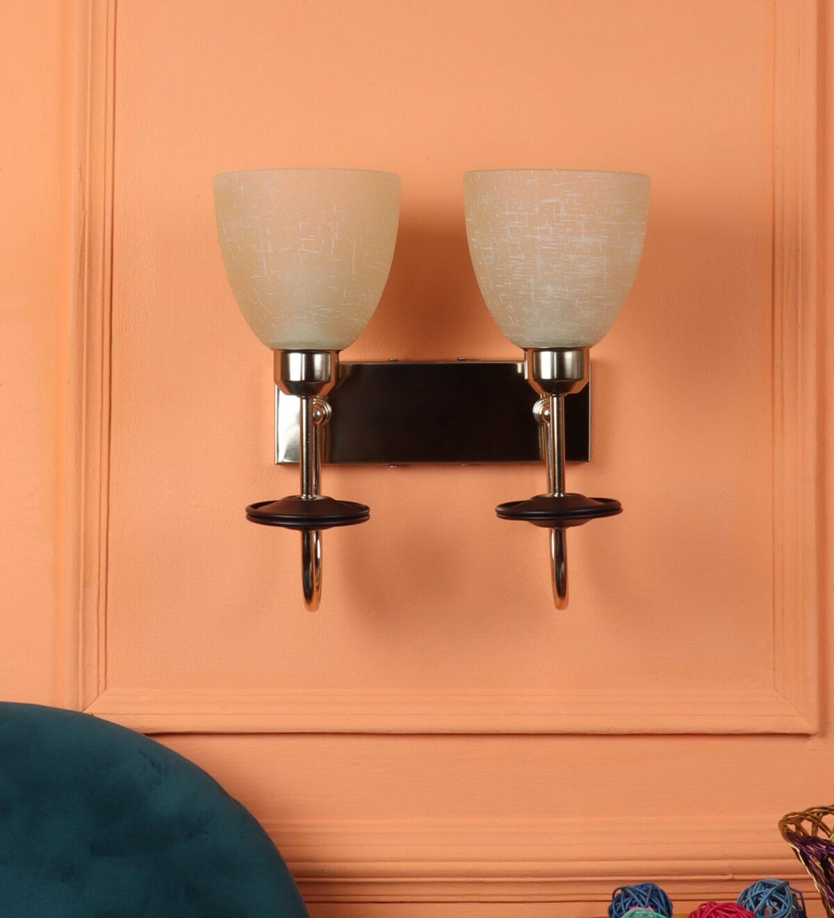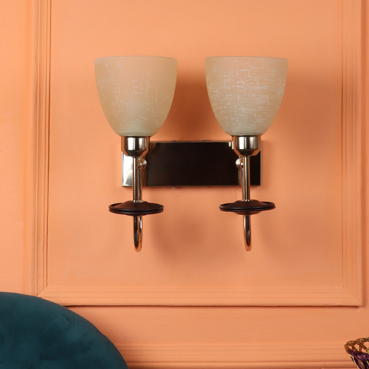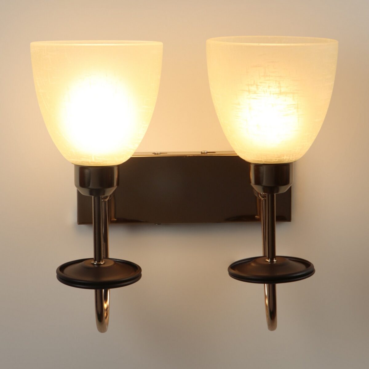 Gold modern, mild steel double wall light in white tectured glass. It is maintenance free, comes with an E27 holder, only the change of lamp is required, which is available locally everywhere. Matching single wall light code – WL2713. Application includes both residential and commercial premises wherever it matches with your interiors. Can be customized as per requirement in case of bulk quantities. LAMP NOT INCLUDED.