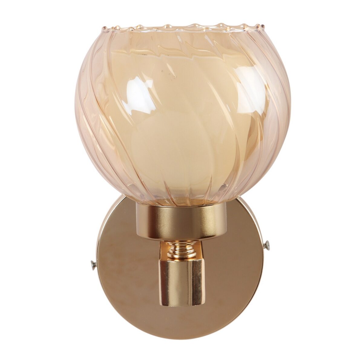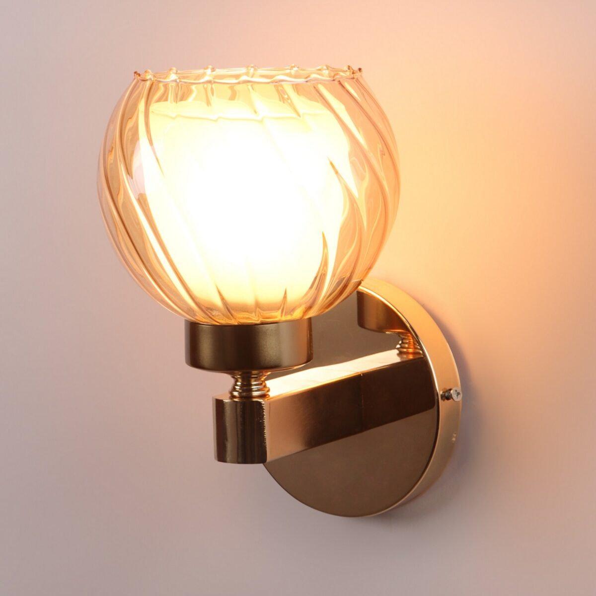 Gold finish, mild steel single wall light in Champaign colored two layered round glass. It is maintenance free, comes with an E27 holder, only the change of lamp is required, which is available locally everywhere. Matching double wall light code – WL2716. Application includes both residential and commercial premises wherever it matches with your interiors. Can be customized as per requirement in case of bulk quantities. LAMP NOT INCLUDED.