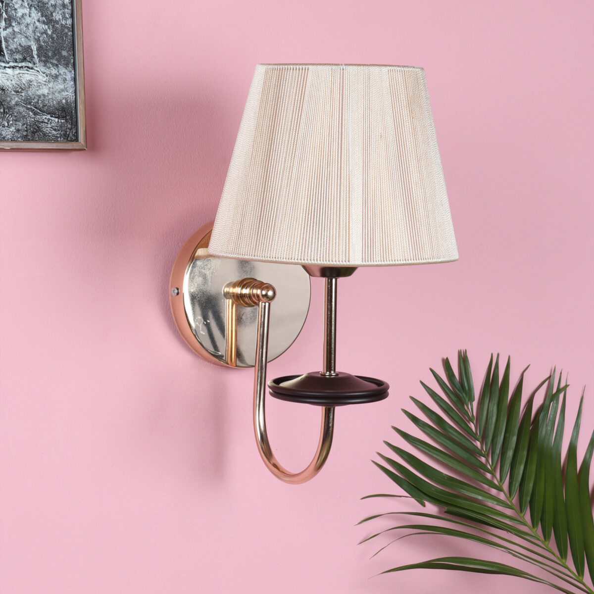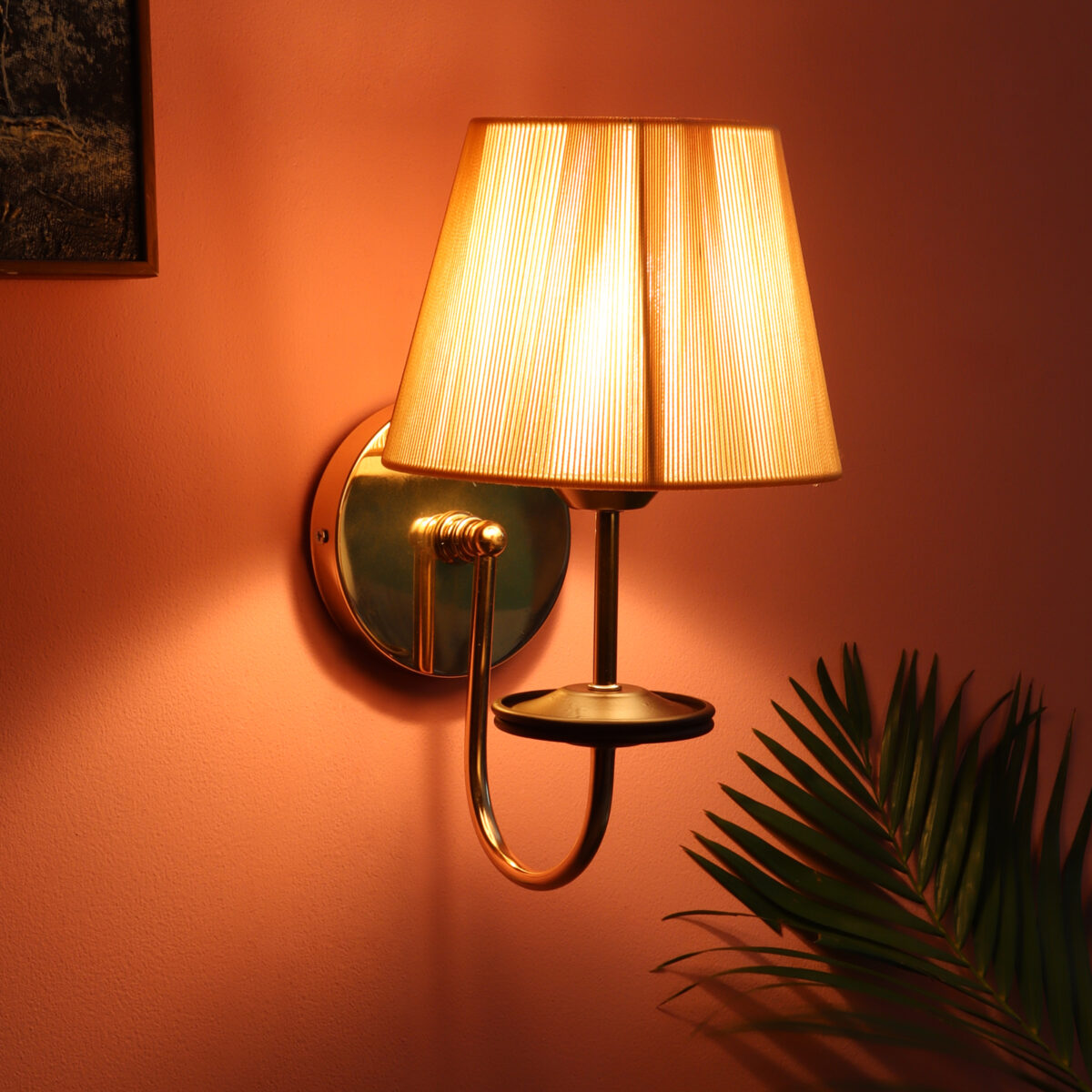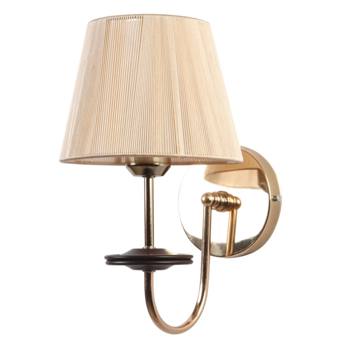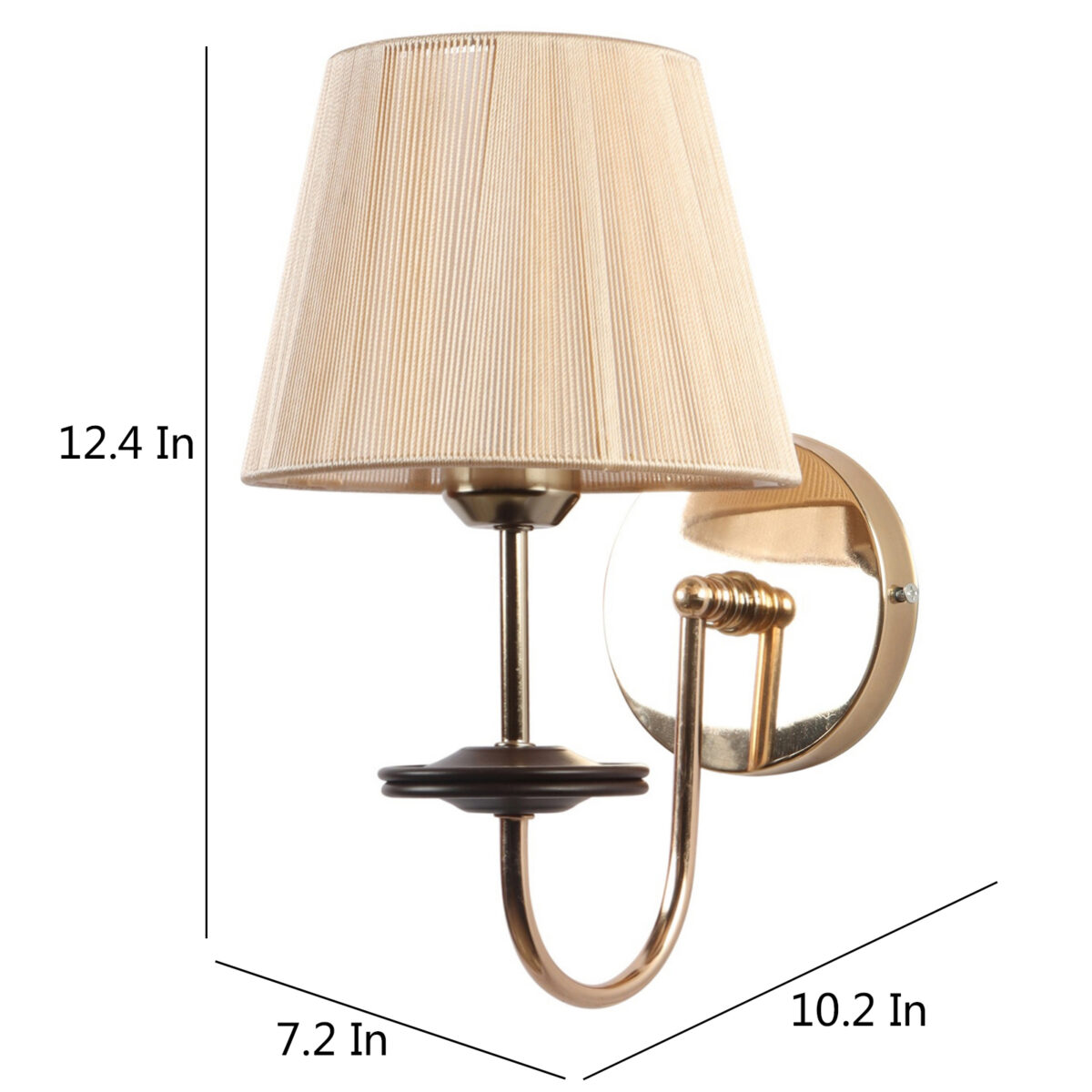 Gold finish modern single wall light with taper off white fabric shade. It is maintenance free, comes with an E27 holder, only the change of lamp is required, which is available locally everywhere. Application includes both residential and commercial premises wherever it matches with your interiors. It is ideal for installing on both sides of the bed at a low height. Ideal for hotel or guest rooms.Matching double wall light code – WL2720. LAMP NOT INCLUDED.