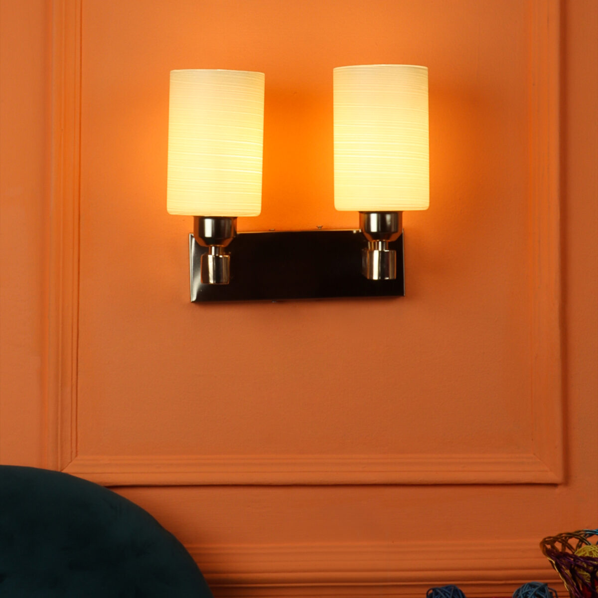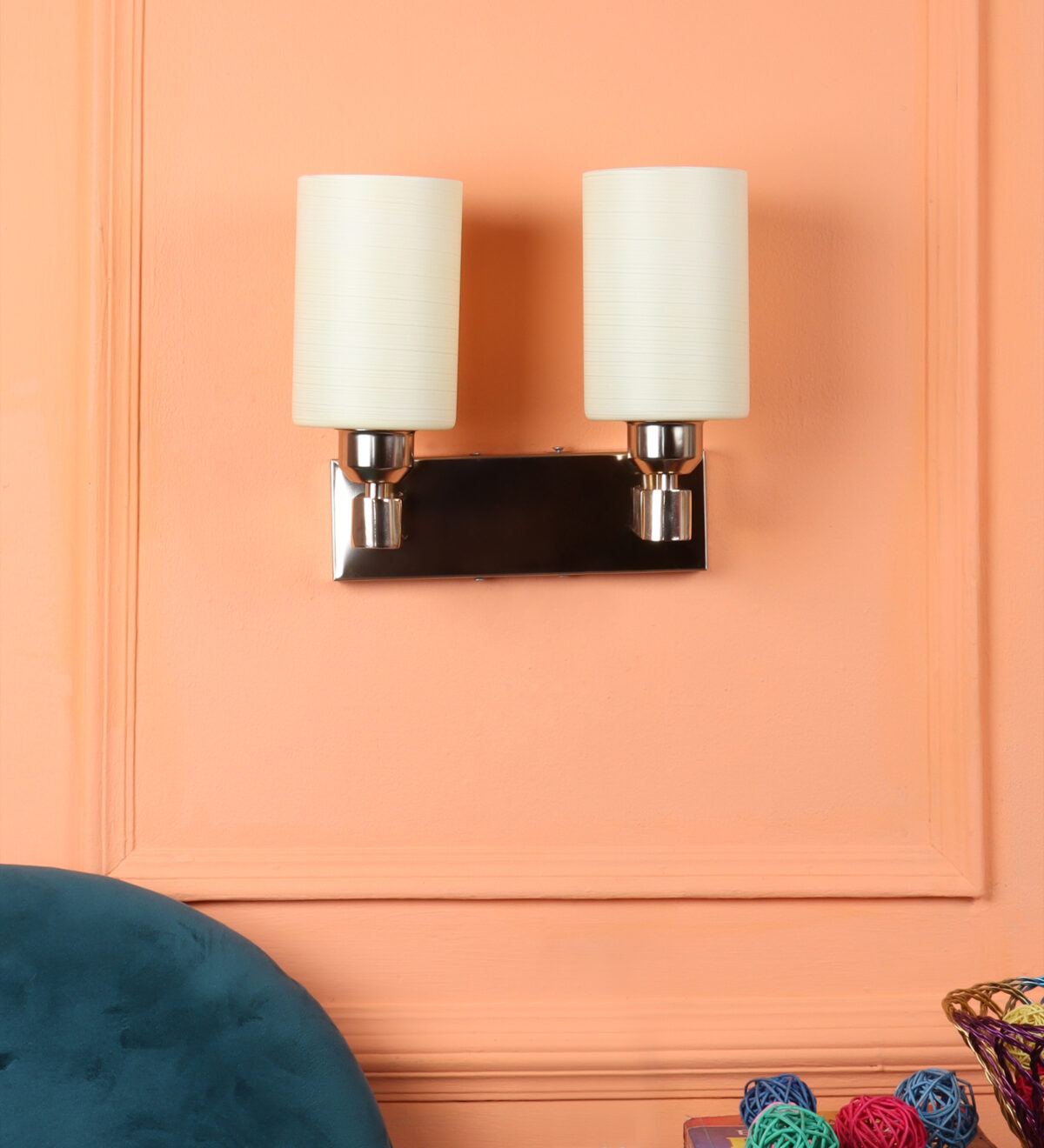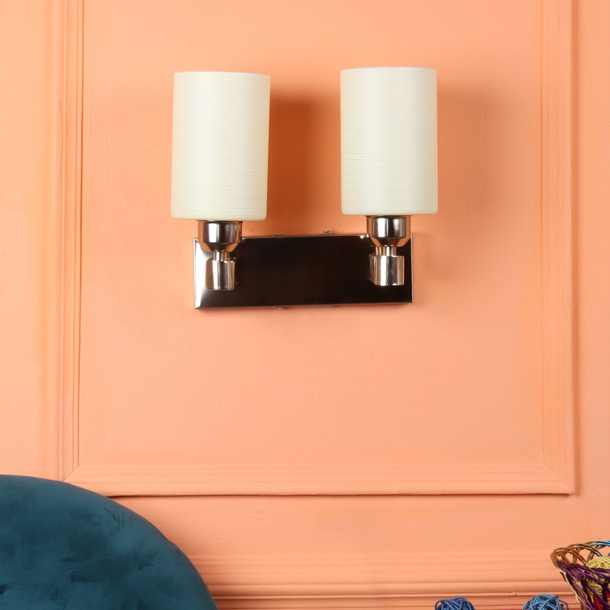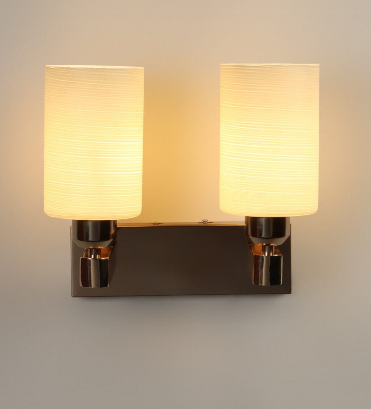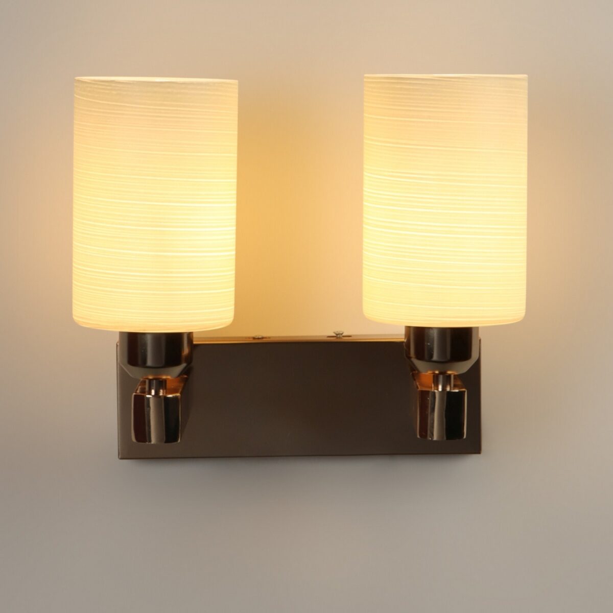 Gold modern, mild steel double wall light in white textured glass. It is maintenance free, comes with an E27 holder, only the change of lamp is required, which is available locally everywhere. Matching single wall light code – WL2721. Application includes both residential and commercial premises wherever it matches with your interiors. Can be customized as per requirement in case of bulk quantities. LAMP NOT INCLUDED.