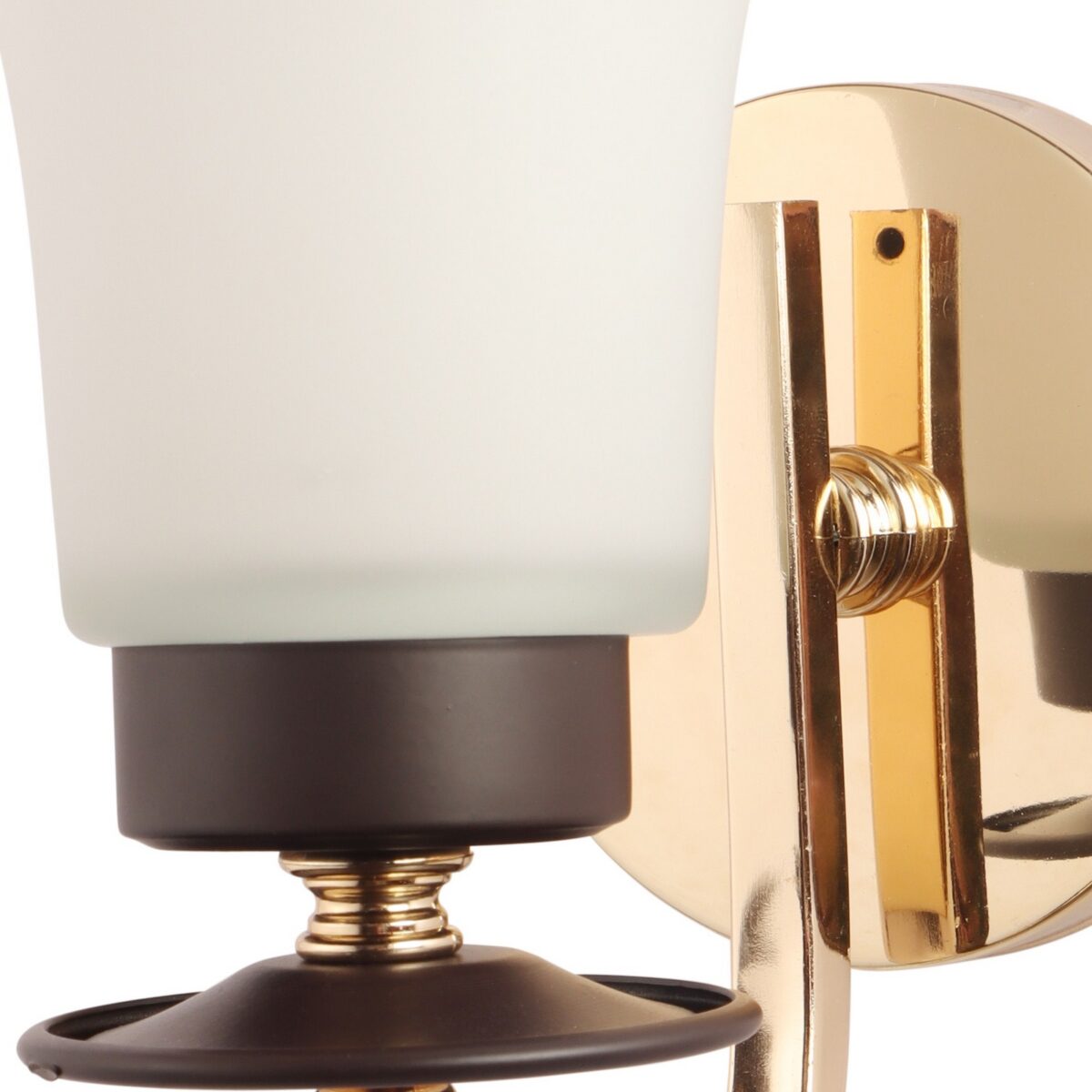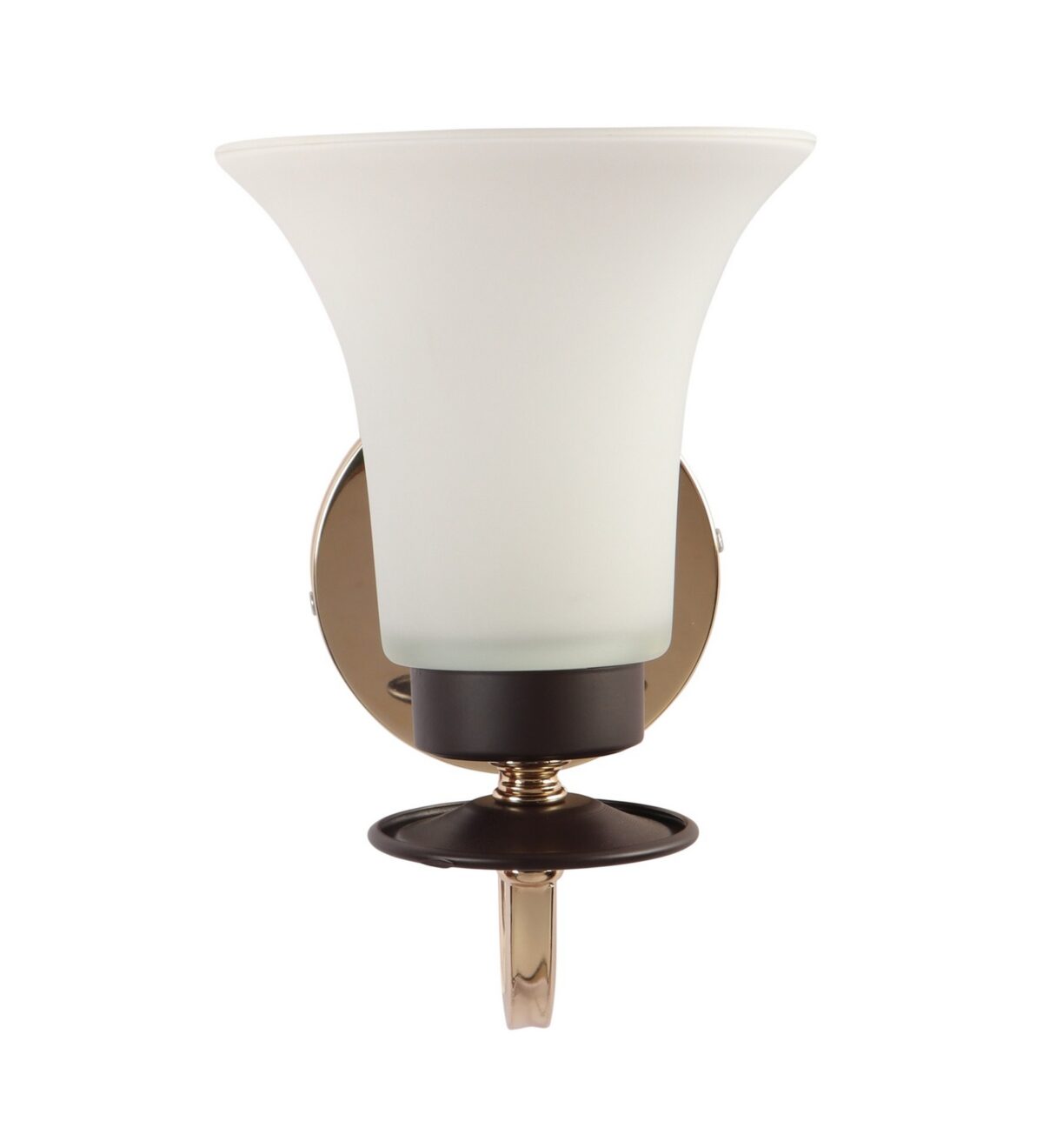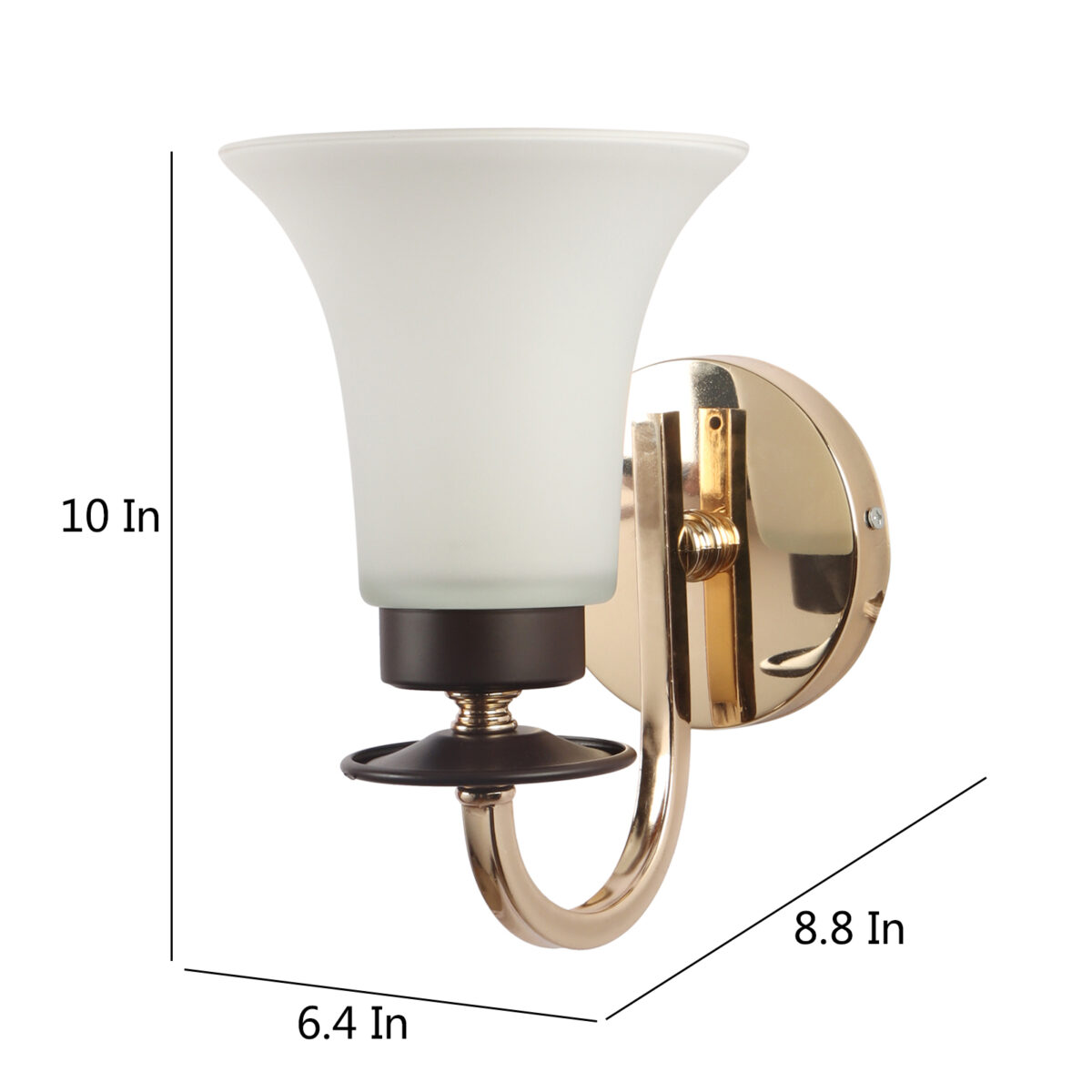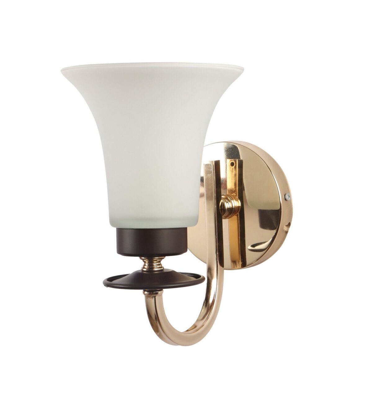 Gold, brown modern, mild steel single wall light in white bell shaped glass. It is maintenance free, comes with an E27 holder, only the change of lamp is required, which is available locally everywhere. Matching double wall light code – WL2732. Matching chandellier code – CH463. Application includes both residential and commercial premises wherever it matches with your interiors. Can be customized as per requirement in case of bulk quantities. LAMP NOT INCLUDED.
