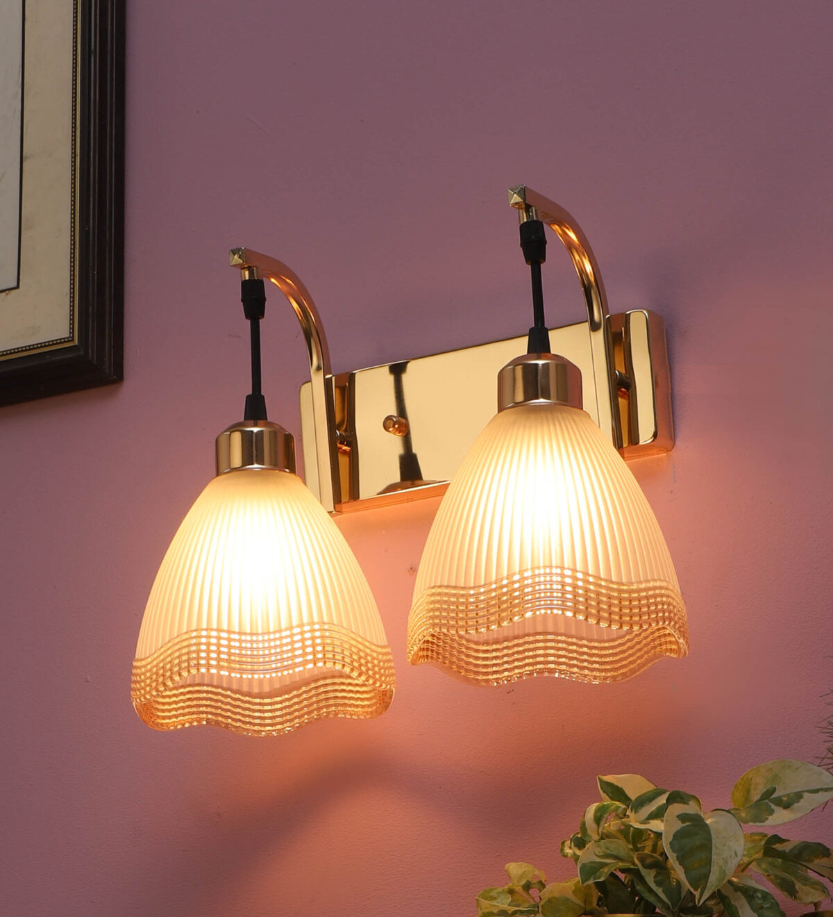 Gold finish double wall light. Can be customized as per requirement. LAMP NOT INCLUDED.