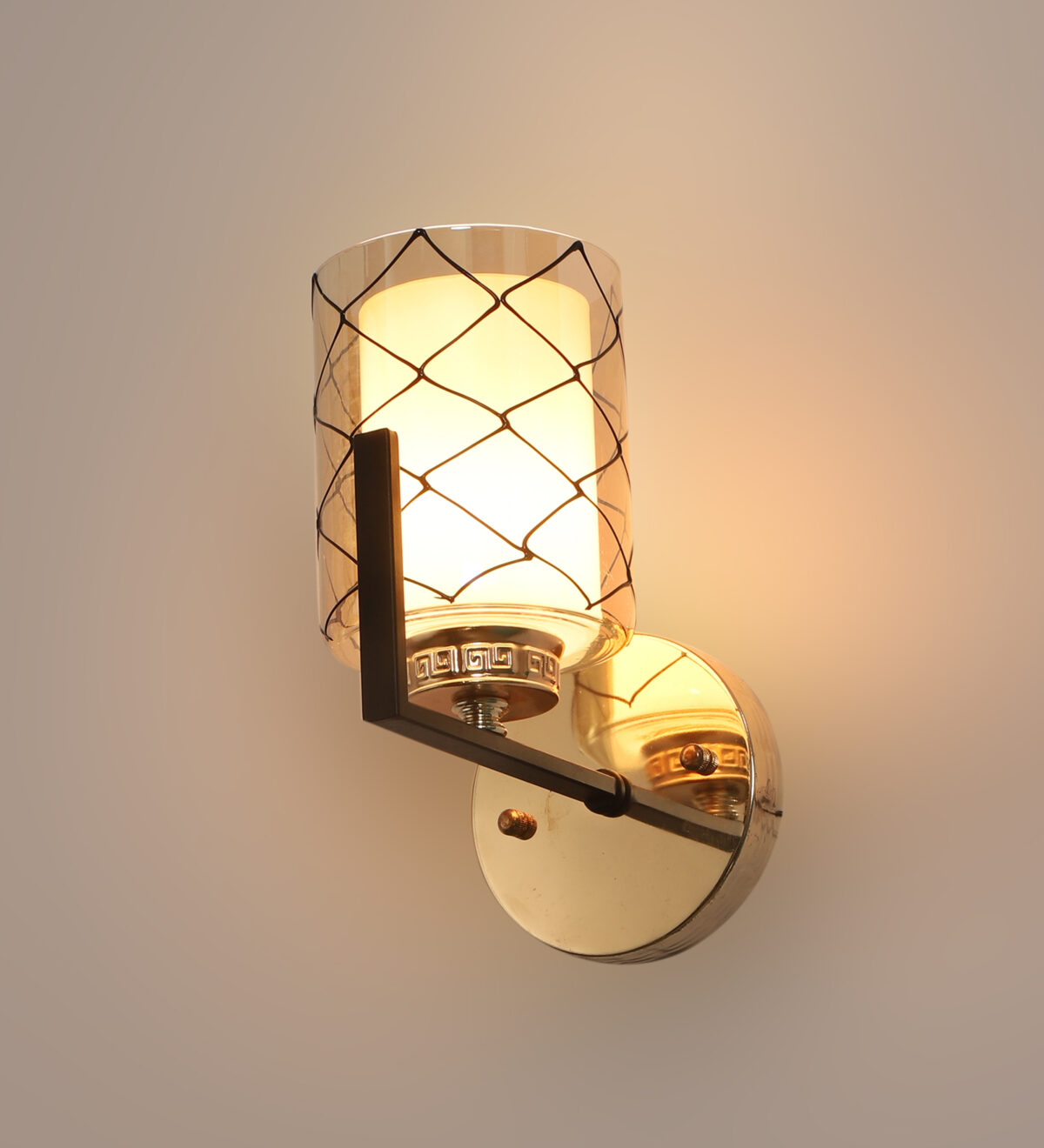 Gold and brown finish single wall light. Can be customized as per requirement. LAMP NOT INCLUDED.