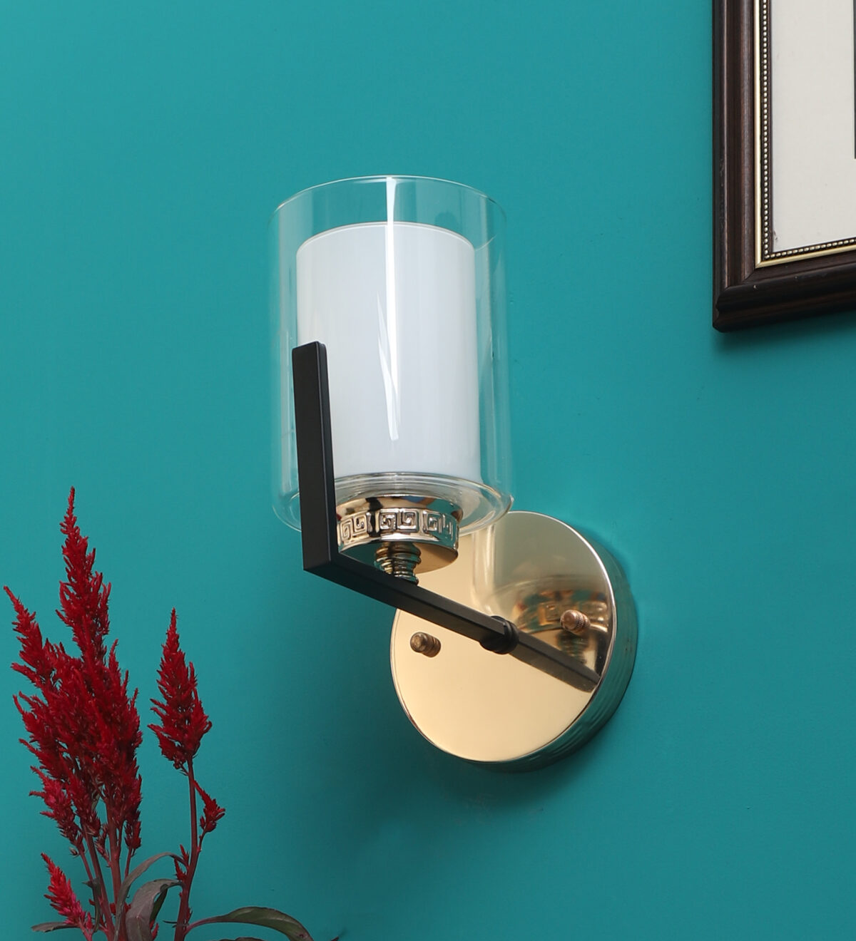 Gold and brown finish single wall light. Can be customized as per requirement. LAMP NOT INCLUDED.