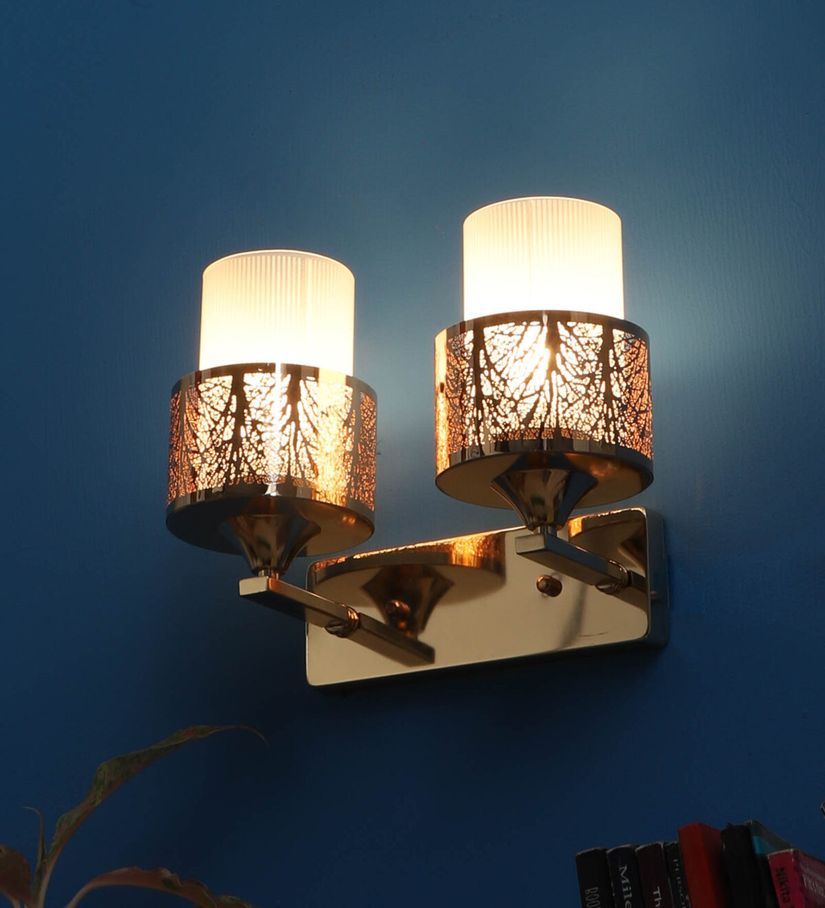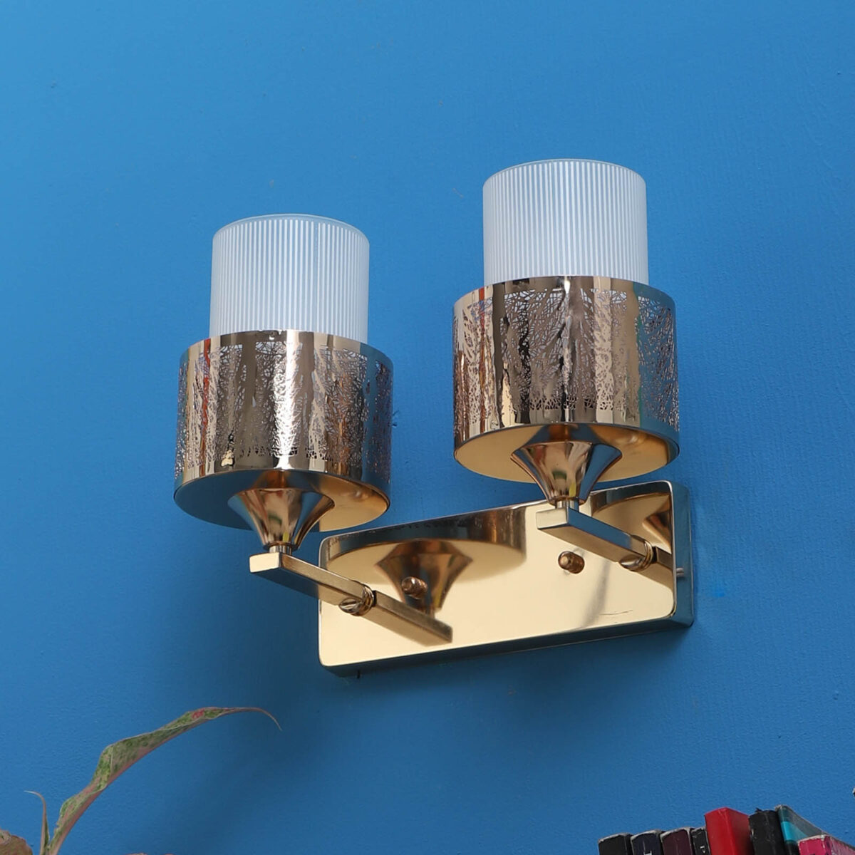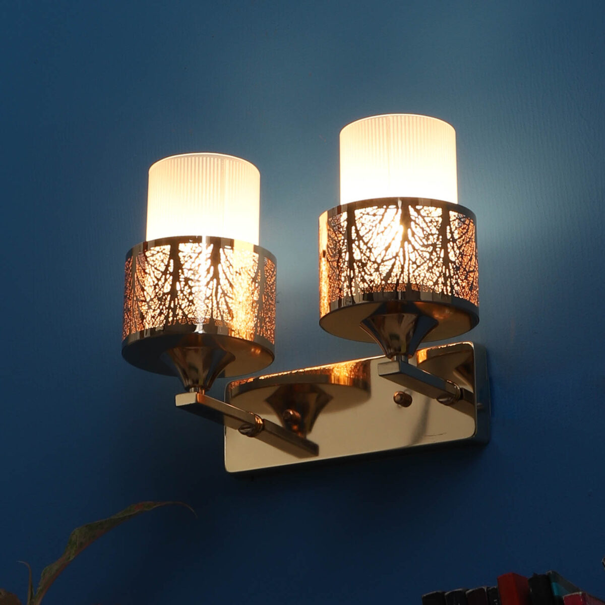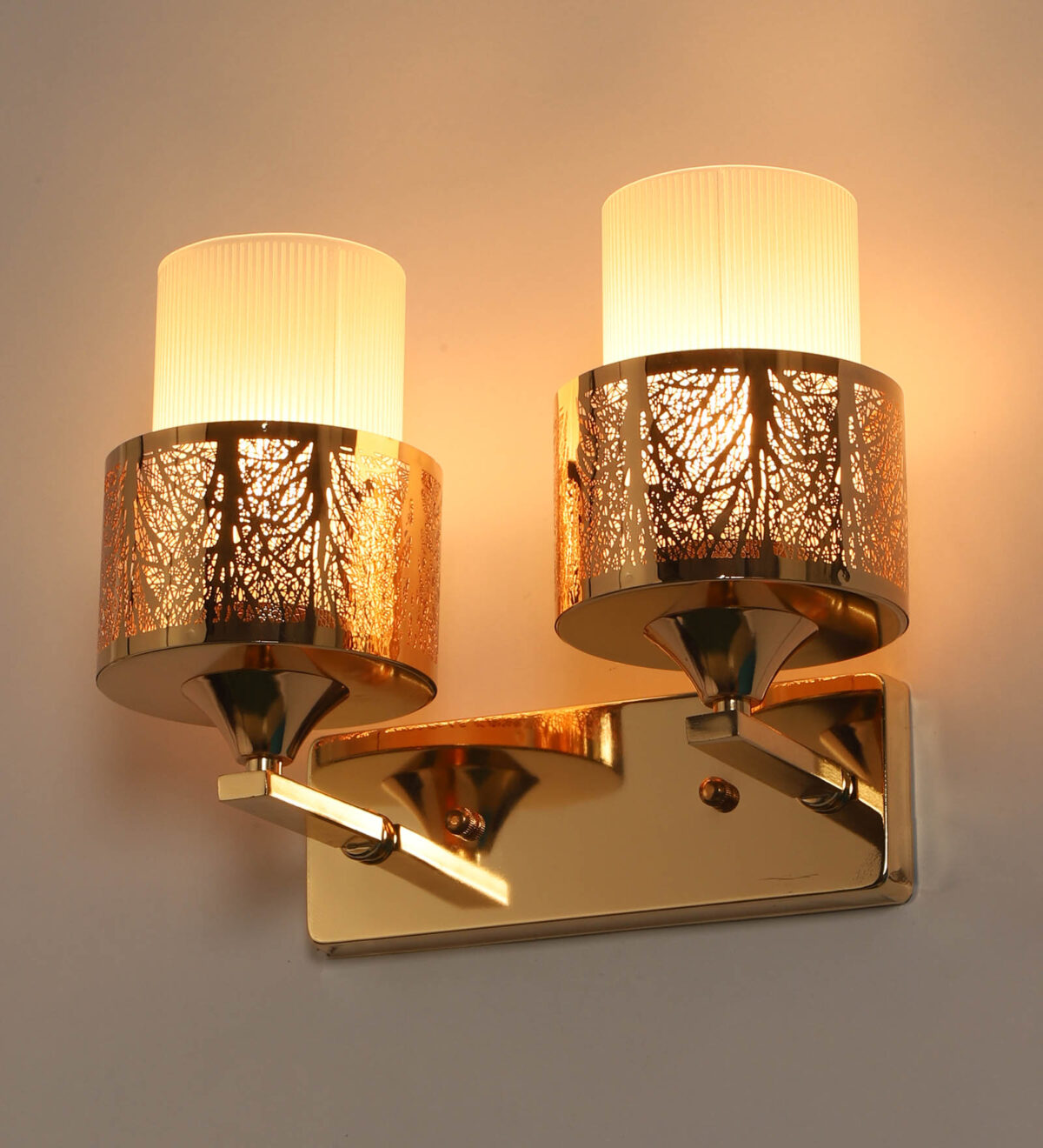 Gold finish double wall light. Can be customized as per requirement. LAMP NOT INCLUDED.