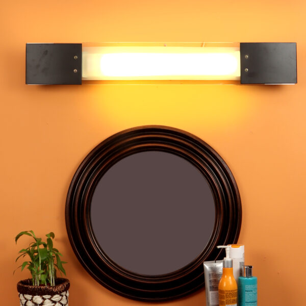 Steel mirror light in Silver (satin nickel) finish with a frosted glass. It comes with a 36 watt PLL tube for a very bright output. Great for installation above a mirror to provide illumination when shaving or applying make-up. It is maintenance free, comes with a PLL tube warm white (yellow) output. LED tube substitute also available easily in the market. It is maintenance free change of lamp is required, which is available locally everywhere. Also available in dark brown (wood finish) with code ML265COMBO. It is one of the bestselling product. Lamp included.