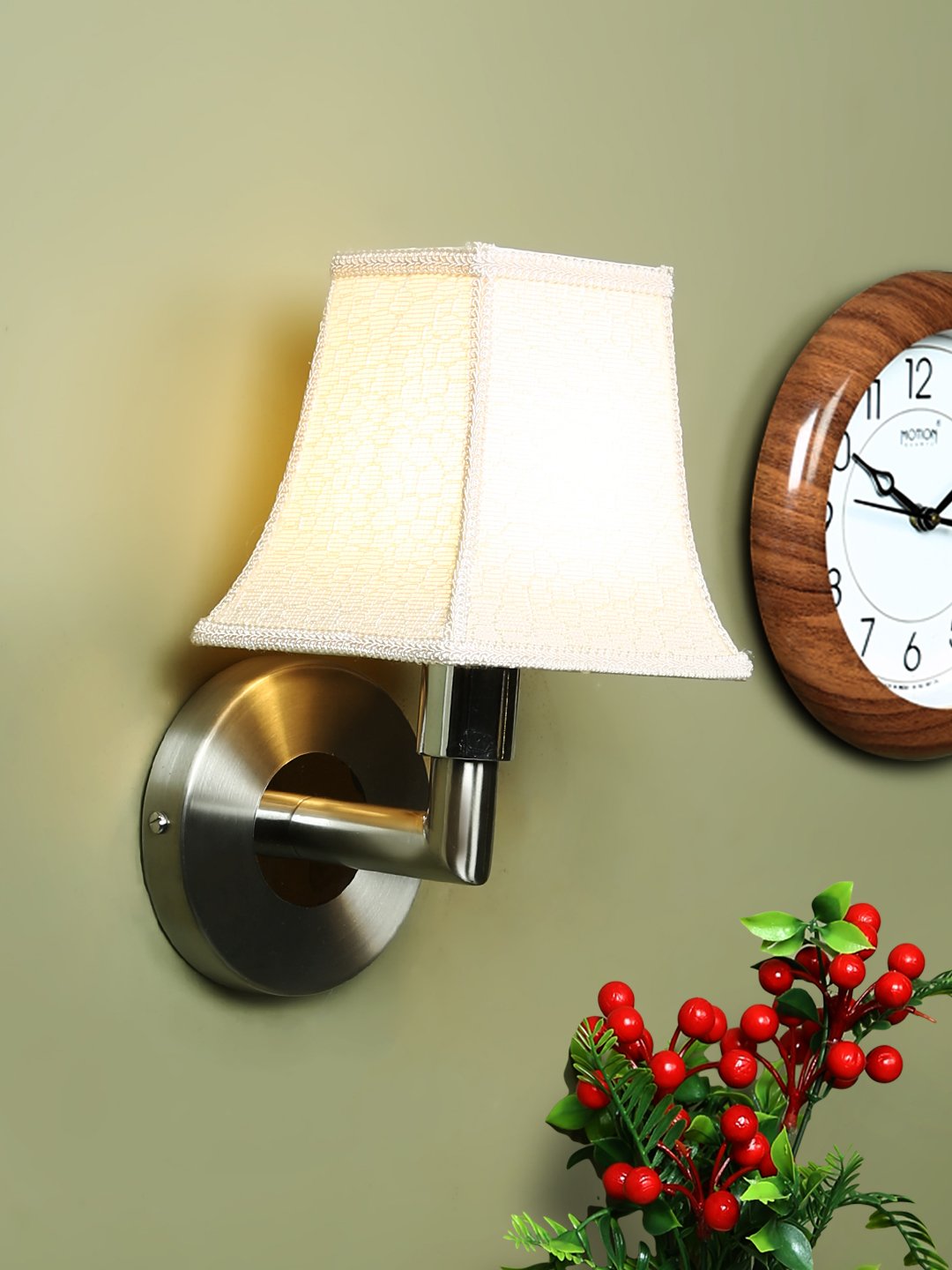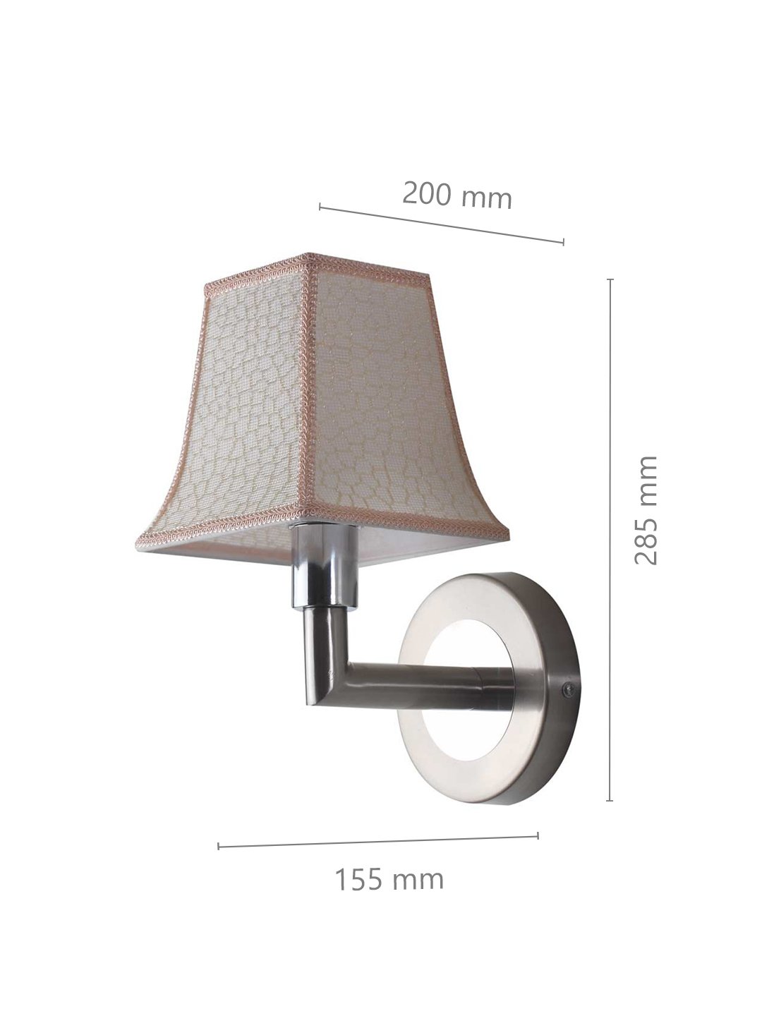 Silver (satin nickel – chrome) finish single wall light with fabric shade. It is maintenance free, comes with an E27 holder, only the change of lamp is required, which is available locally everywhere. Application includes both residential and commercial premises wherever it matches with your interiors. It is ideal for installing on both sides of the bed at a low height. Ideal for hotel or guest rooms. It is one of the best selling product in our catalogue. Lamp not included.