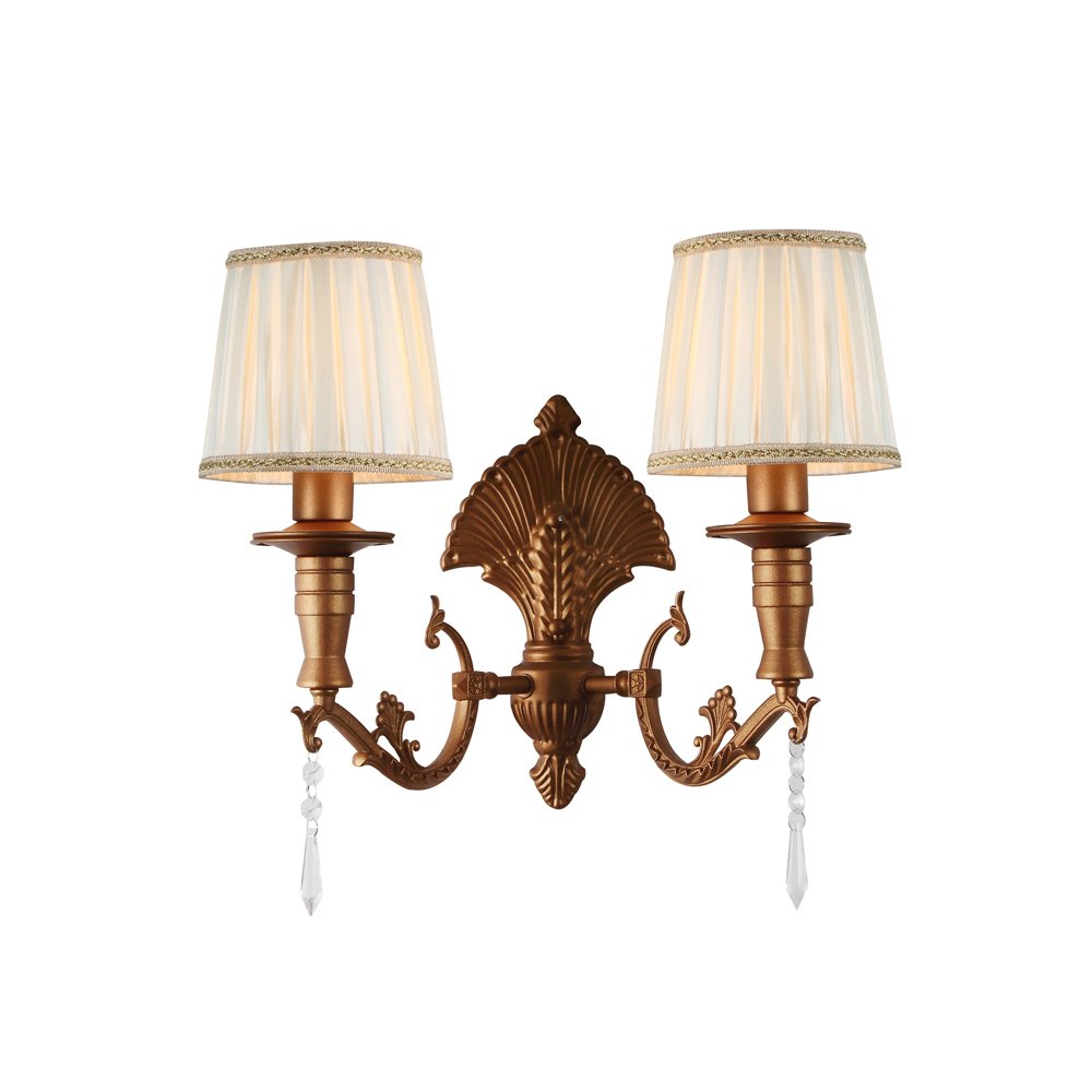 Antique brass, finish double wall light with taper fabric shade off white made of mild steel. It is maintenance free. Comes with an E27 holder, only the change of lamp is required, which is available locally everywhere. Application includes both residential and commercial premises wherever it matches with your interiors. Matching single wall light code – WL2443. Can be customized as per requirement in case of bulk quantities. Lamp not included.