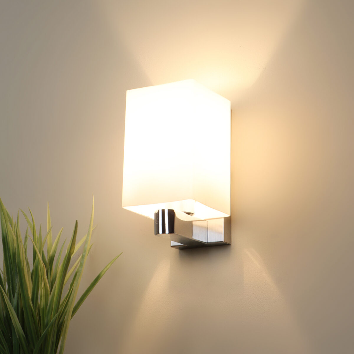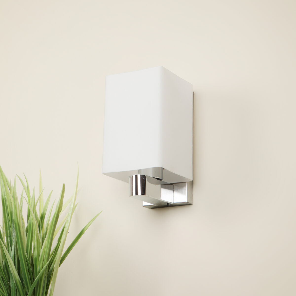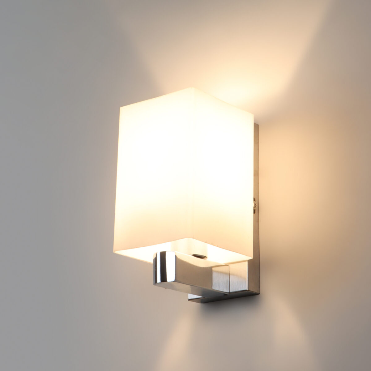 Modern silver (chrome) single wall light made of mild steel, with a big square long white glass. It is maintenance free, glass is open from both the sides that prevents any dust collection, easy to remove glass and wash it, comes with an E27 holder, only the change of lamp is required, which is available locally everywhere. You can of course swap out the bulb for one that is dimmable, has a higher light output or a different color temperature. Application includes both residential and commercial premises wherever it matches with your interiors.Can be customized as per requirement. LAMP NOT INCLUDED.