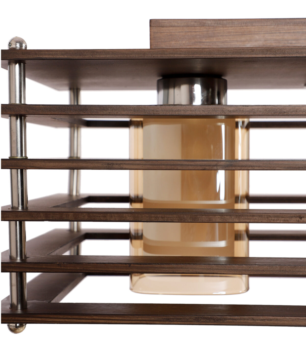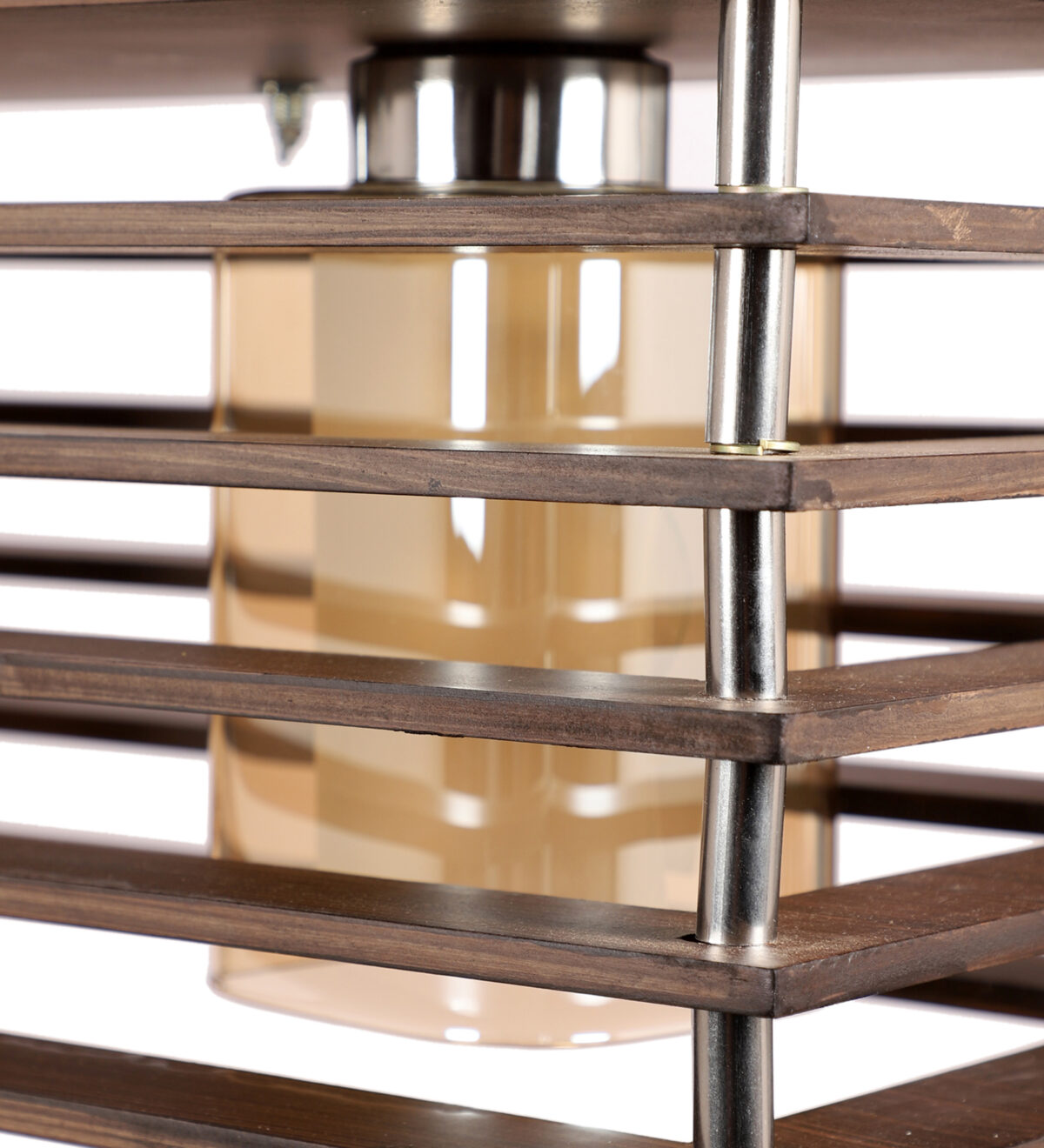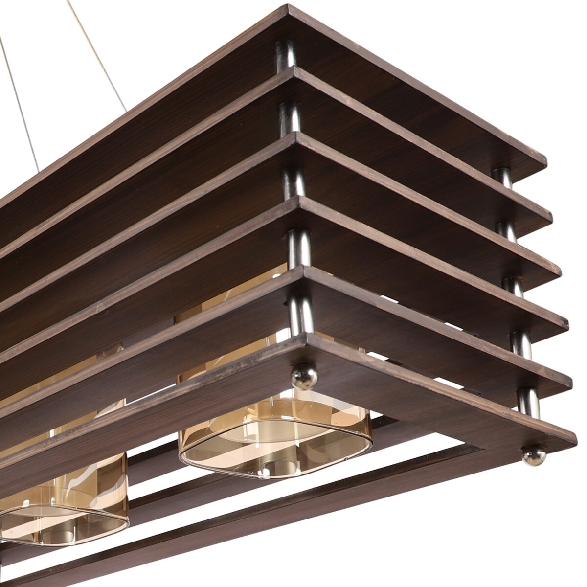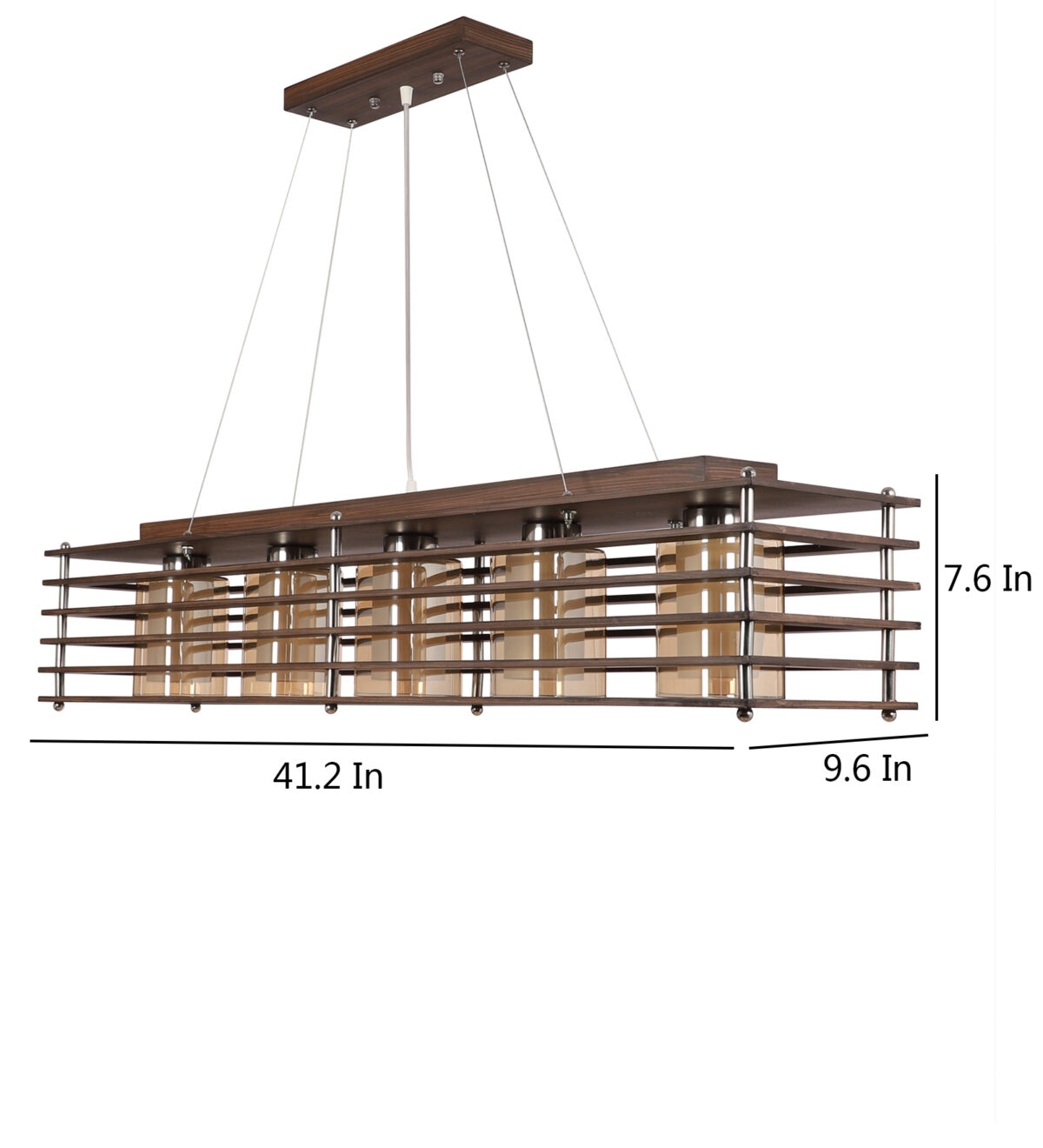 Dark brown (wood) finish, rectangular hanging light with five lamps, made of wood, mild steel having long square two layered champaign coloured glass. It is one of the highest selling design which is never out of trend. The suspension can be adjusted at time of installation to the desired height. It is maintenance free, easy to remove glass and wash them, comes with an E27 holder, only the change of lamp is required, which is available locally everywhere. Application includes both residential and commercial premises wherever it matches with your interiors. Can be customized as per requirement in case of bulk quantities. Matching wall light code – WL2357, WL2358. LAMPS NOT INCLUDED.
