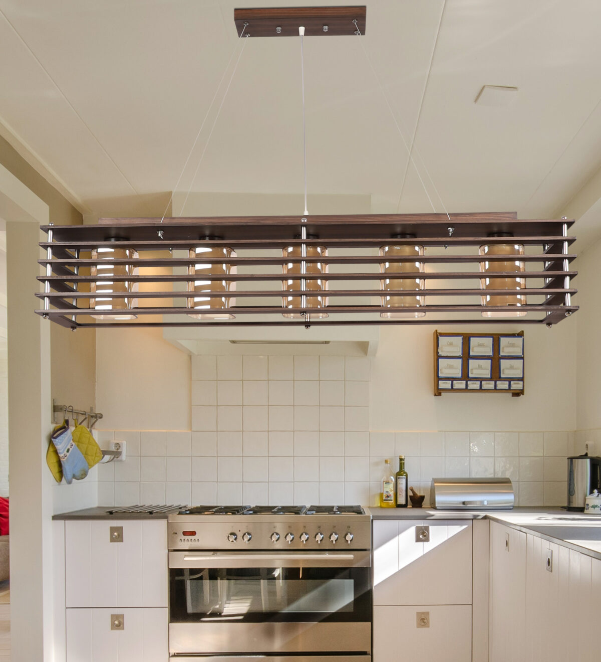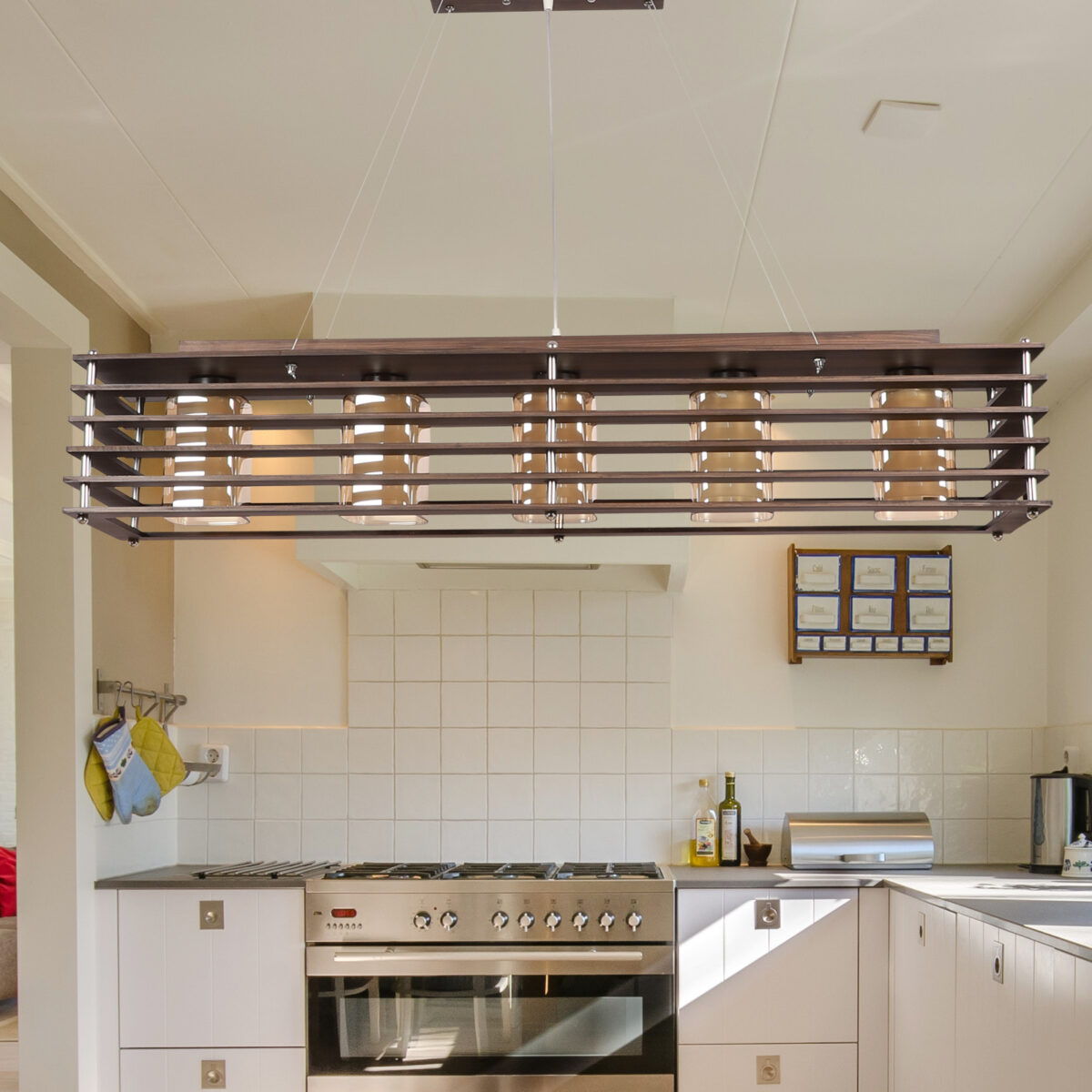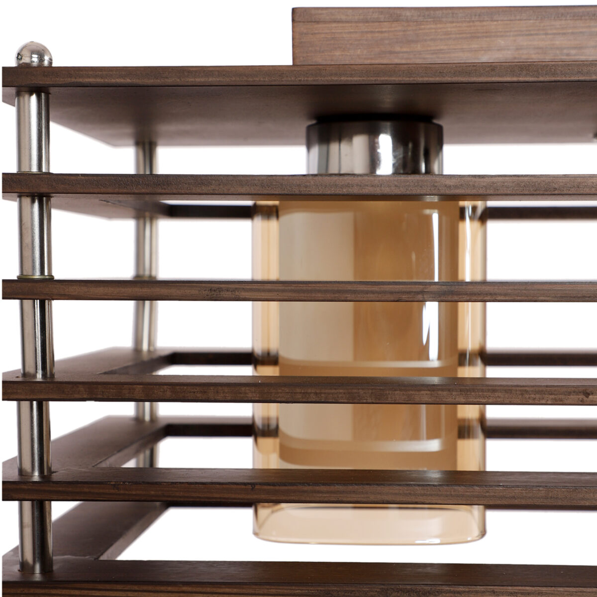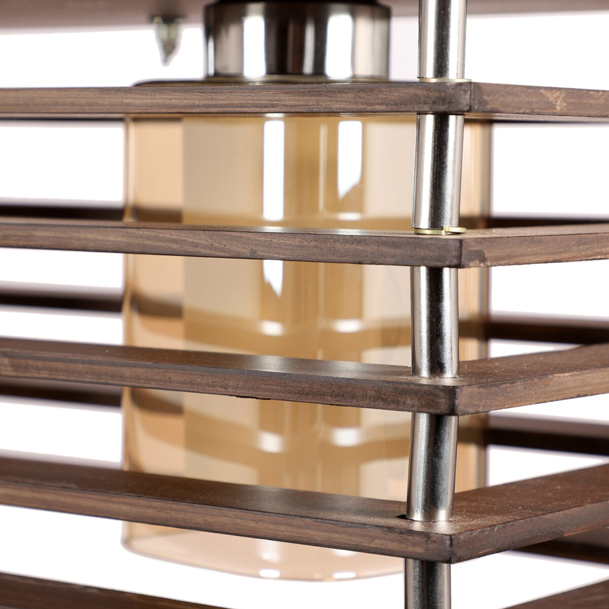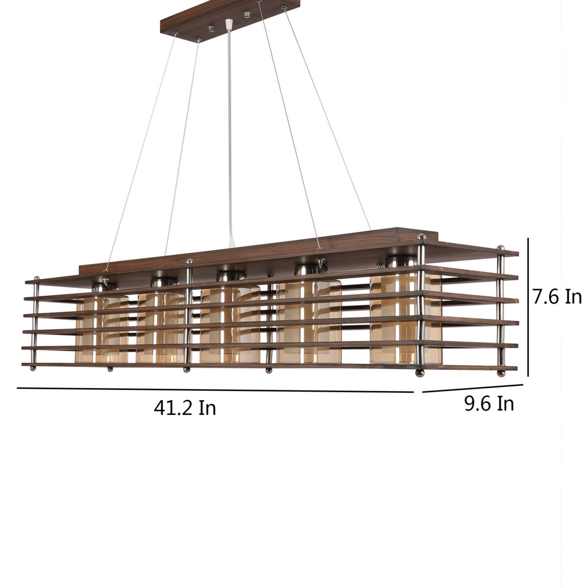 Dark brown (wood) finish, rectangular hanging light with five lamps, made of wood, mild steel having long square two layered champaign coloured glass. It is one of the highest selling design which is never out of trend. The suspension can be adjusted at time of installation to the desired height. It is maintenance free, easy to remove glass and wash them, comes with an E27 holder, only the change of lamp is required, which is available locally everywhere. Application includes both residential and commercial premises wherever it matches with your interiors. Can be customized as per requirement in case of bulk quantities. Matching wall light code – WL2357, WL2358. LAMPS NOT INCLUDED.