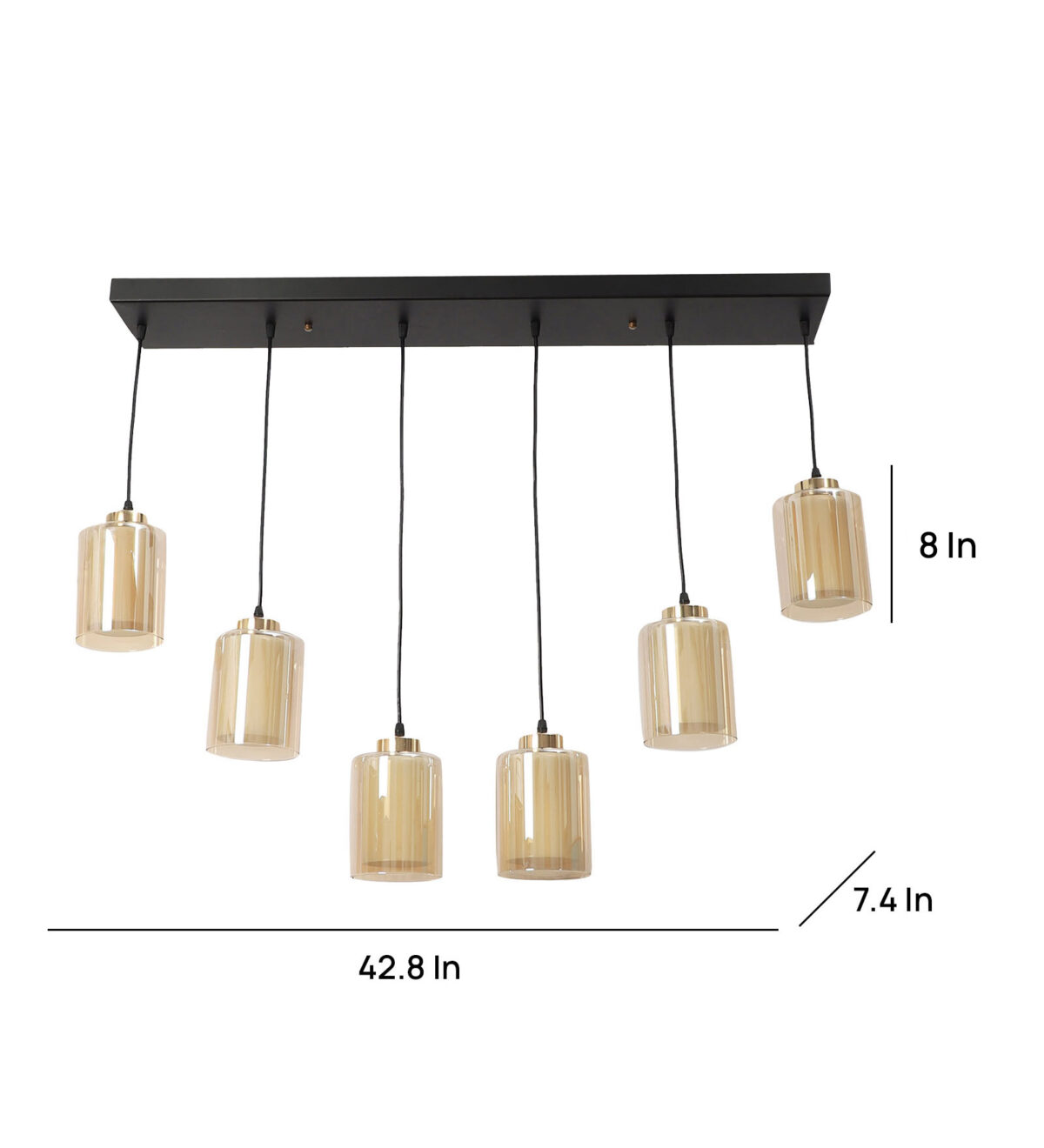 Rectangular hanging light having six lamps. Can be customised as per requirement in terms height, number of lamps, finish. LAMPS NOT INCLUDED.