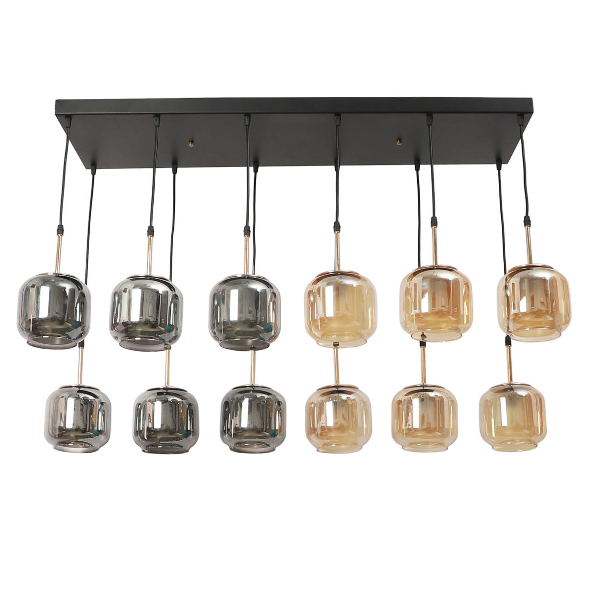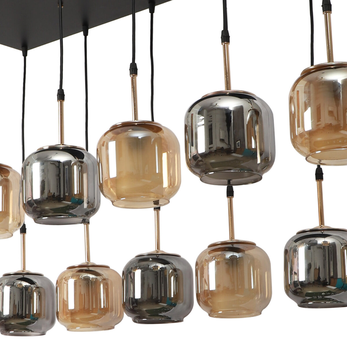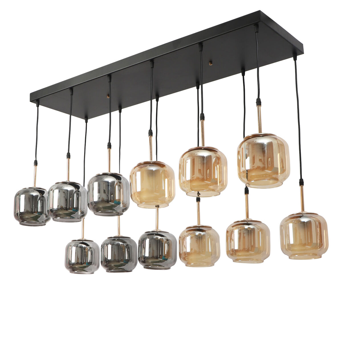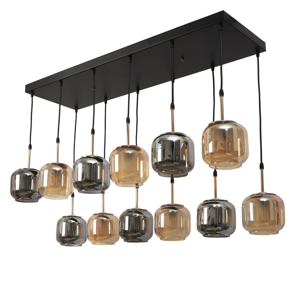 Rectangular hanging light having twelve lamps. Can be customised as per requirement in terms height, number of lamps, finish, shade colour. LAMPS NOT INCLUDED.