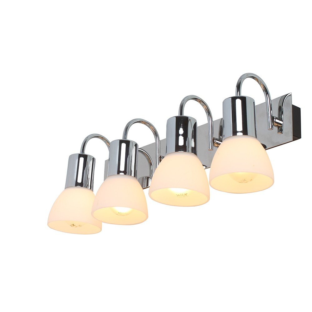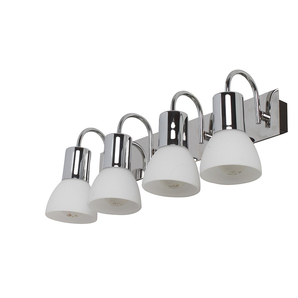 Ultra modern mild steel silver (chrome) finish, four light spot light. Great for installation above a dressing mirror, dressing table, to provide illumination while applying make-up. It can also be used as a wall light, spot light, picture light. It is maintenance free, comes with an E14 holder, only the change of lamp is required, which is available locally everywhere You can of course swap out the bulb for one that is dimmable, has a higher light output or a different color temperature. Matching one light code ML308-1, Matching two light code – ML308-2. Matching three light code – ML308-3, Matching five light code – ML308-5. LAMP NOT INCLUDED.