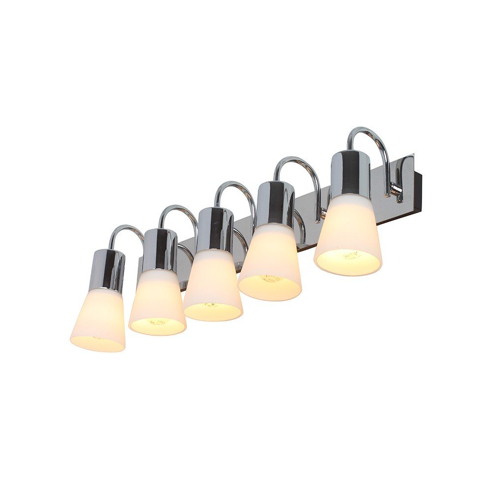 Ultra modern mild steel silver (chrome) finish, five light spot light. Great for installation above a dressing mirror, dressing table, to provide illumination while applying make-up. It can also be used as a wall light, spot light, picture light. It is maintenance free, comes with an E14 holder, only the change of lamp is required, which is available locally everywhere You can of course swap out the bulb for one that is dimmable, has a higher light output or a different color temperature. Matching one light code ML312-1, Matching two light code – ML312-2. Matching three light code – ML312-3, Matching four light code – ML312-4. LAMP NOT INCLUDED.