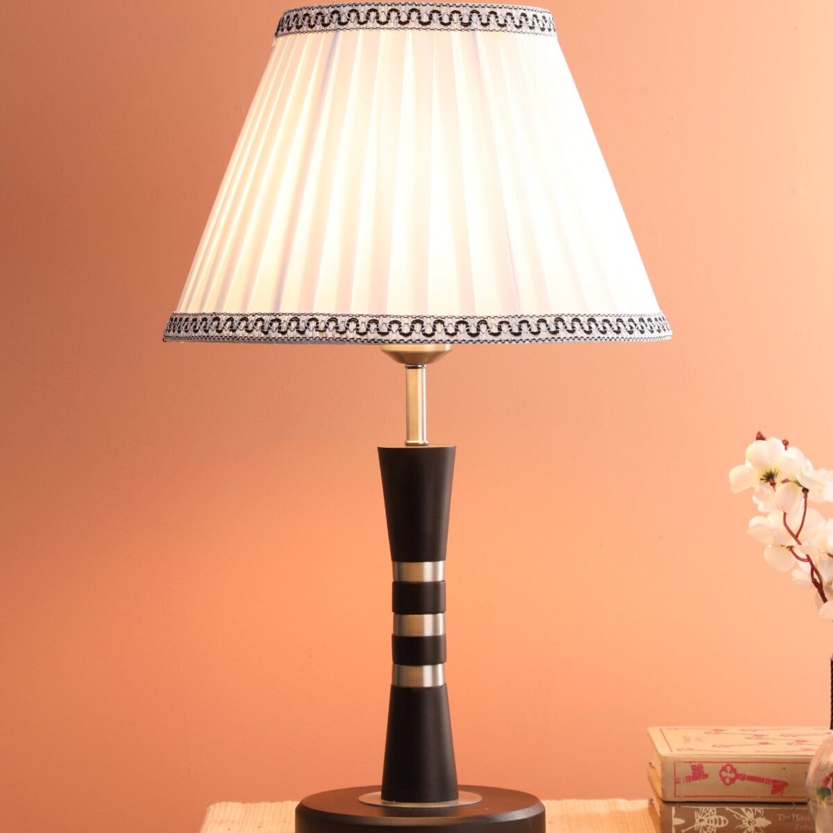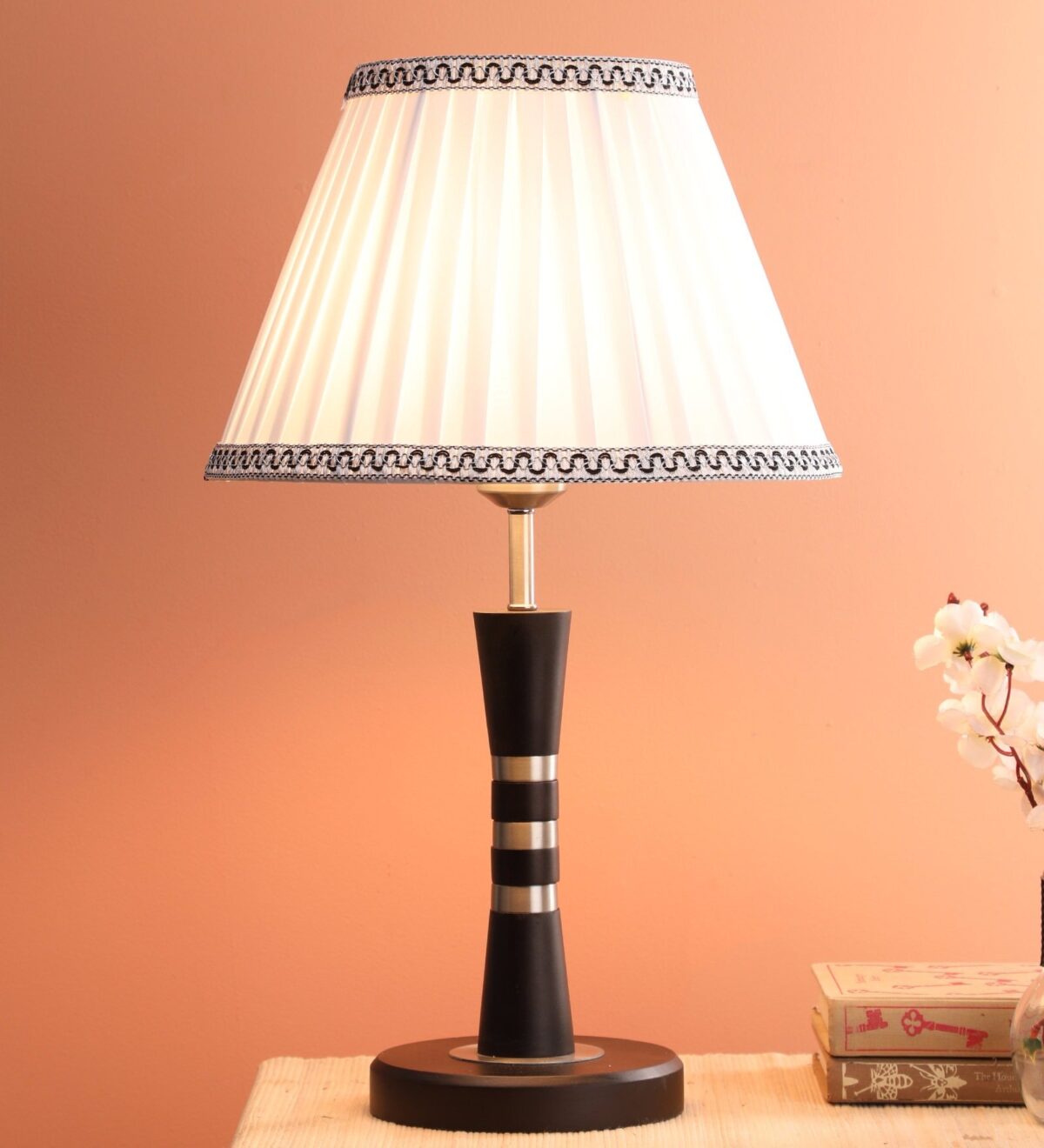 Wooden table lamp with fabric shade. An important item of lighting that you cannot imagine a hotel or bed and breakfast being without. Table lamps are a must for both premises as they provide ambient lighting for reading and allow the user to have just a side light on whilst in bed. Table lamps are also great for desk use and vanity areas providing lighting for make-up application. Table lamps give an ambient subtle light that making a room feel warm and cozy which is paramount to making a room feel inviting for guests. Used at various places in modern homes.