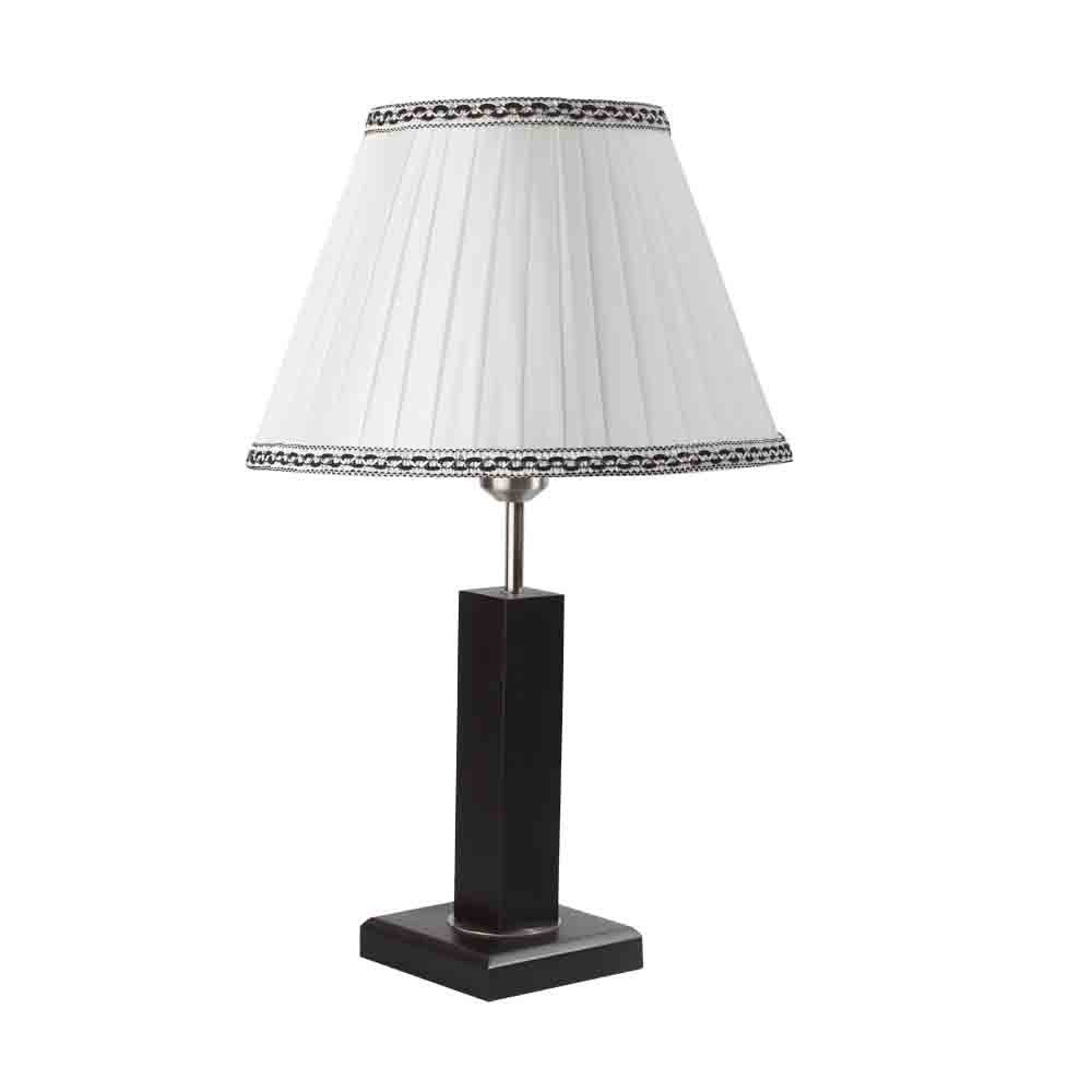 Wooden table lamp with fabric shade. An important item of lighting that you cannot imagine a hotel or bed and breakfast being without. Table lamps are a must for both premises as they provide ambient lighting for reading and allow the user to have just a side light on whilst in bed. Table lamps are also great for desk use and vanity areas providing lighting for make-up application. Table lamps give an ambient subtle light that making a room feel warm and cozy which is paramount to making a room feel inviting for guests. Used at various places in modern homes.