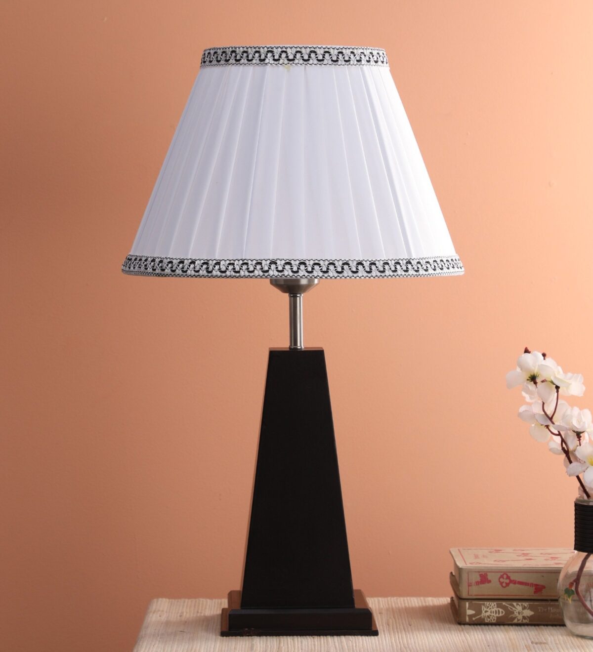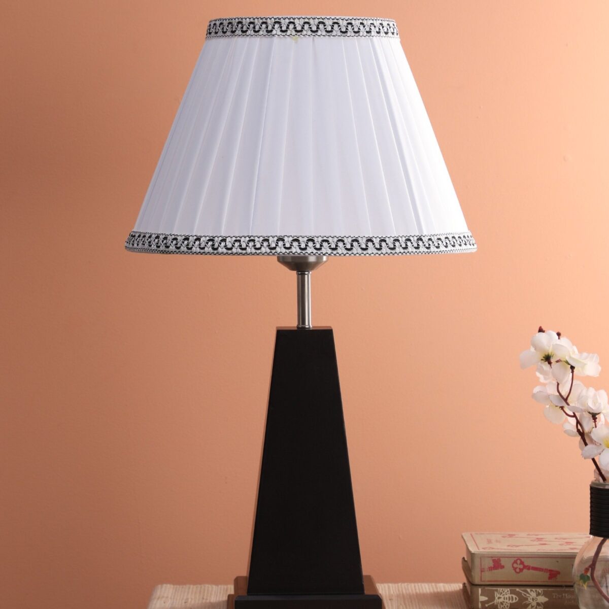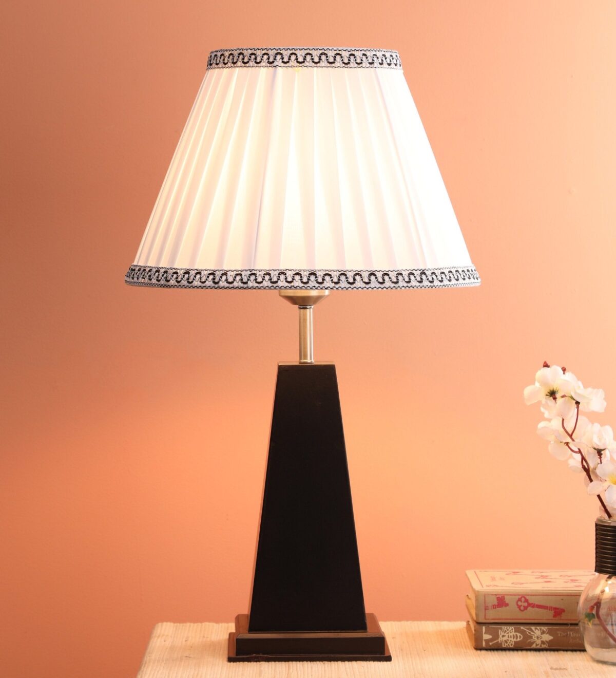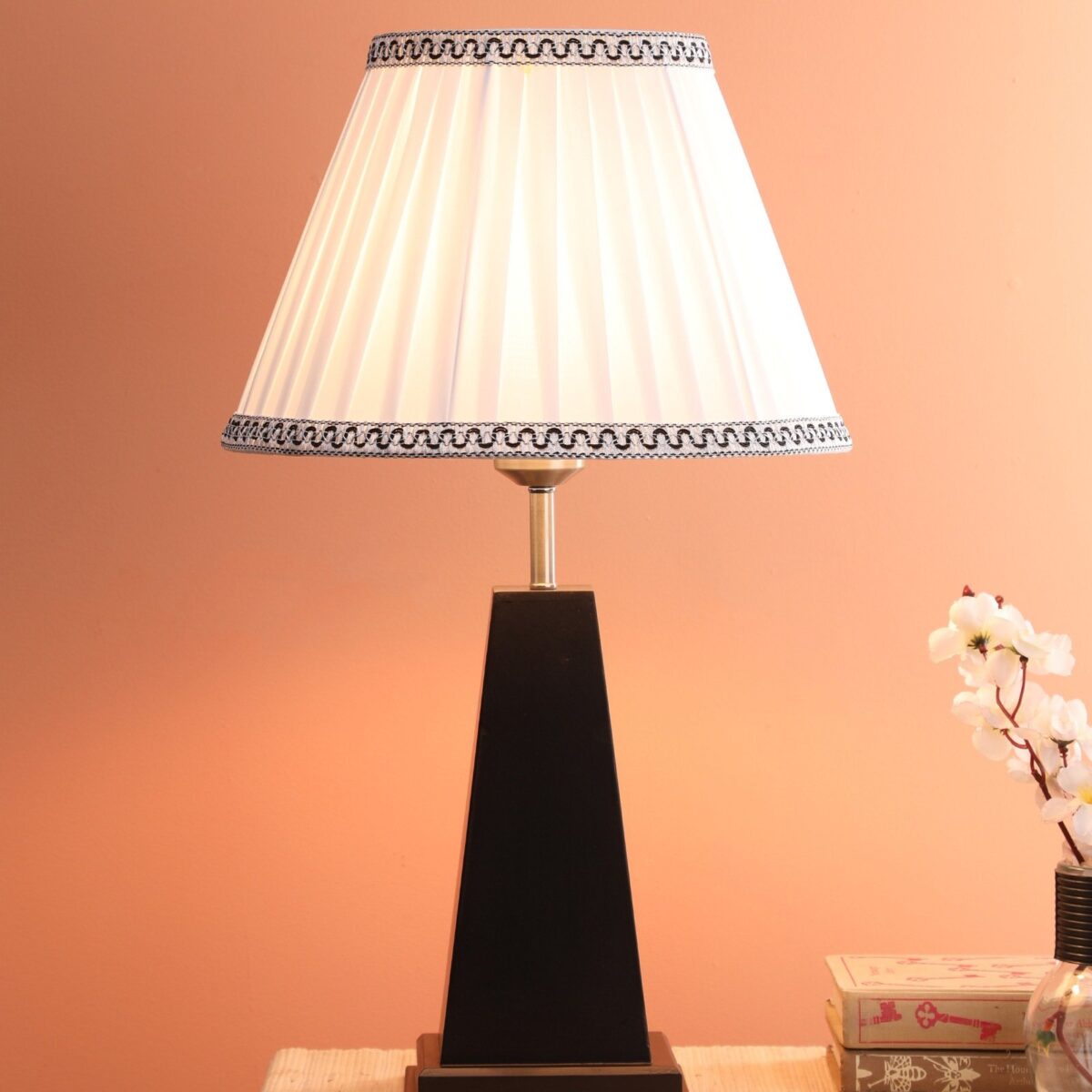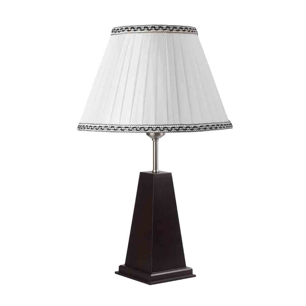 Wooden table lamp with fabric shade. An important item of lighting that you cannot imagine a hotel or bed and breakfast being without. Table lamps are a must for both premises as they provide ambient lighting for reading and allow the user to have just a side light on whilst in bed. Table lamps are also great for desk use and vanity areas providing lighting for make-up application. Table lamps give an ambient subtle light that making a room feel warm and cozy which is paramount to making a room feel inviting for guests. Used at various places in modern homes.