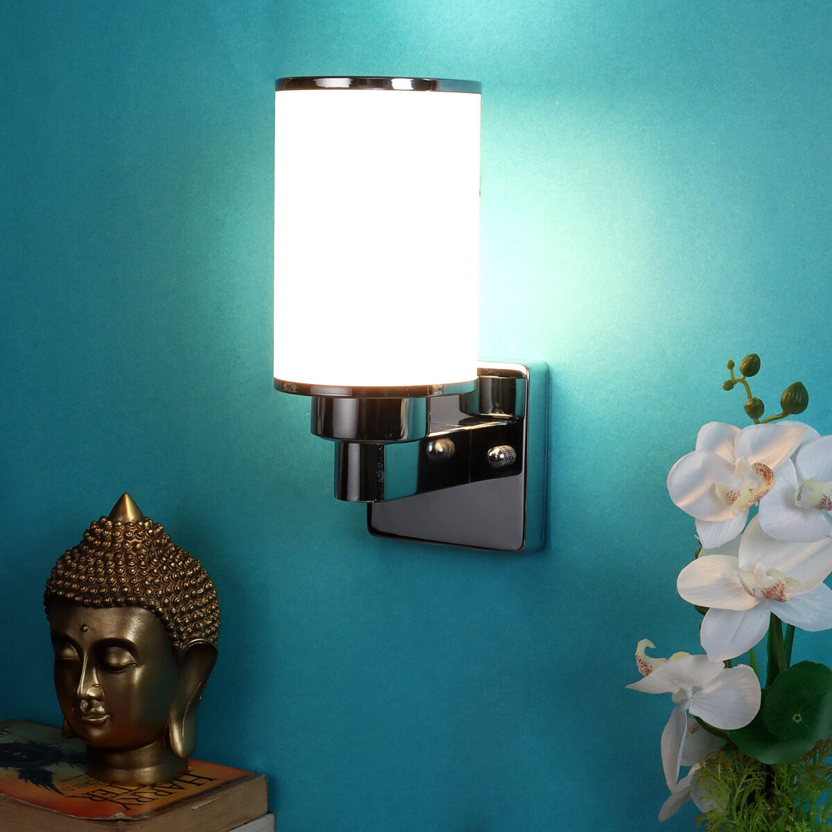 Modern silver (chrome) single wall light made of mild steel, with a big round cylindrical white glass having chrome ring at both its edges. It is maintenance free, easy to remove glass and wash it, comes with an E27 holder, only the change of lamp is required, which is available locally everywhere. You can of course swap out the bulb for one that is dimmable, has a higher light output or a different colour temperature. Application includes both residential and commercial premises wherever it matches with your interiors. Double wall light code – WL2356. Can be customized as per requirement in case of bulk quantities. Lamp not included.