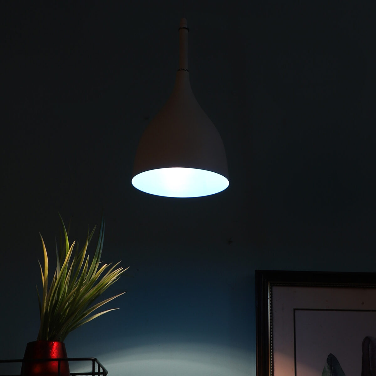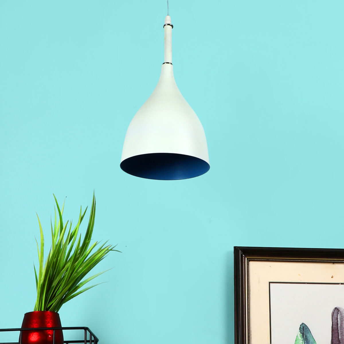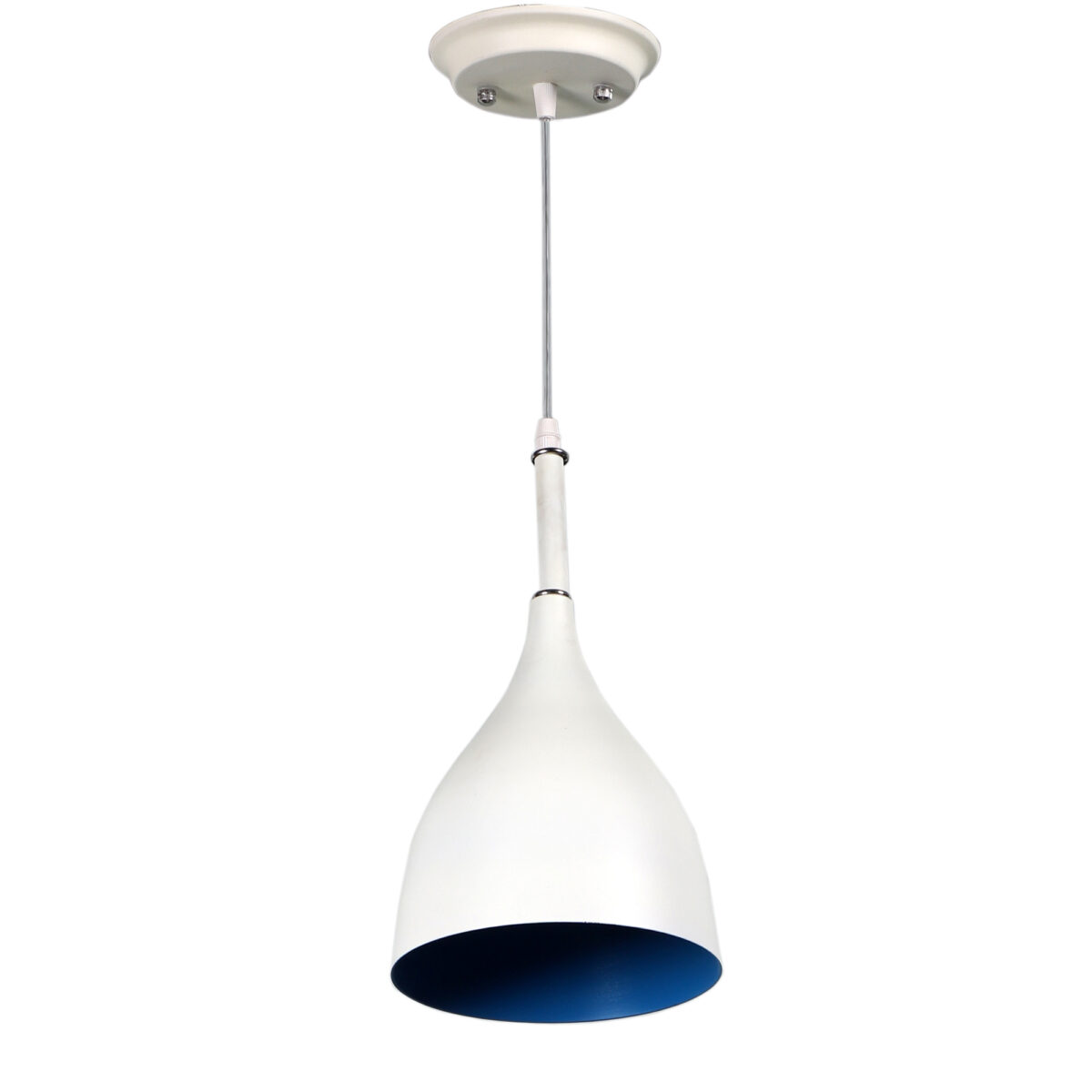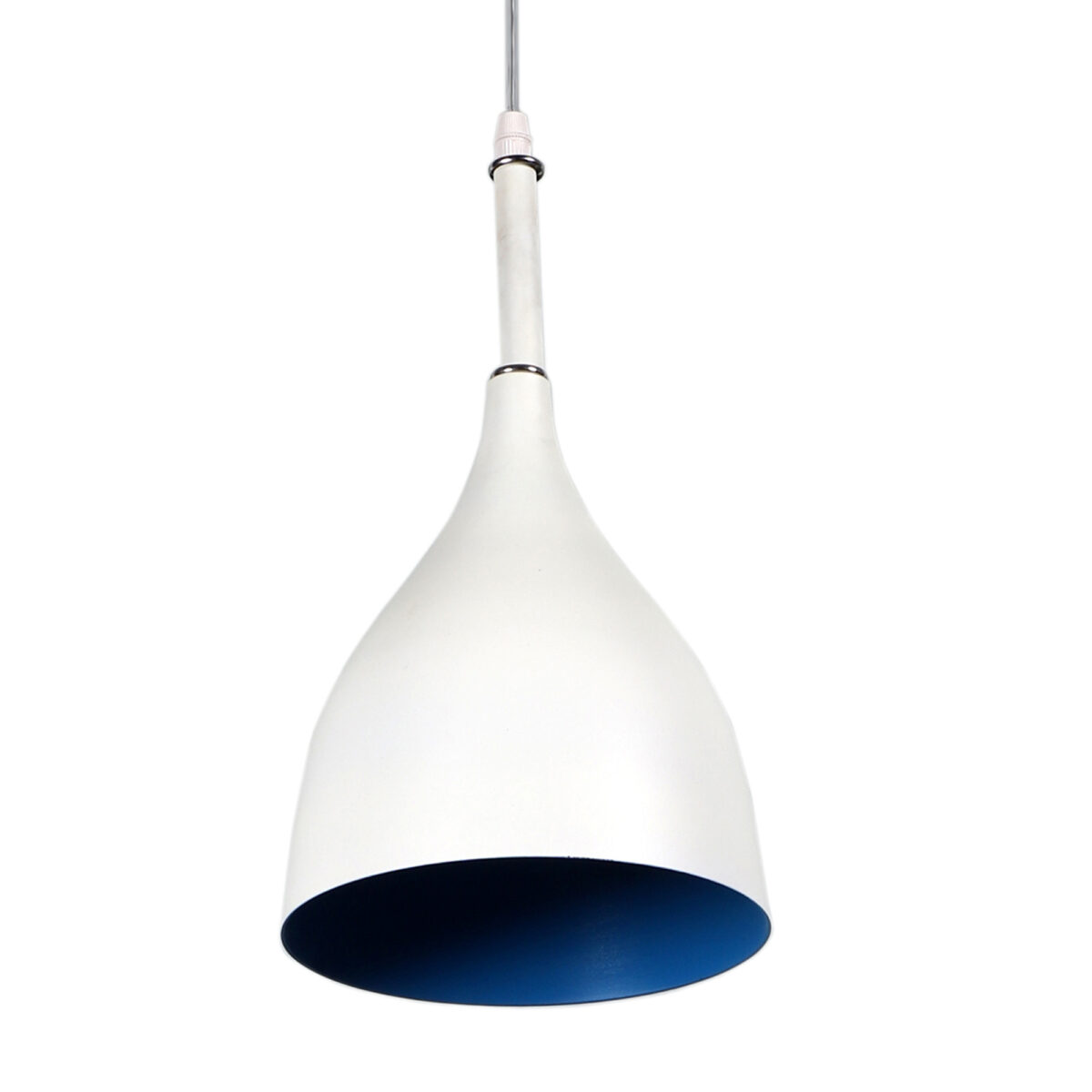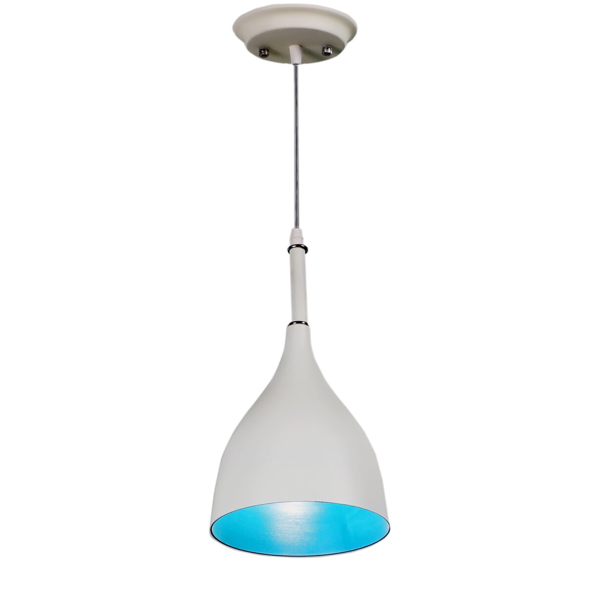 Powder coated white – blue finish, modern aluminum single hanging light. The suspension can be adjusted at time of installation to the desired height. It is maintenance free, comes with an E27 holder, only the change of lamp is required, which is available locally everywhere. Codes of other color variations in the same design – HL3770, HL3771, HL3773, HL3774, HL3775, HL3898, HL3900, HL3901. Application includes both residential and commercial premises wherever it matches with your interiors. Can be customized as per requirement in case of bulk quantities. Lamp not included.