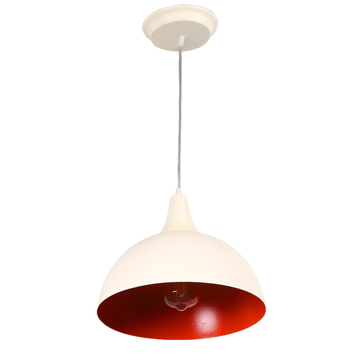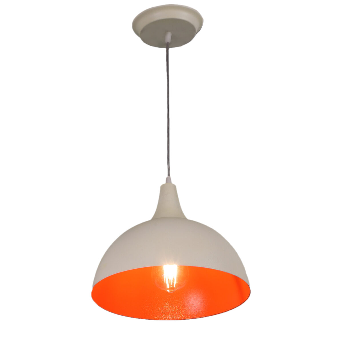 Powder coated white – orange finish, modern aluminium single hanging light. The suspension can be adjusted at time of installation to the desired height. It is maintenance free, comes with an E27 holder, only the change of lamp is required, which is available locally everywhere. Looks amazing with LED filament lamp. Codes of other color variations in the same design – HL3724, HL3726, HL3727, HL3902, HL3903. Application includes both residential and commercial premises wherever it matches with your interiors. Can be customized as per requirement in case of bulk quantities. Lamp not included.