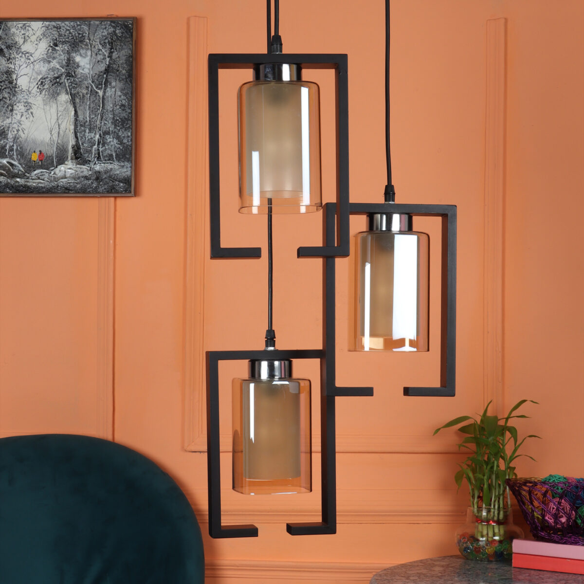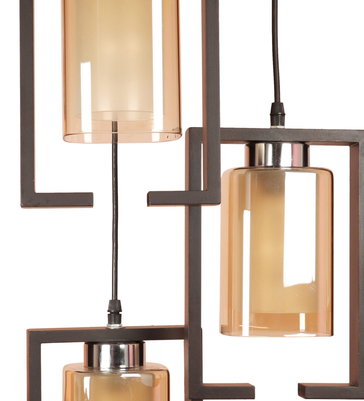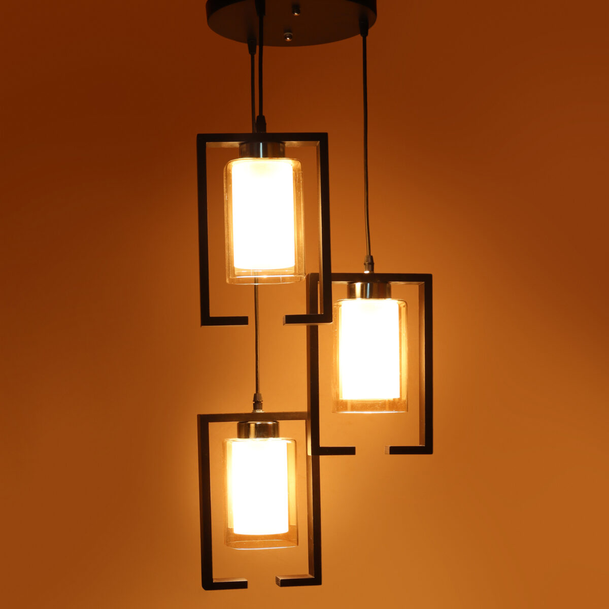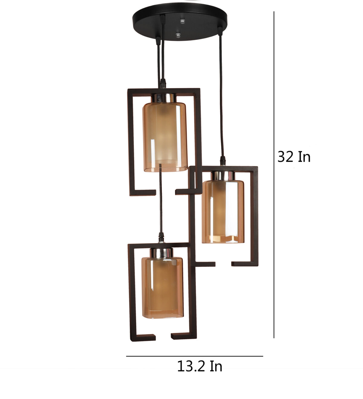 Dark brown (wood) finish, rectangular, clear campaign glass tripple hanging light, made of wood, mild steel and glass. The suspension can be adjusted at time of installation to the desired height. It is maintenance free, easy to remove glass and wash it, comes with an E27 holder, only the change of lamp is required, which is available locally everywhere. Application includes both residential and commercial premises wherever it matches with your interiors. Matching single hanging code – HL6081-1. Matching wall light code – WL2738. Looks highly impressive with LED filament lamp. Can be customized as per requirement in case of bulk quantities. LAMP NOT INCLUDED.