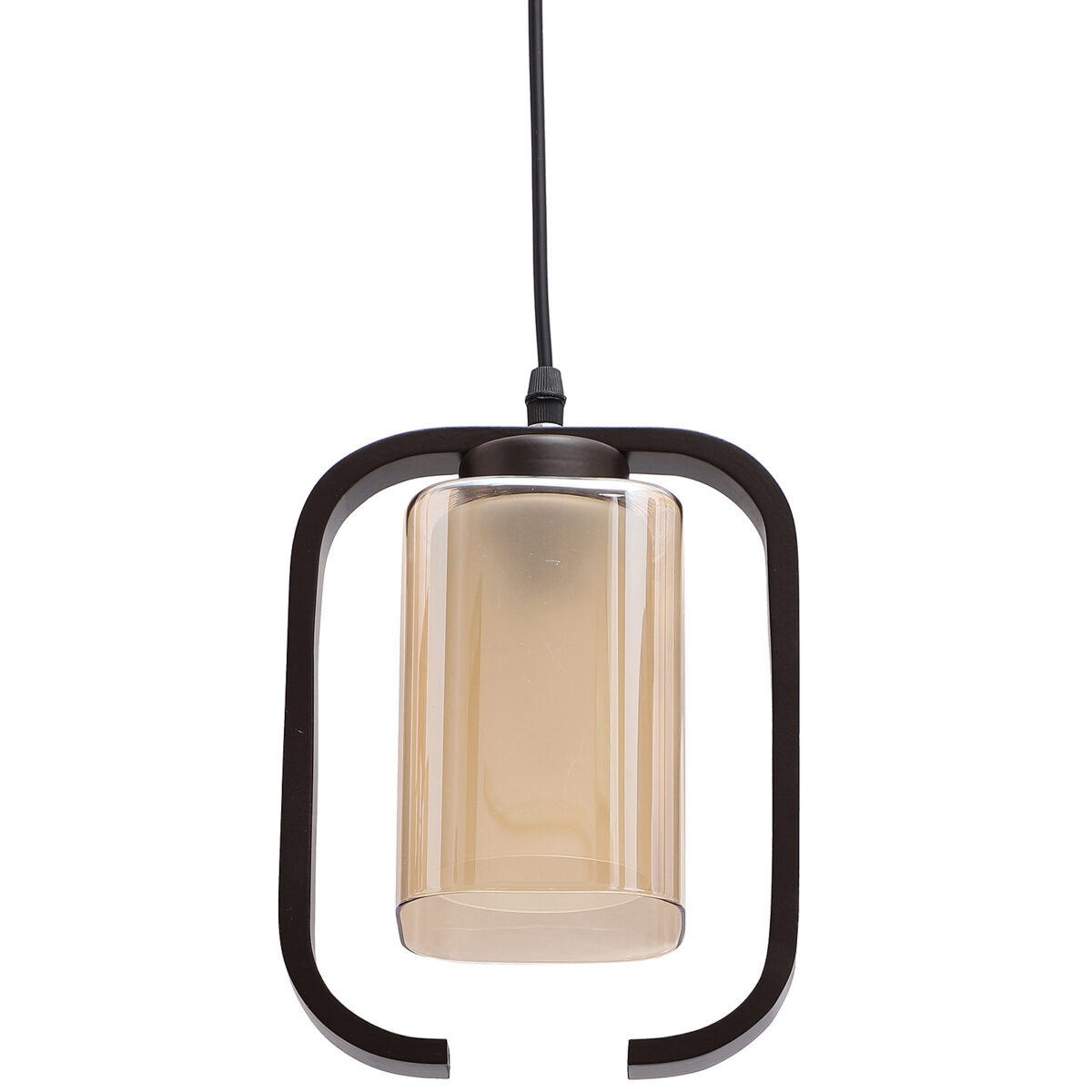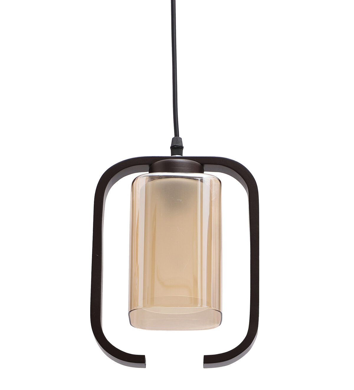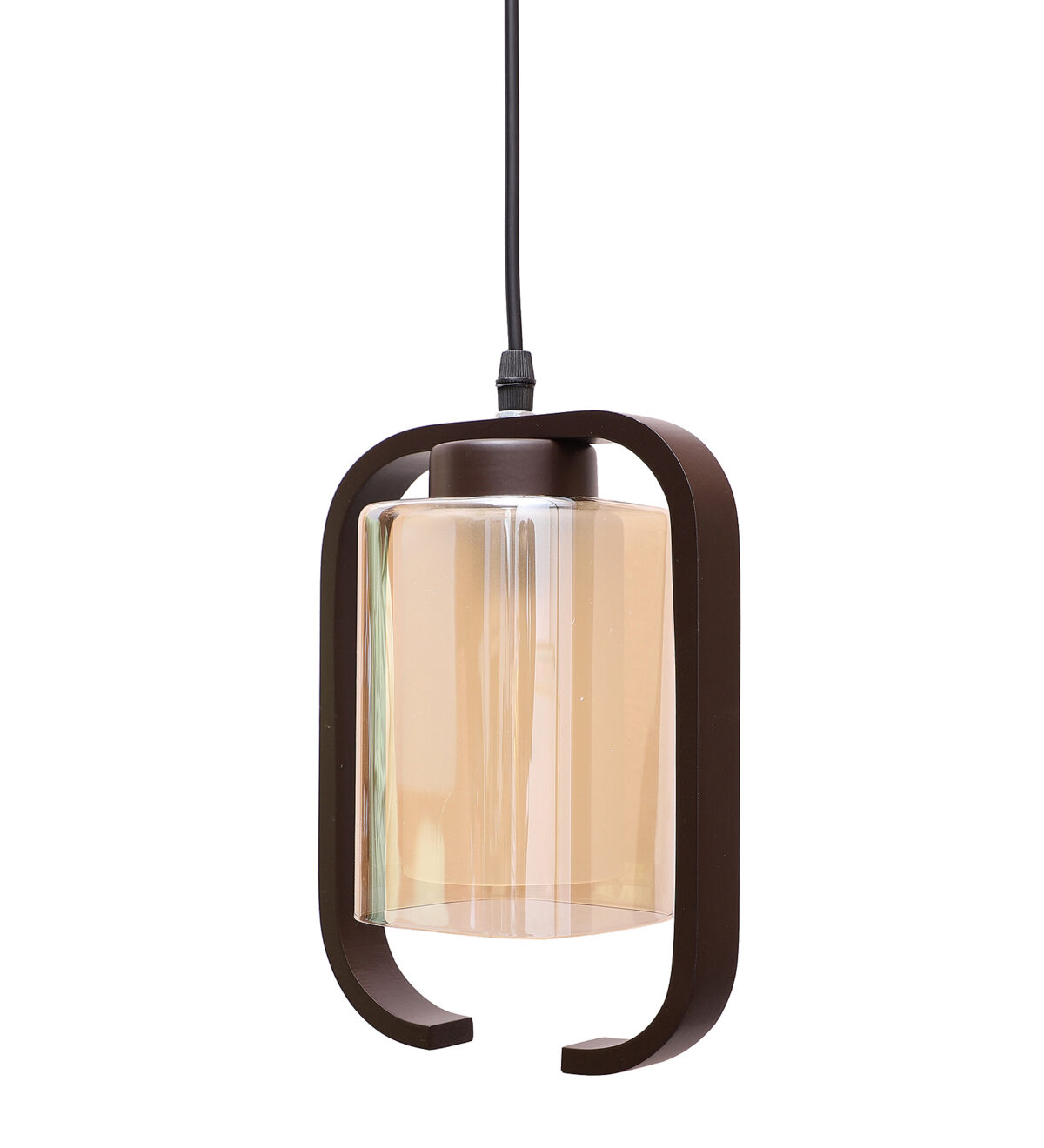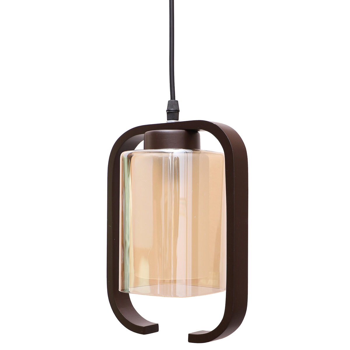 Dark brown (wood) finish, rectangular, campaign glass single hanging light, made of wood, mild steel and glass. The suspension can be adjusted at time of installation to the desired height. Can be customized as per requirement. LAMP NOT INCLUDED.