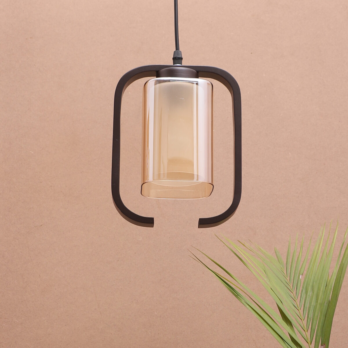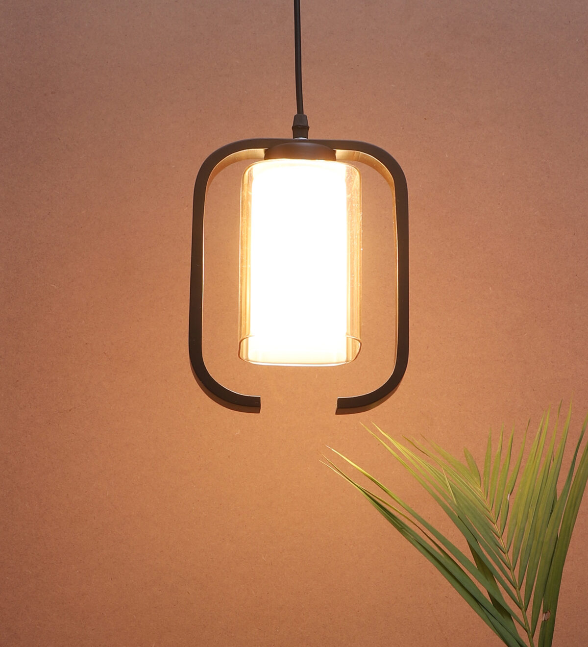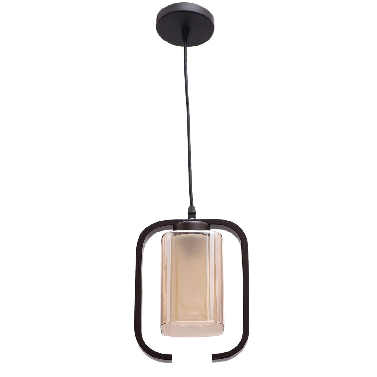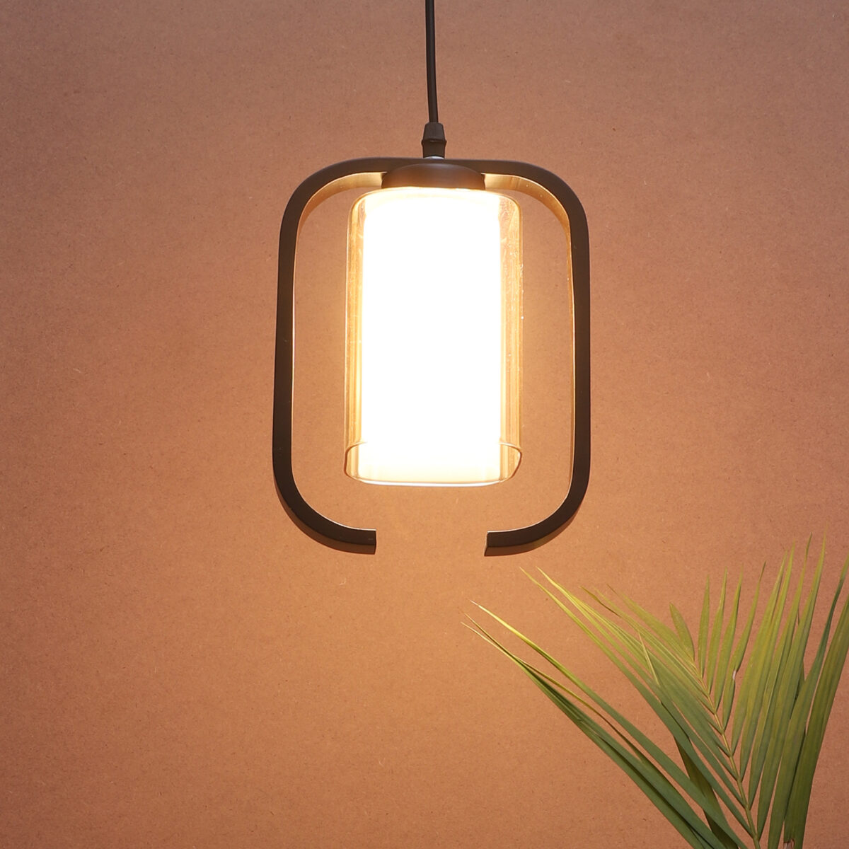 Dark brown (wood) finish, rectangular, campaign glass single hanging light, made of wood, mild steel and glass. The suspension can be adjusted at time of installation to the desired height. Can be customized as per requirement. LAMP NOT INCLUDED.