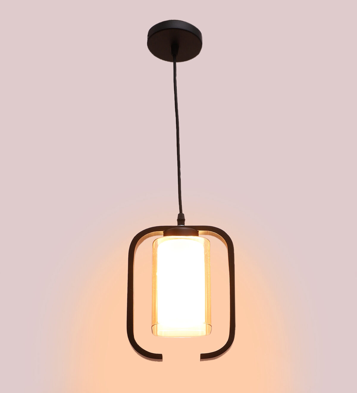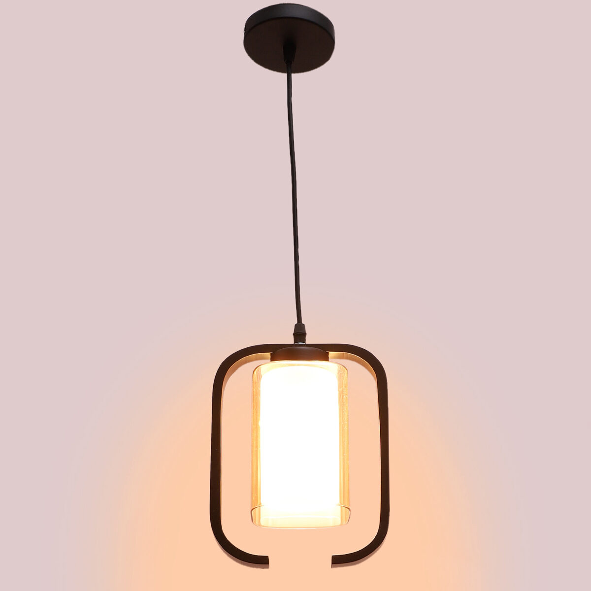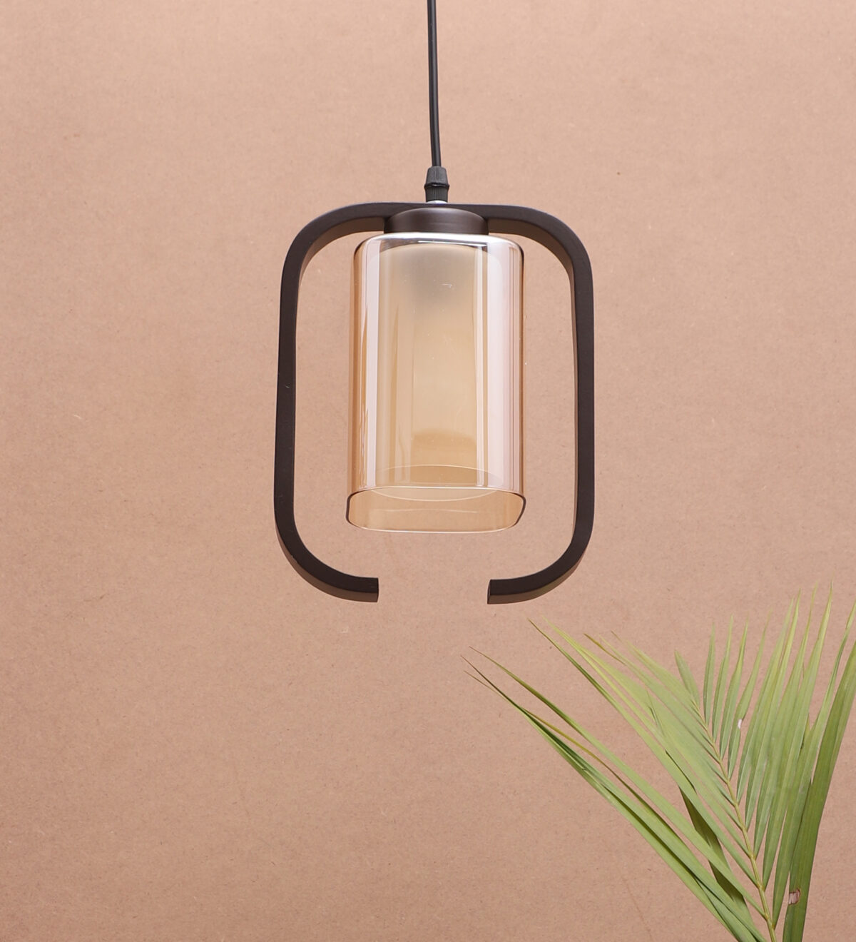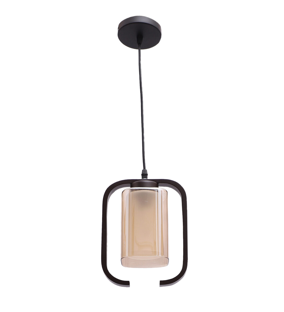 Dark brown (wood) finish, rectangular, campaign glass single hanging light, made of wood, mild steel and glass. The suspension can be adjusted at time of installation to the desired height. Can be customized as per requirement. LAMP NOT INCLUDED.