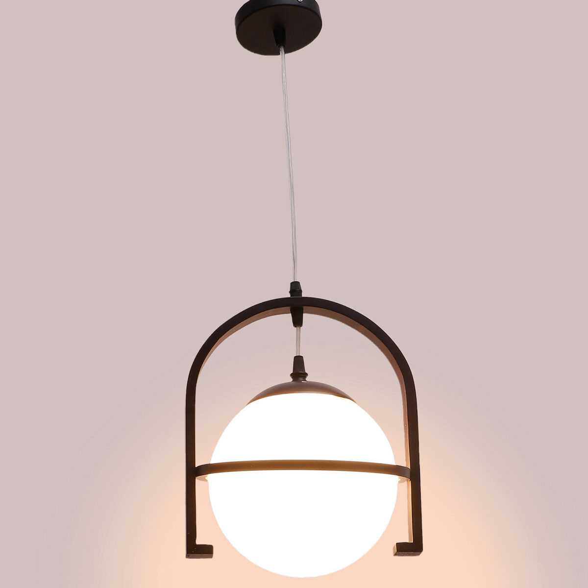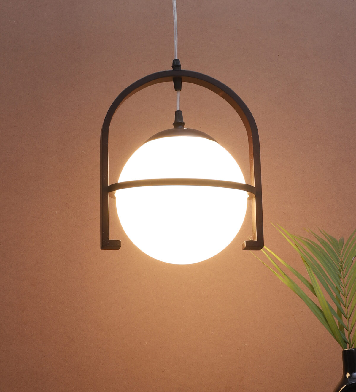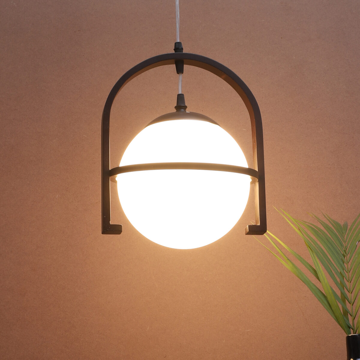 Dark brown (wood) finish, rectangular, campaign glass single hanging light, made of wood, mild steel and glass. The suspension can be adjusted at time of installation to the desired height. Can be customized as per requirement. LAMP NOT INCLUDED.