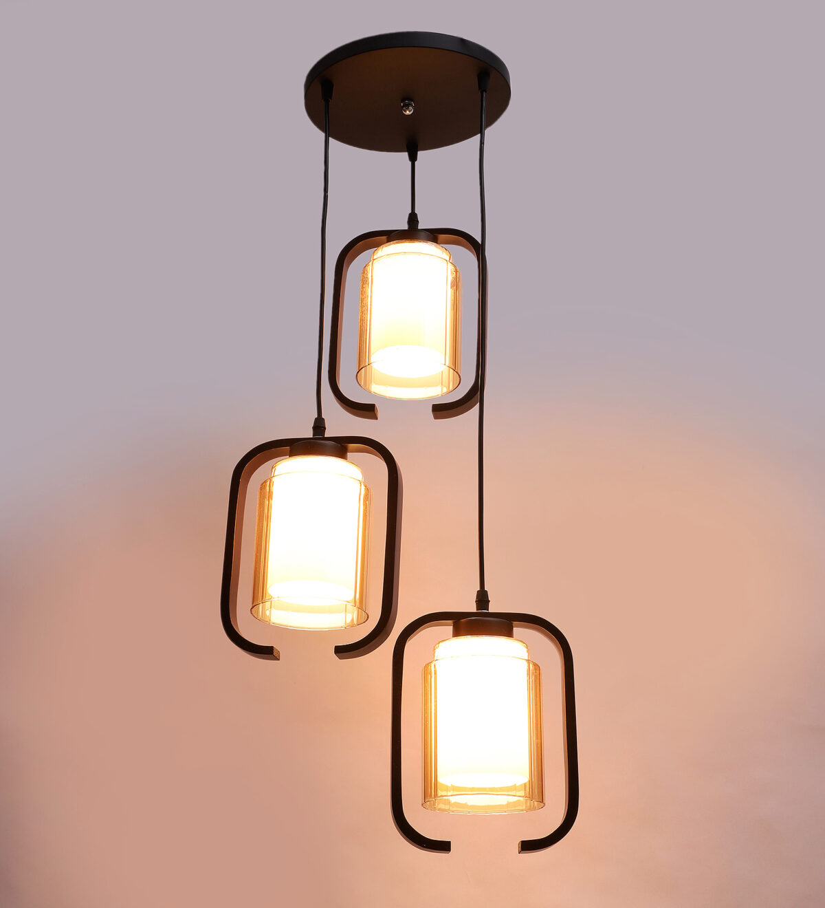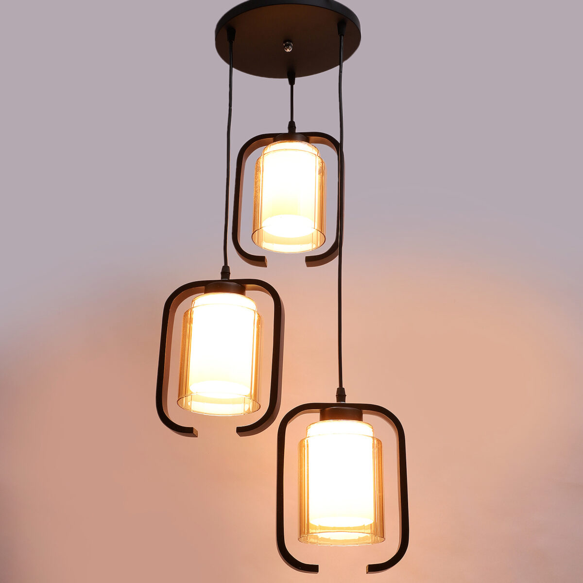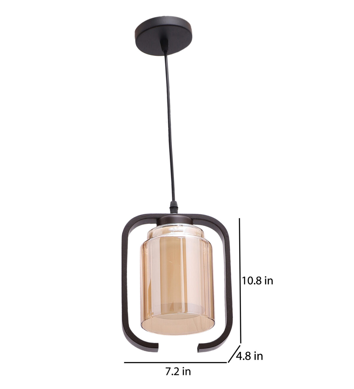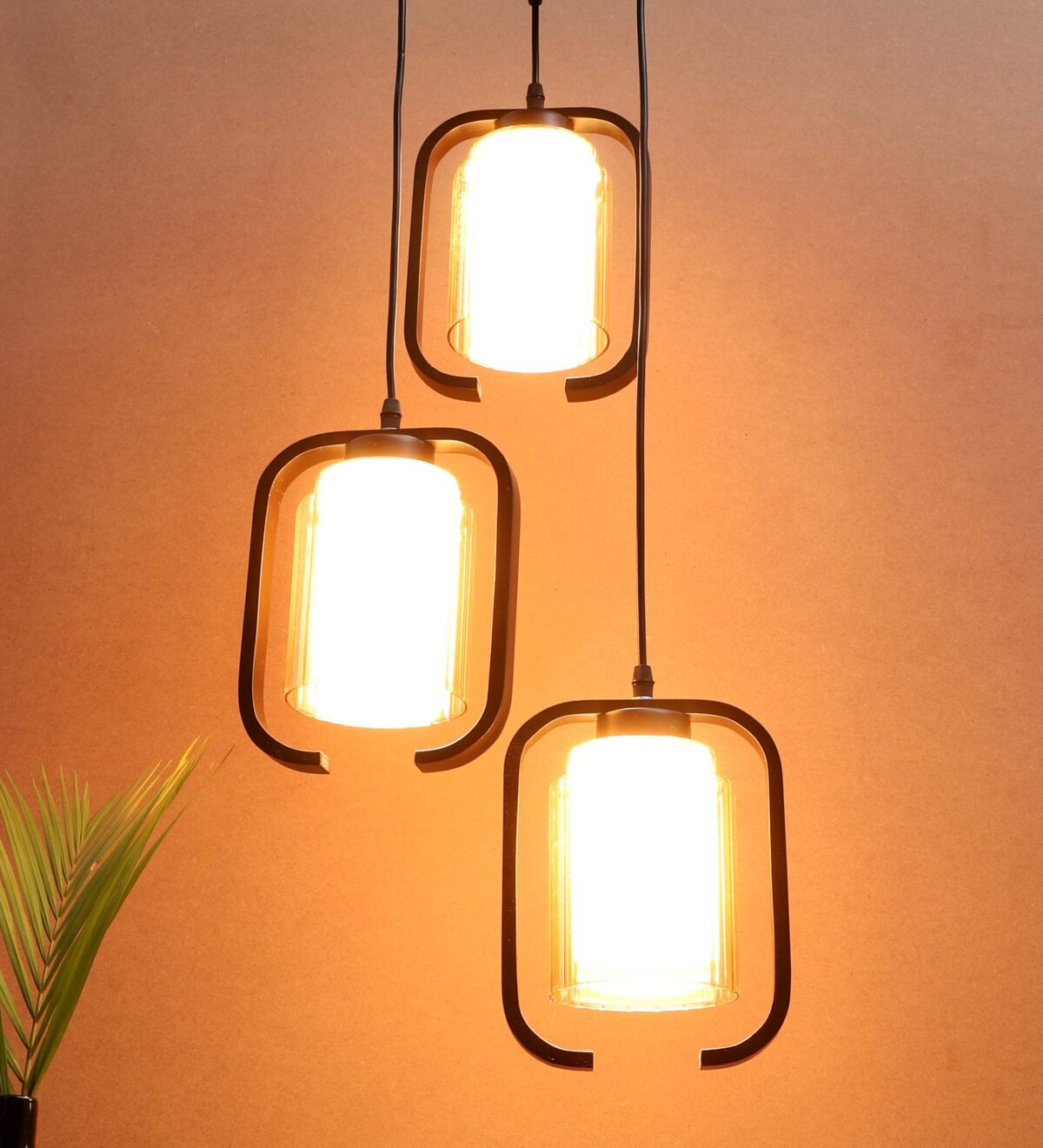 Dark brown (wood) finish, champaign glass tripple hanging light, made of wood, mild steel and glass. The suspension can be adjusted at time of installation to the desired height. Can be customized as per requirement. LAMP NOT INCLUDED.