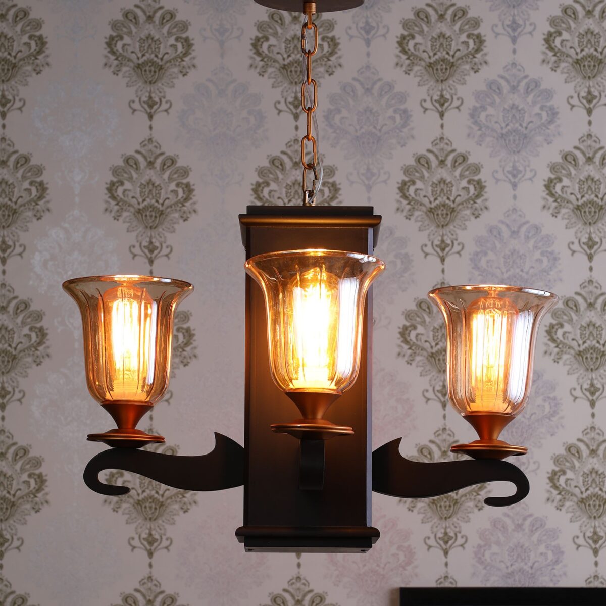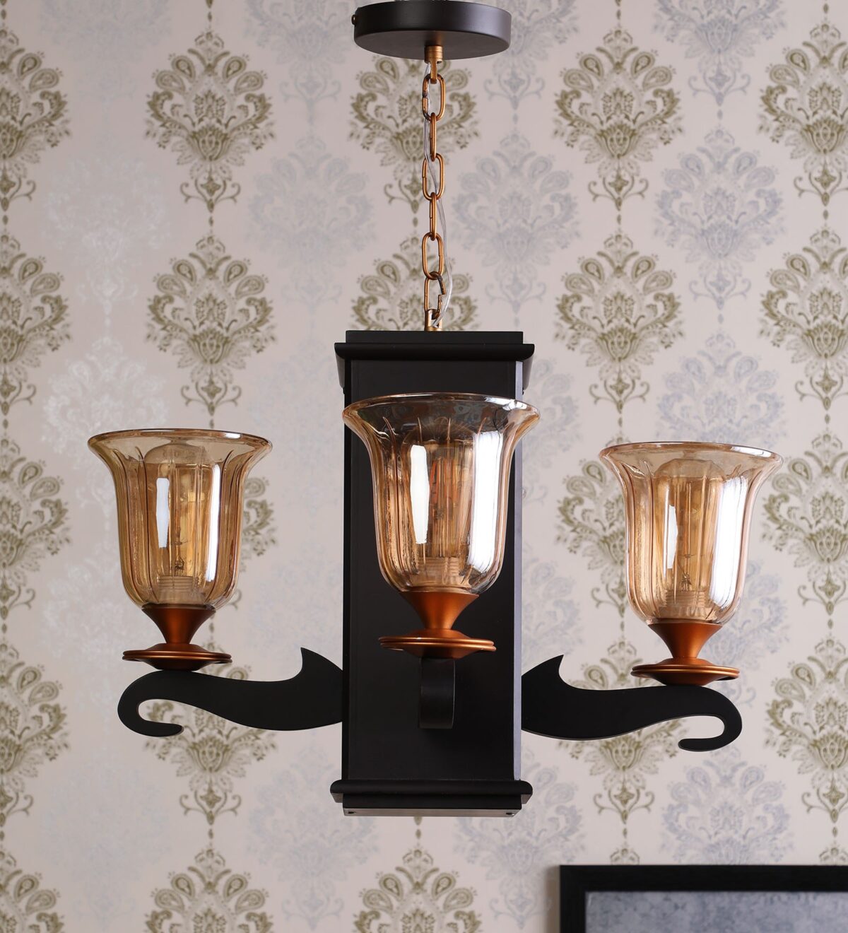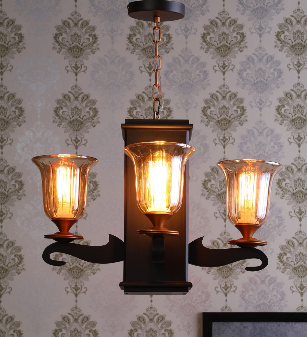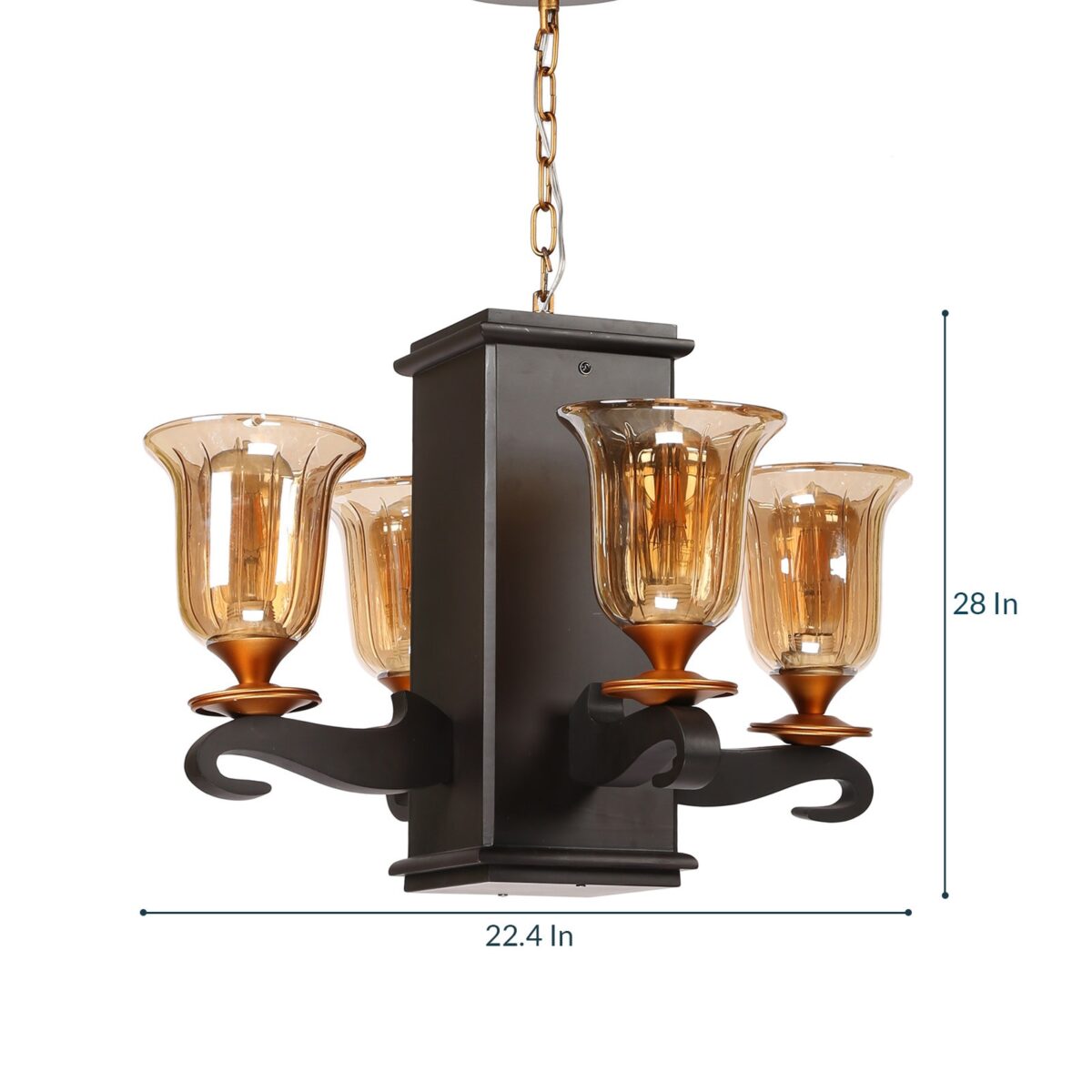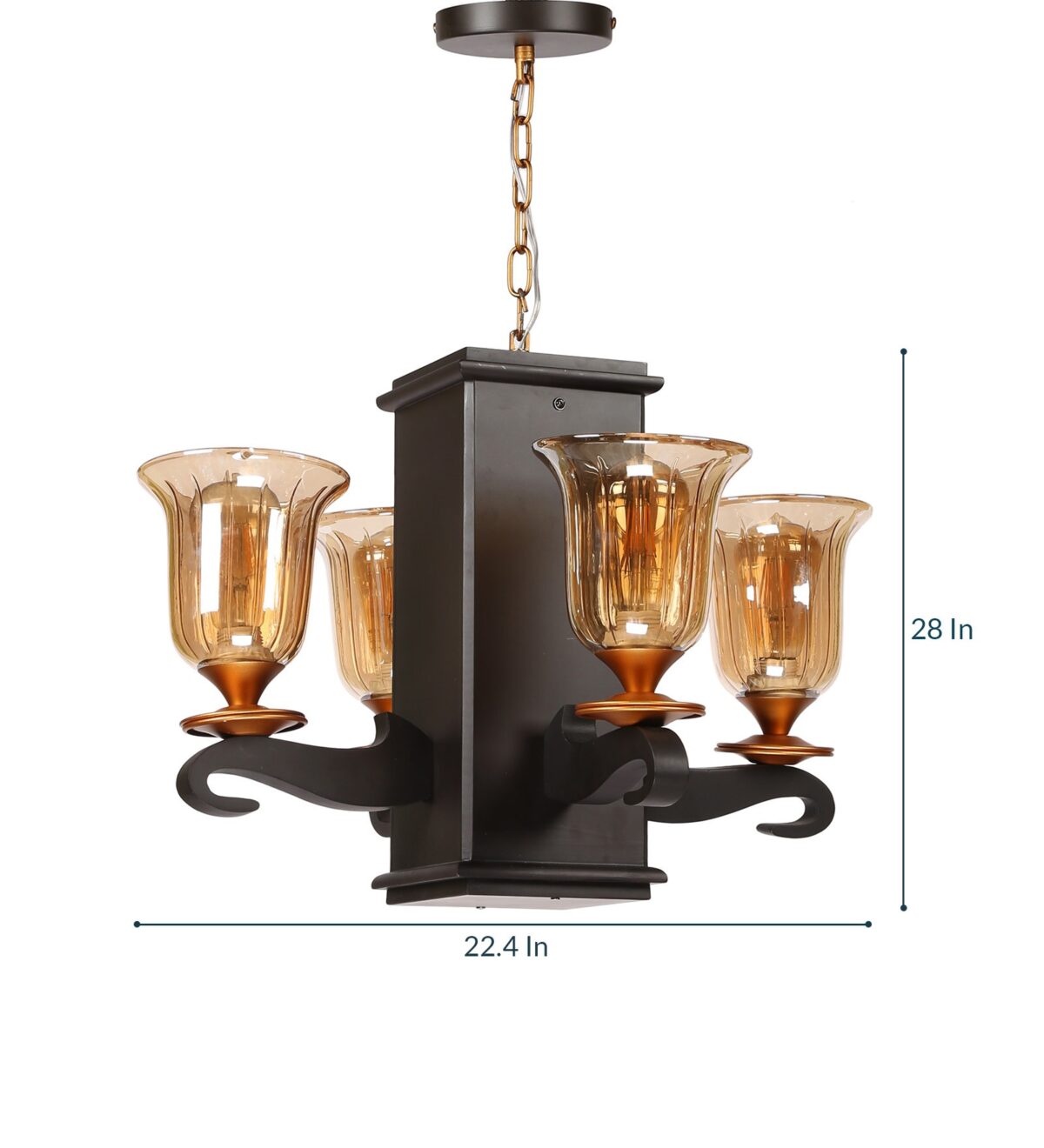 Dark brown (wood) finish,heavy, sturdy, clear campaign glass hanging light having four lamps, made of wood, mild steel and glass. It is one of the highest selling design. The suspension can be adjusted at time of installation to the desired height. It is maintenance free, easy to remove glass and wash them, comes with an E27 holder, only the change of lamp is required, which is available locally everywhere. LED filament lamp is recommended to enhance its beauty. Application includes both residential and commercial premises wherever it matches with your interiors. Looks highly impressive with LED filament lamp. Matching wall light code – WL2375, WL2376. Can be customized as per requirement in case of bulk quantities. Lamp not included.