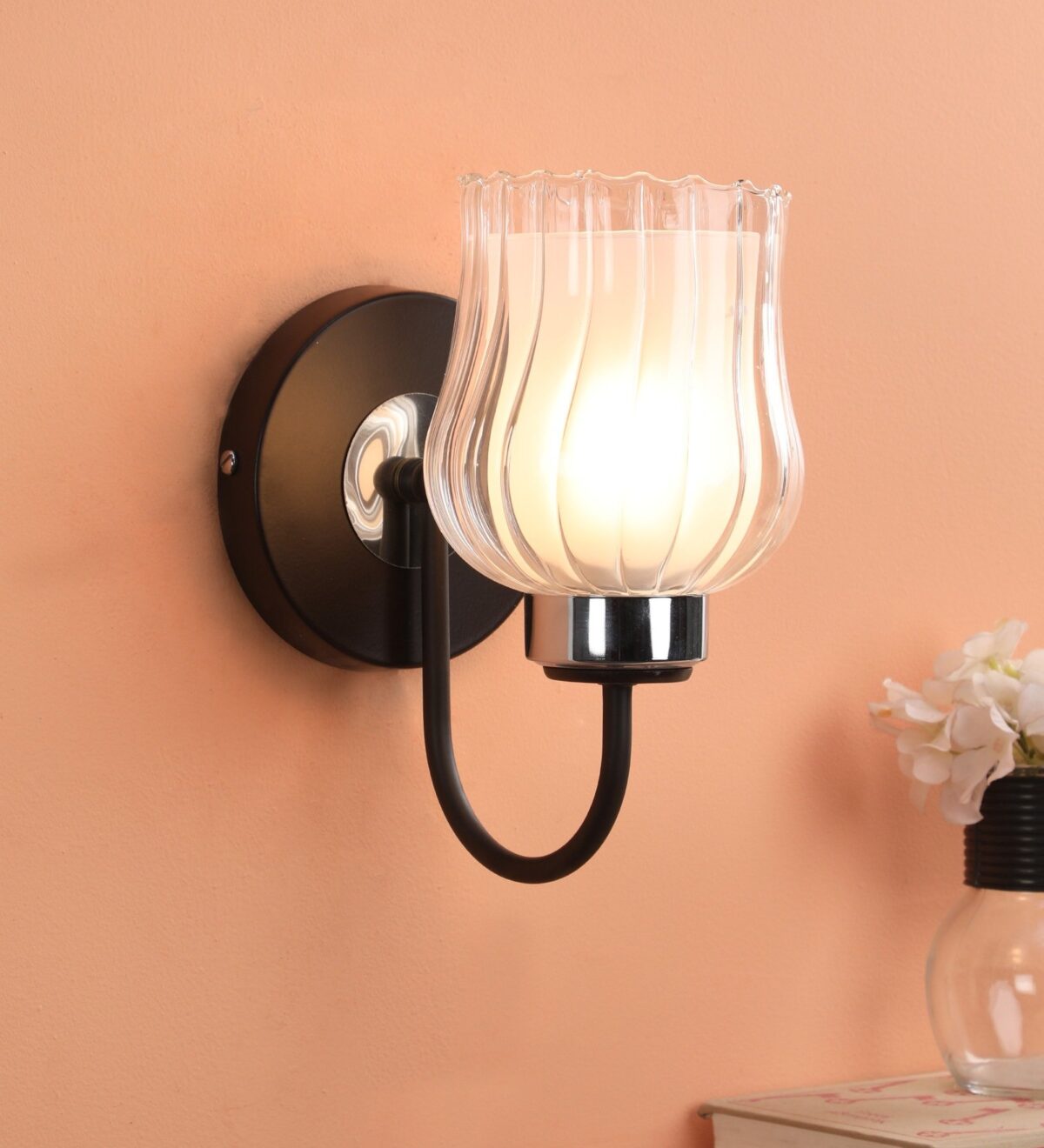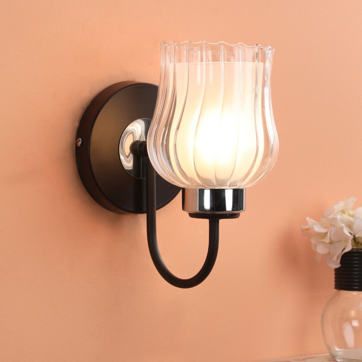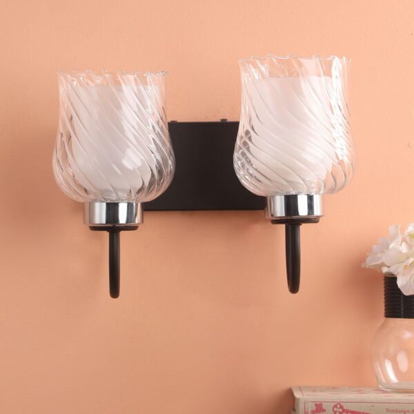 Modern dark brown silver (wood, chrome) finish single wall light made of mild steel made of mild steel with a two layered bell shaped glass. It is maintenance free, easy to remove glass and wash it, comes with an E27 holder, only the change of lamp is required, which is available locally everywhere. Application includes both residential and commercial premises wherever it matches with your interiors. Matching double wall light code – WL2074. Can be customized as per requirement in case of bulk quantities. Lamp not included.