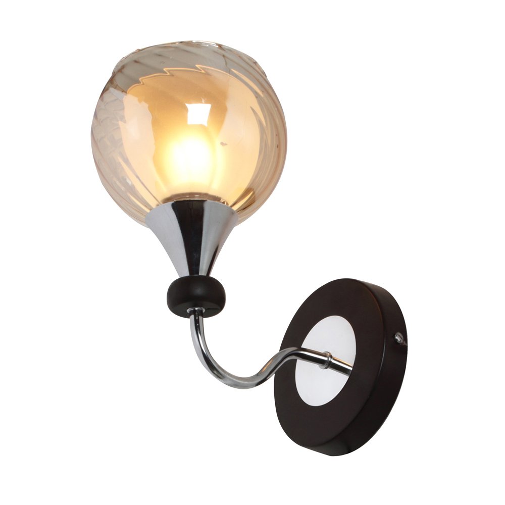 Dark brown, silver (wood chrome) finish single wall light with small round globe (doom) type Champaign colored two layered glass . It is maintenance free, easy to remove glass and wash it. Comes with an E27 holder, only the change of lamp is required, which is available locally everywhere. Application includes both residential and commercial premises wherever it matches with your interiors. Matching double wall light code – WL2340. Matching chandelier code – CH407. Can be customized as per requirement in case of bulk quantities. Lamp not included.