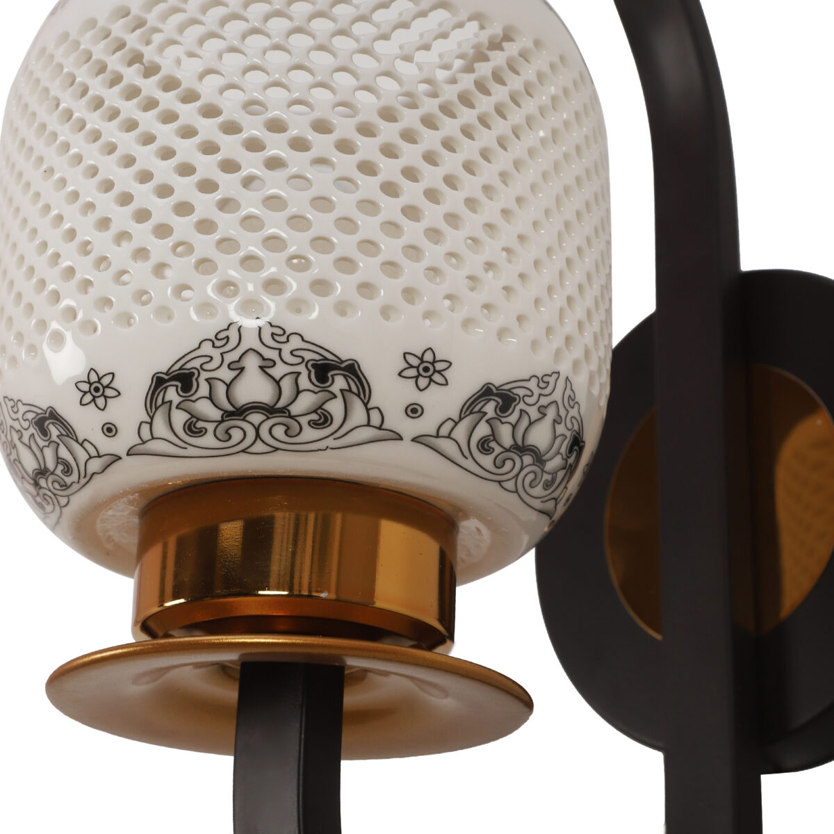 Dark brown,designer, traditional, mild steel single wall light with ceramic shade. It is maintenance free, comes with an E27 holder, only the change of lamp is required, which is available locally everywhere. Application includes both residential and commercial premises wherever it matches with your interiors. Can be customized as per requirement. LAMPS NOT INCLUDED.