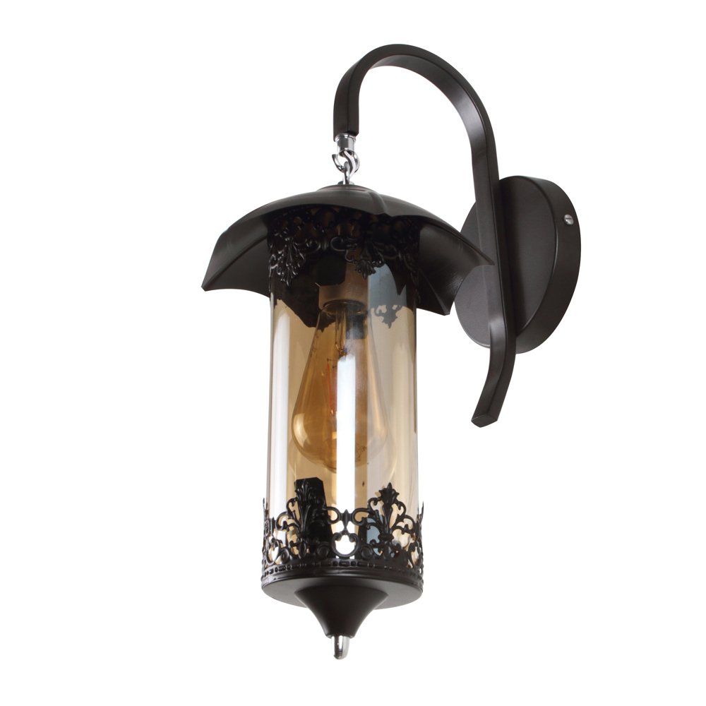 Powder coated black designer,traditional, mild steel, down facing single wall light in Champaign glass. It is maintenance free, easy to remove glasses and wash it, comes with an E27 holder, only the change of lamp is required, which is available locally everywhere. LED filament lamp is recommended to enhance its beauty. Application includes both residential and commercial premises wherever it matches with your interiors. Can be customized as per requirement in case of bulk quantities. Lamp not included.