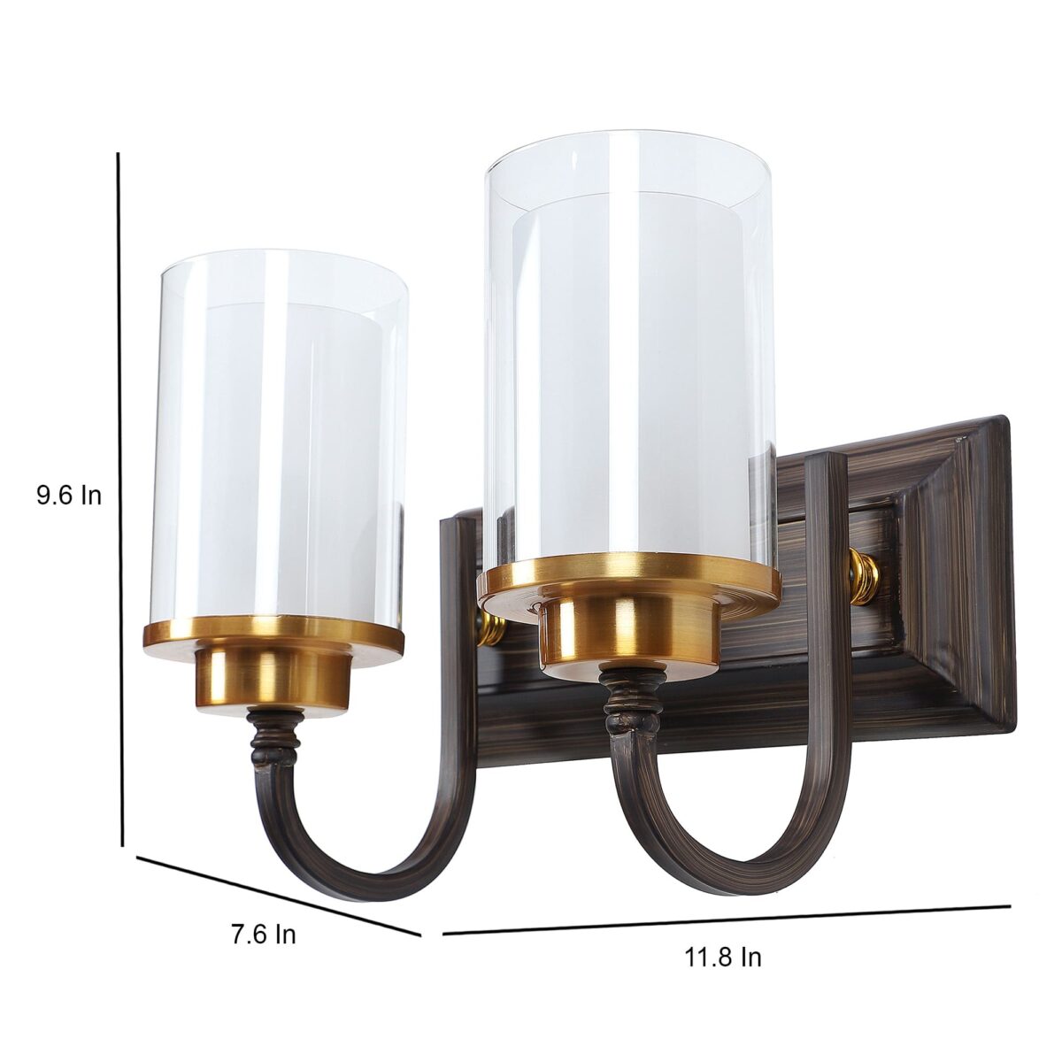 Dark brown (wood), gold finish double wall light made of mild steel, with a round cylindrical long two layered glasses. It is maintenance free, easy to remove glass and wash it, comes with an E27 holder, only the change of lamp is required, which is available locally everywhere. You can of course swap out the bulb for one that is dimmable, has a higher light output or a different color temperature. Application includes both residential and commercial premises wherever it matches with your interiors. Matching single wall light code – WL2405. Can be customized as per requirement in case of bulk quantities. Lamp not included.