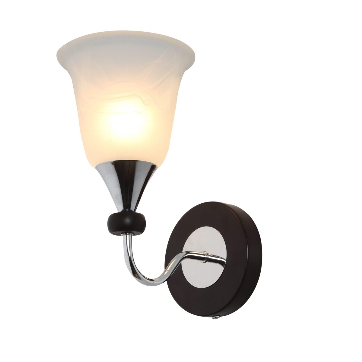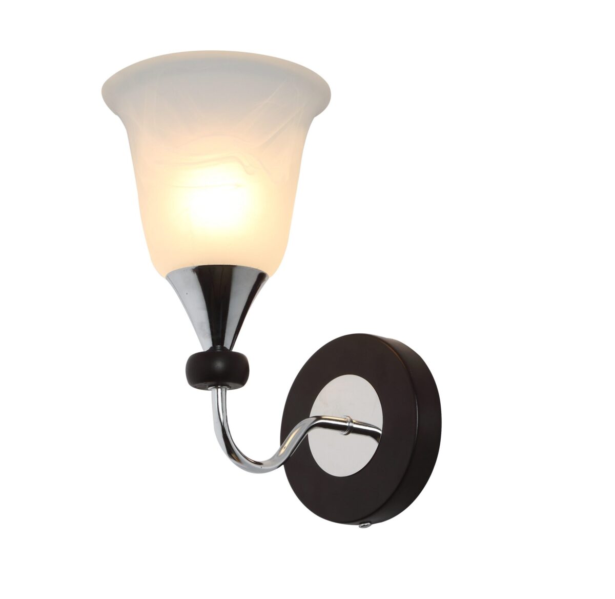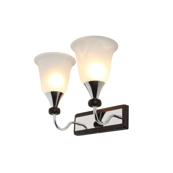 Dark brown silver (wood chrome) finish single wall light made of mild steel, with a bell shaped long white textured glass. Looks amazing when lit. It is maintenance free, easy to remove glass and wash it, comes with an E27 holder, only the change of lamp is required, which is available locally everywhere. You can of course swap out the bulb for one that is dimmable, has a higher light output or a different color temperature. Application includes both residential and commercial premises wherever it matches with your interiors. Matching double wall light code – WL2454. Can be customized as per requirement in case of bulk quantities. Lamp not included.