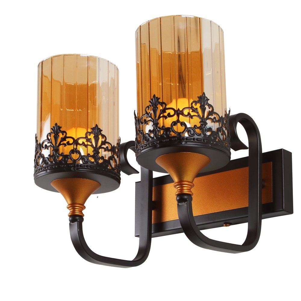 Dark brown (wood), gold designer, traditional, mild steel double wall light in a cylindrical Champaign colored glass. It is maintenance free, comes with an E27 holder, only the change of lamp is required, which is available locally everywhere. LED filament lamp is recommended to enhance its beauty. Matching single wall light code – WL2517. Application includes both residential and commercial premises wherever it matches with your interiors. Can be customized as per requirement in case of bulk quantities. Lamp not included.