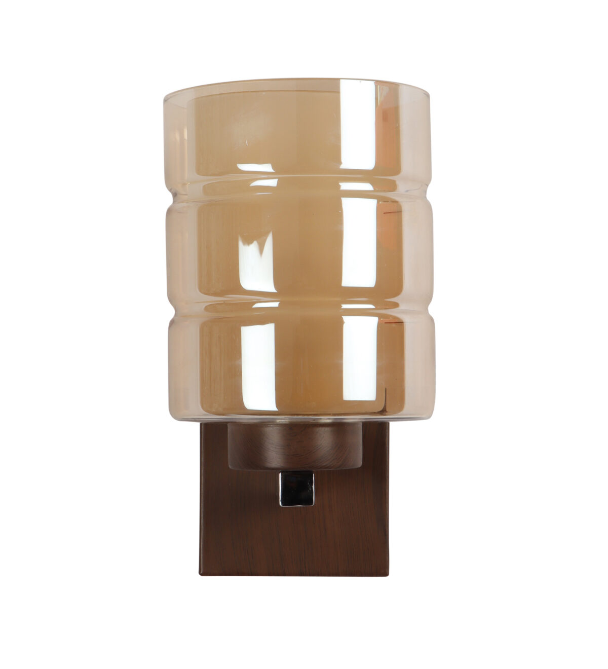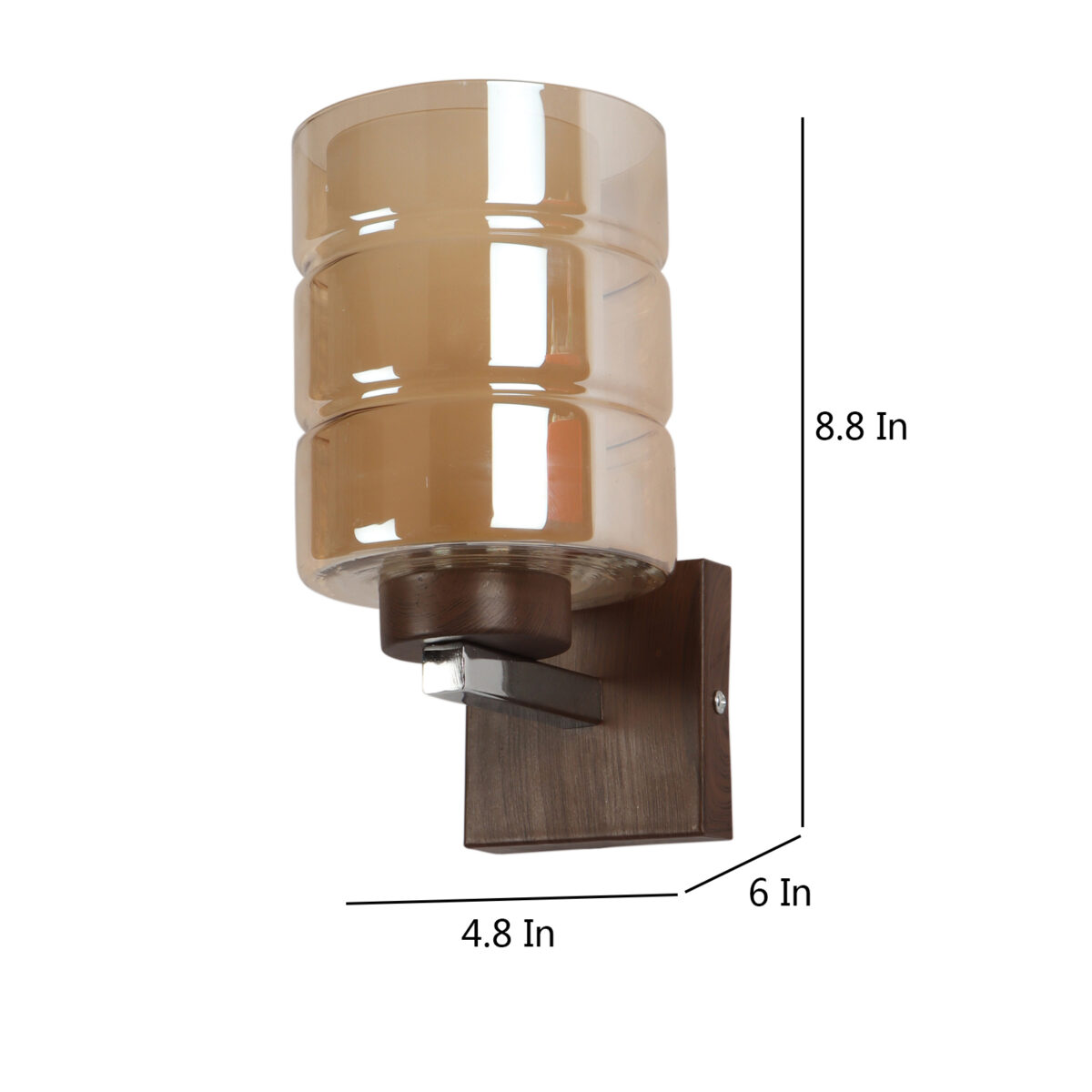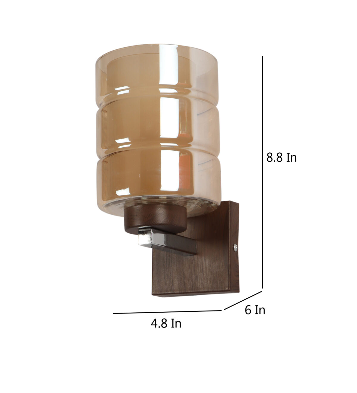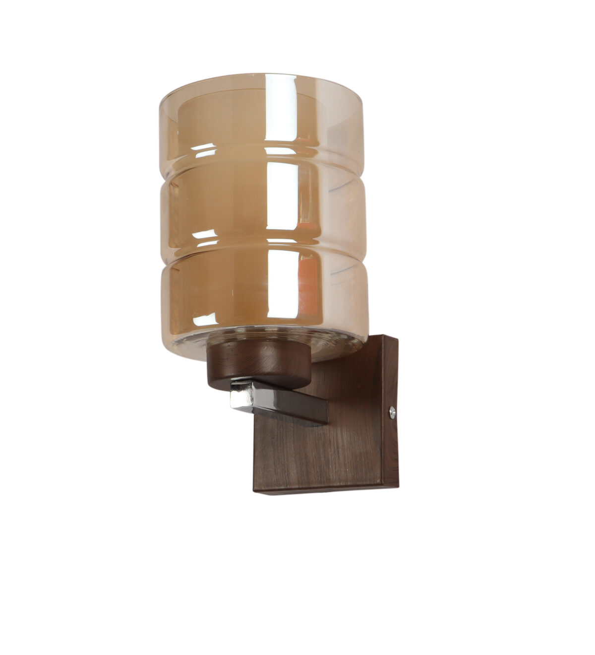 Dark brown (wood finish with grains) single wall light having cylindrical Champaign coloured two layer glass made of mild steel. It is maintenance free., It is easy to remove glass and wash them. Comes with an E27 holder, only the change of lamp is required, which is available locally everywhere. Application includes both residential and commercial premises wherever it matches with your interiors. Matching double wall light code WL2526. LAMP NOT INCLUDED.