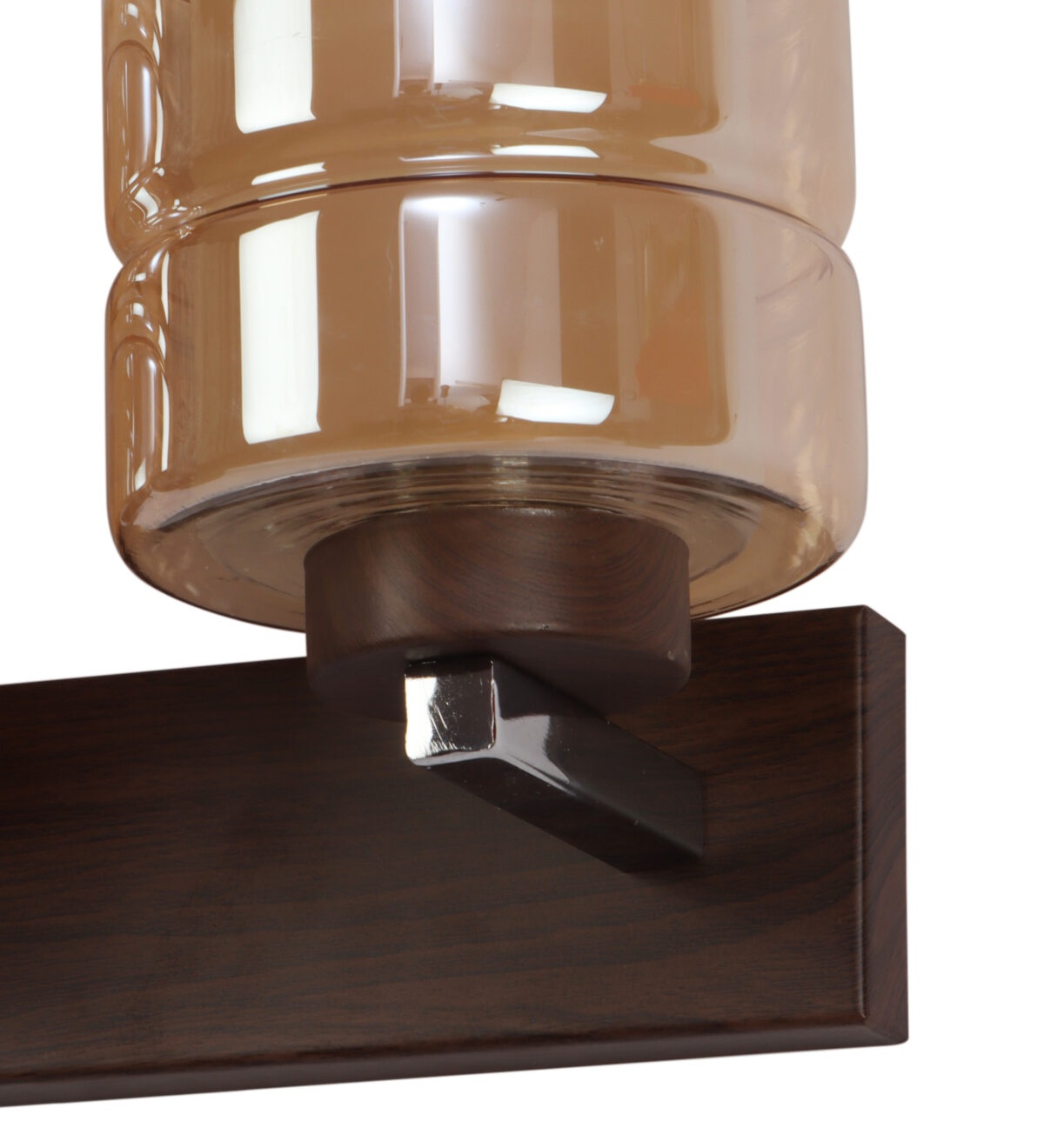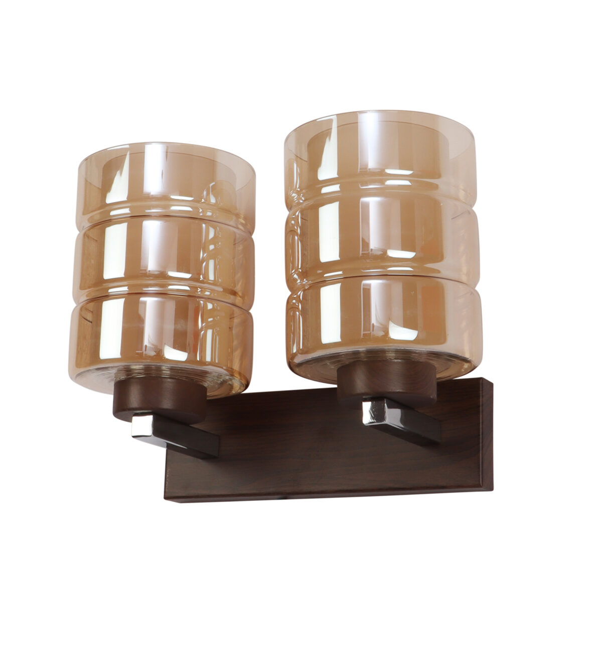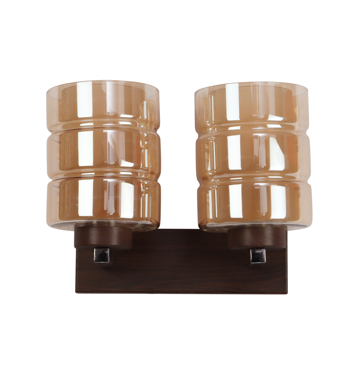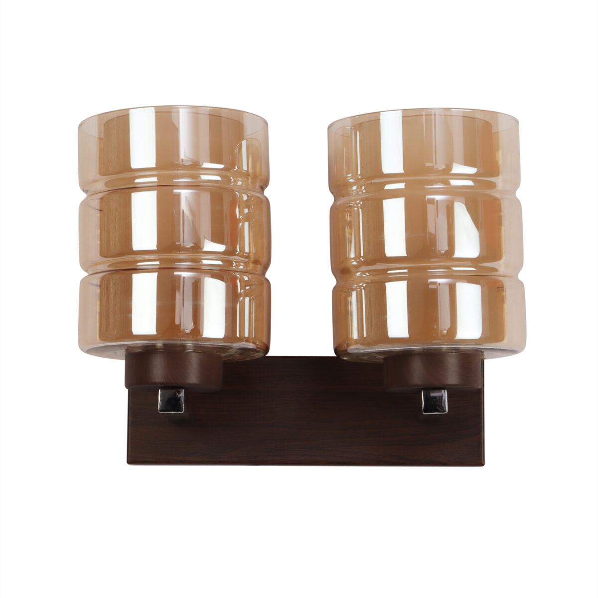 Dark brown (wood finish with grains) double wall light having cylindrical Champaign coloured two layer glass made of mild steel. It is maintenance free., It is easy to remove glass and wash them. Comes with an E27 holder, only the change of lamp is required, which is available locally everywhere. Application includes both residential and commercial premises wherever it matches with your interiors. Matching single wall light code WL2525. LAMP NOT INCLUDED.