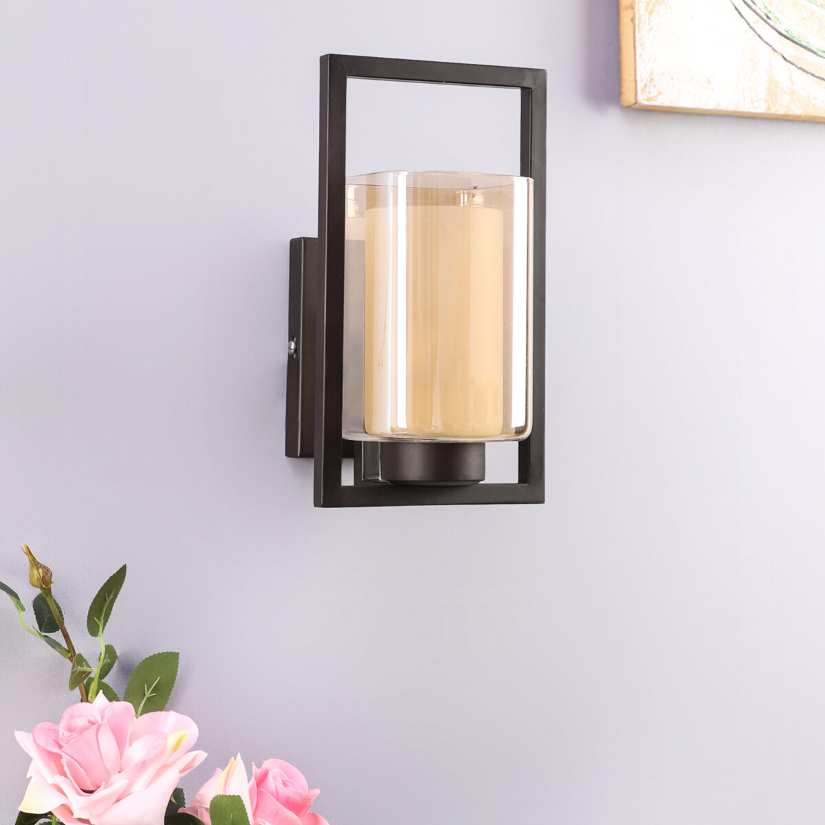 Dark brown finish single wall light having square long two layered champagne coloured glass, mounted on a designer frame It is maintenance free, it is easy to remove glass and wash it. Comes with an E27 holder, only the change of lamp is required, which is available locally everywhere. Application includes both residential and commercial premises wherever it matches with your interiors. Matching double wall light code WL2586. Can be customized as per requirement in case of bulk quantities. This along with its variants are the best selling products in our catalogue. Lamp not included.