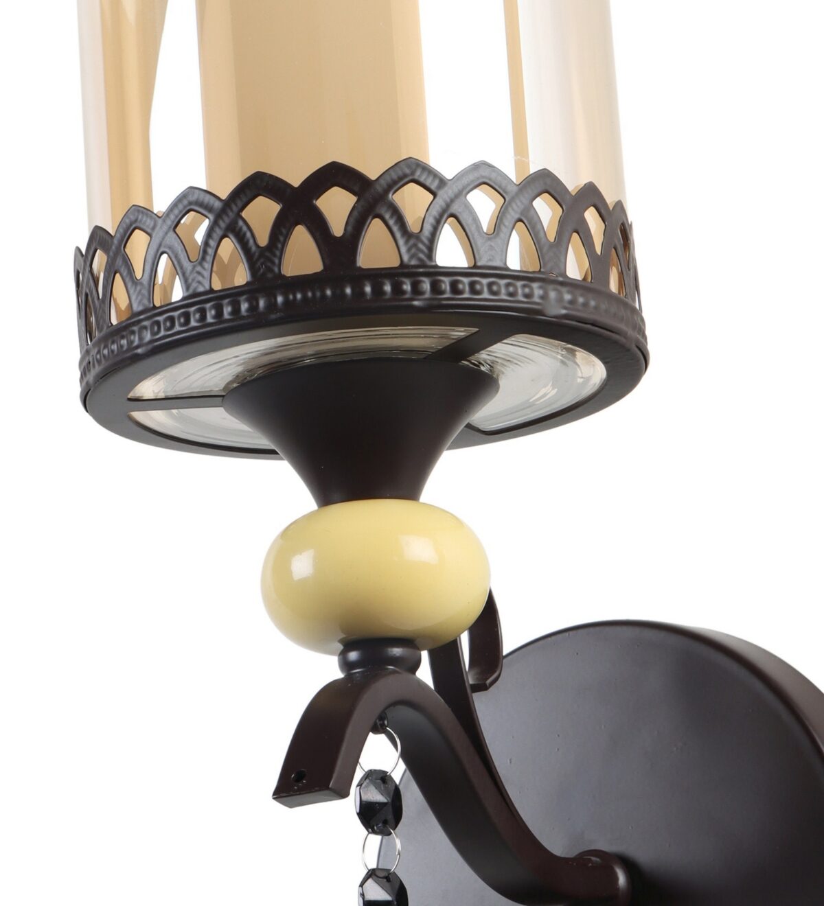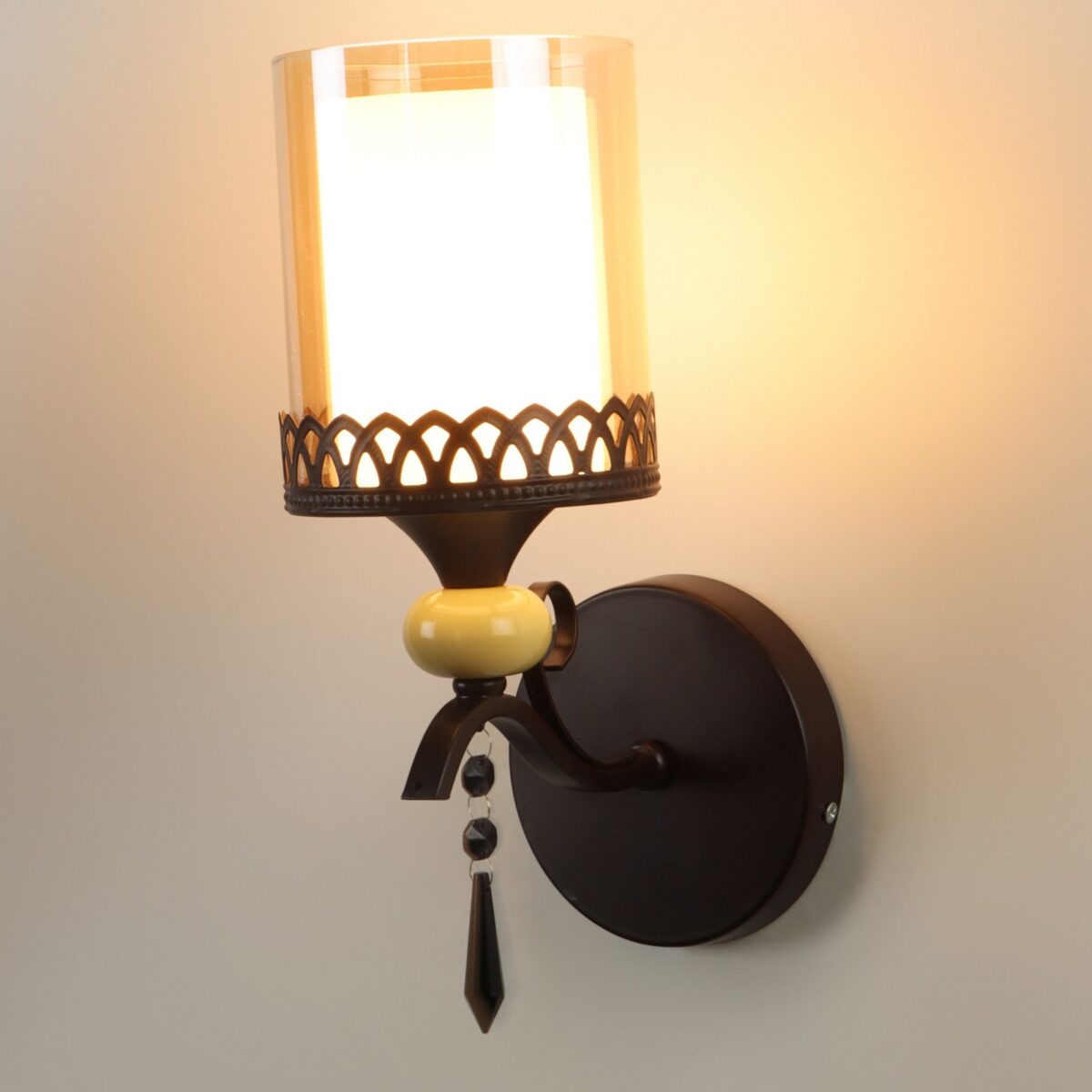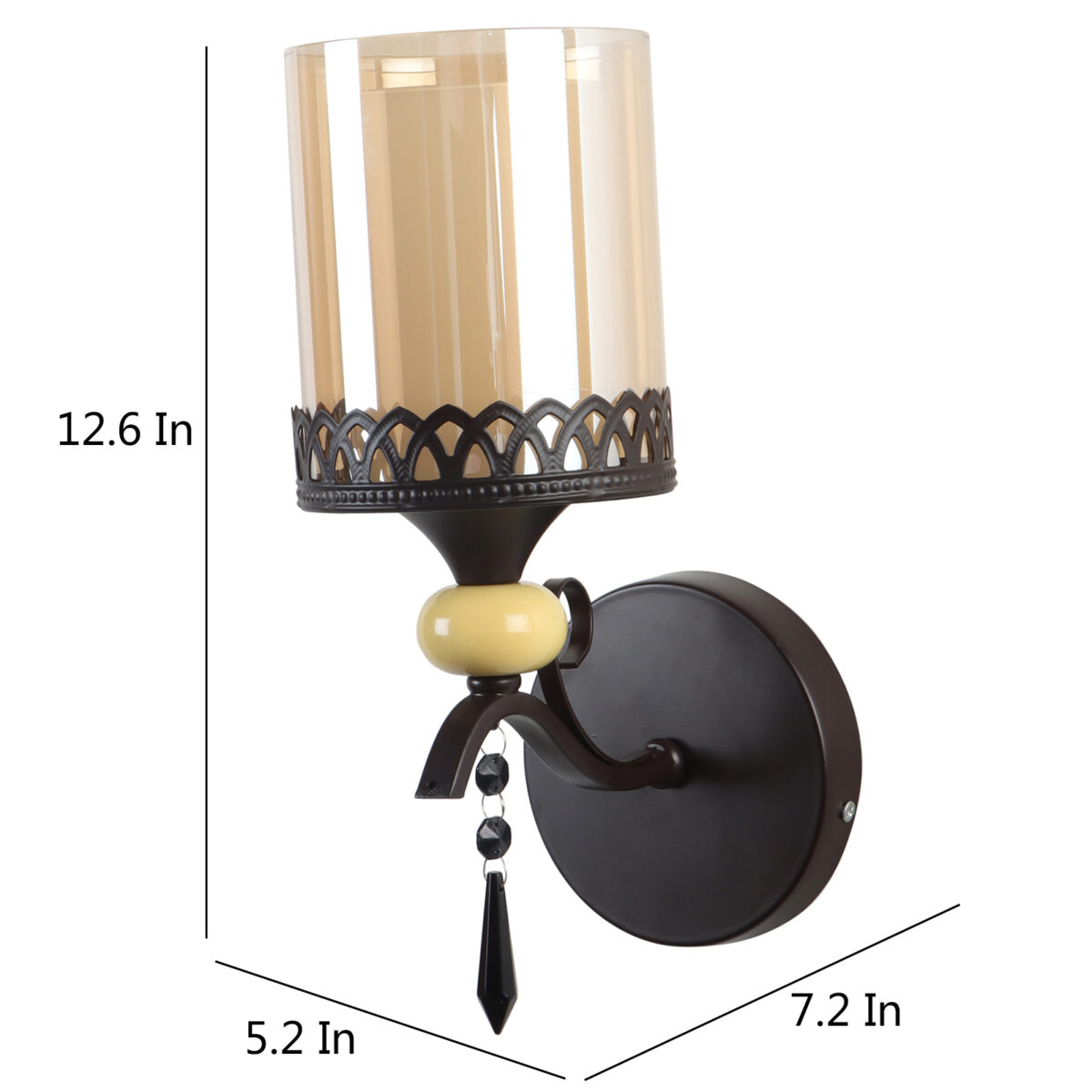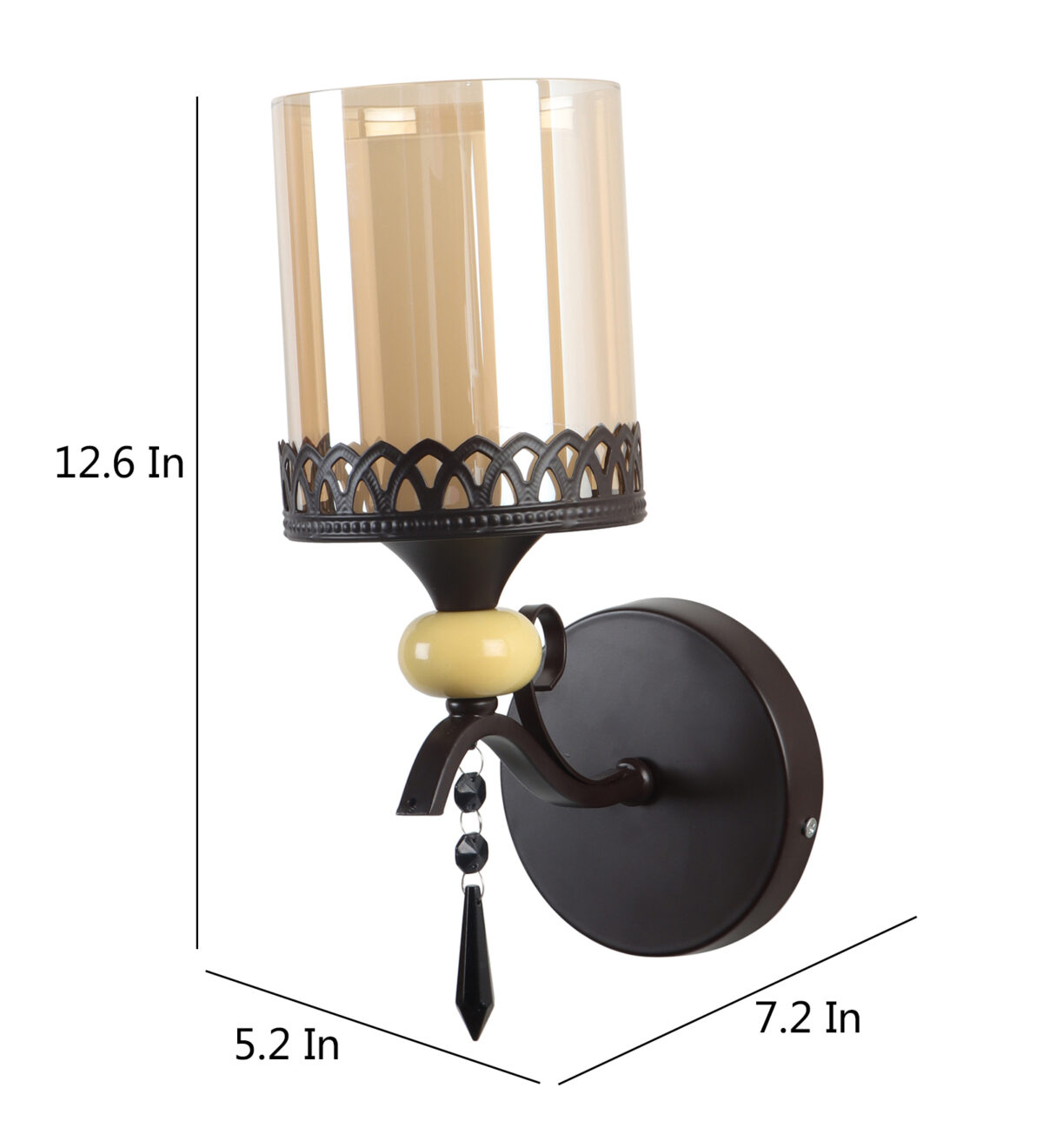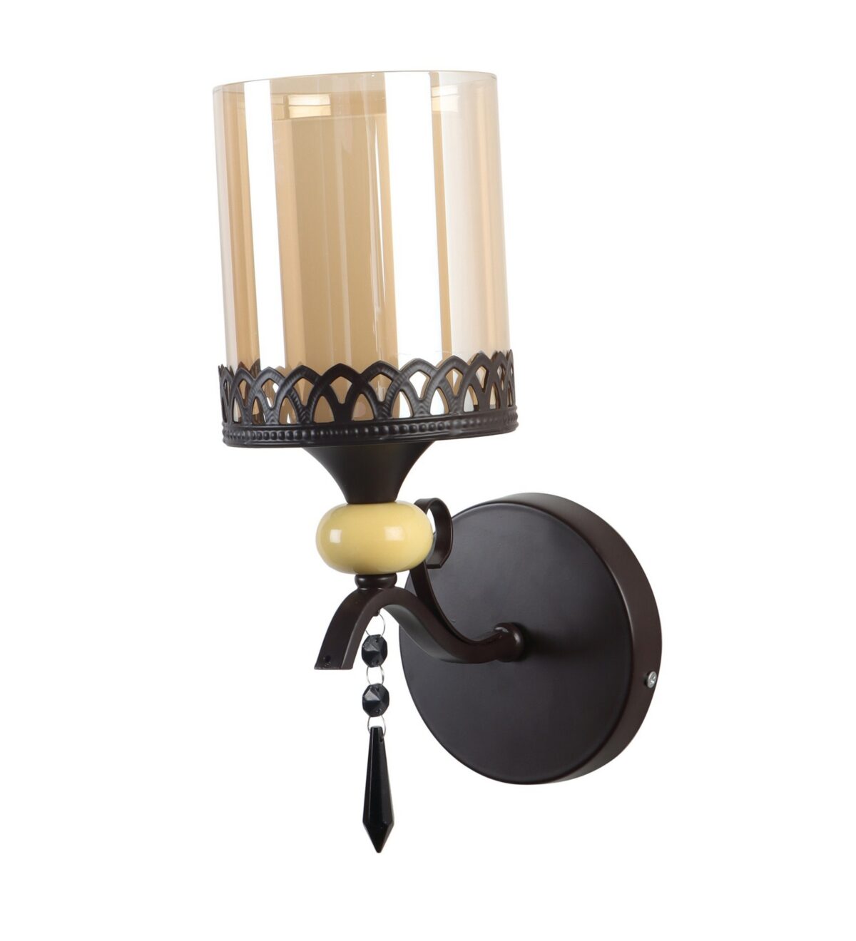 Dark brown, (wood) finish single wall light with cylinderical Champaign colored two layered glass . It is maintenance free, easy to remove glass and wash it. Comes with an E27 holder, only the change of lamp is required, which is available locally everywhere. Application includes both residential and commercial premises wherever it matches with your interiors. Matching double wall light code – WL2694. LAMP NOT INCLUDED.