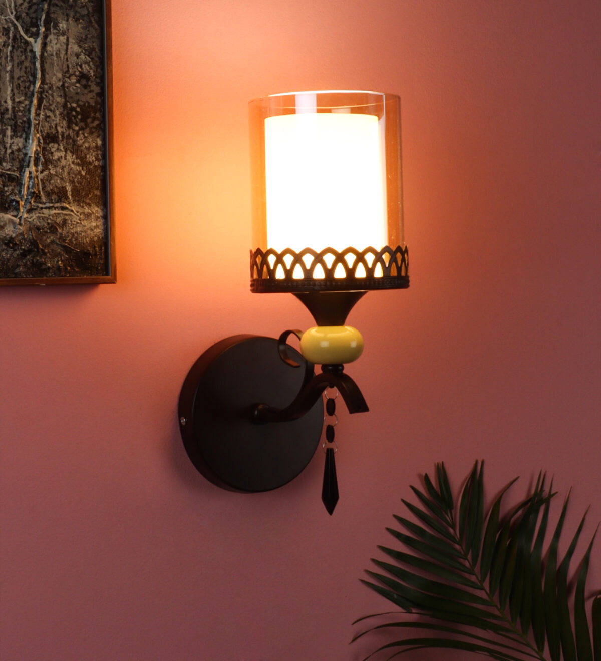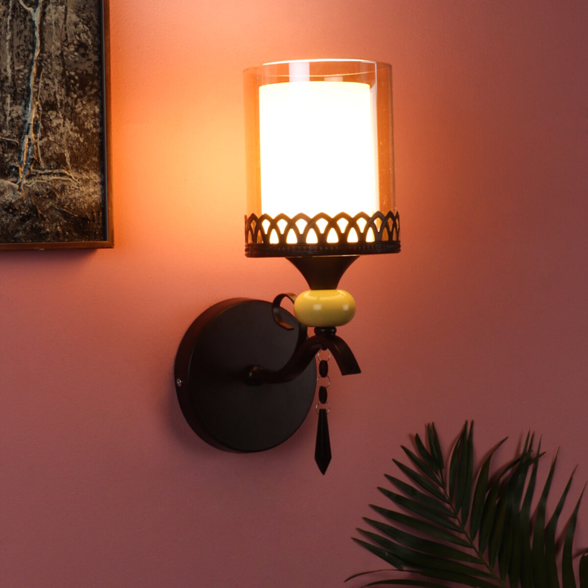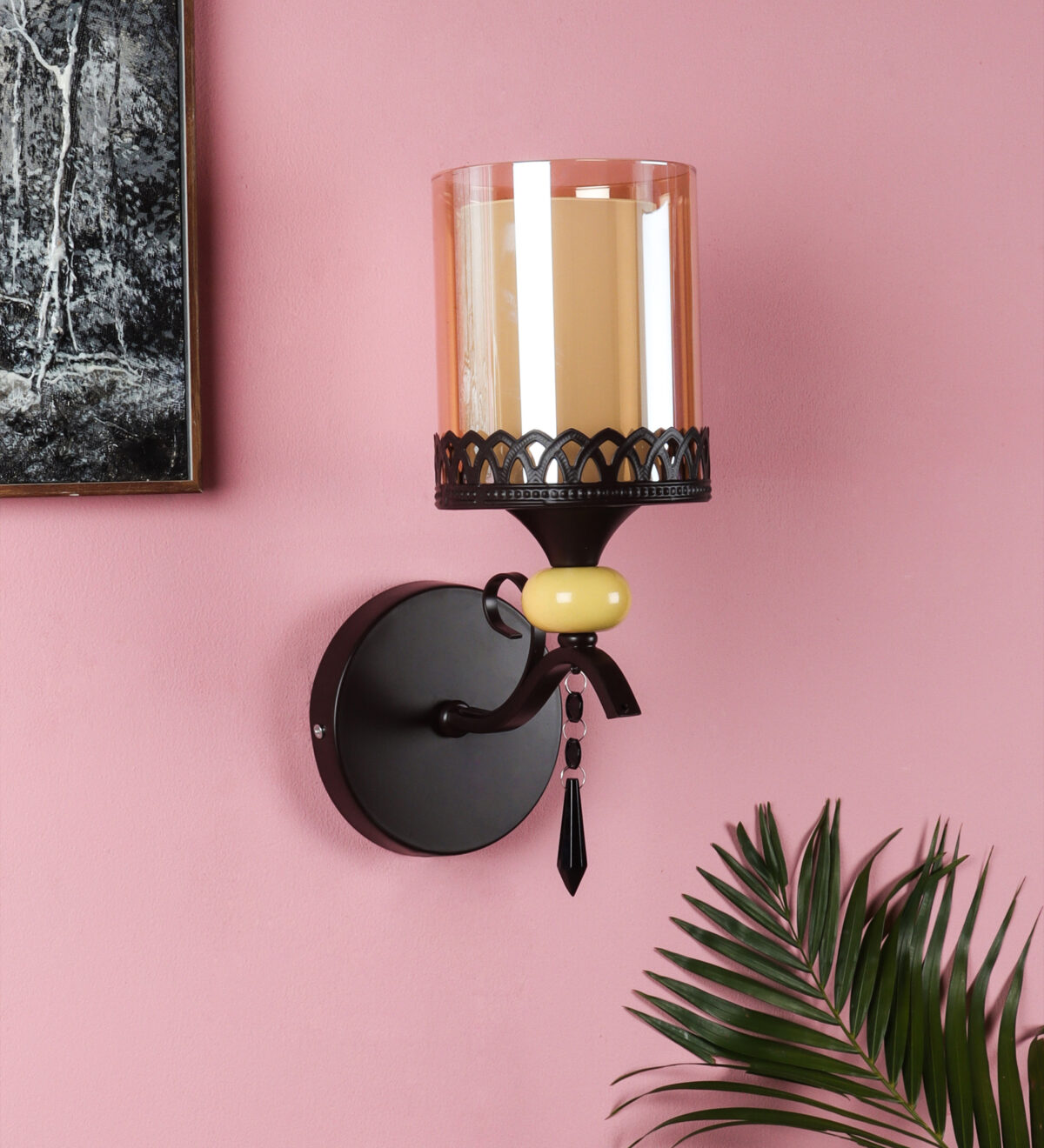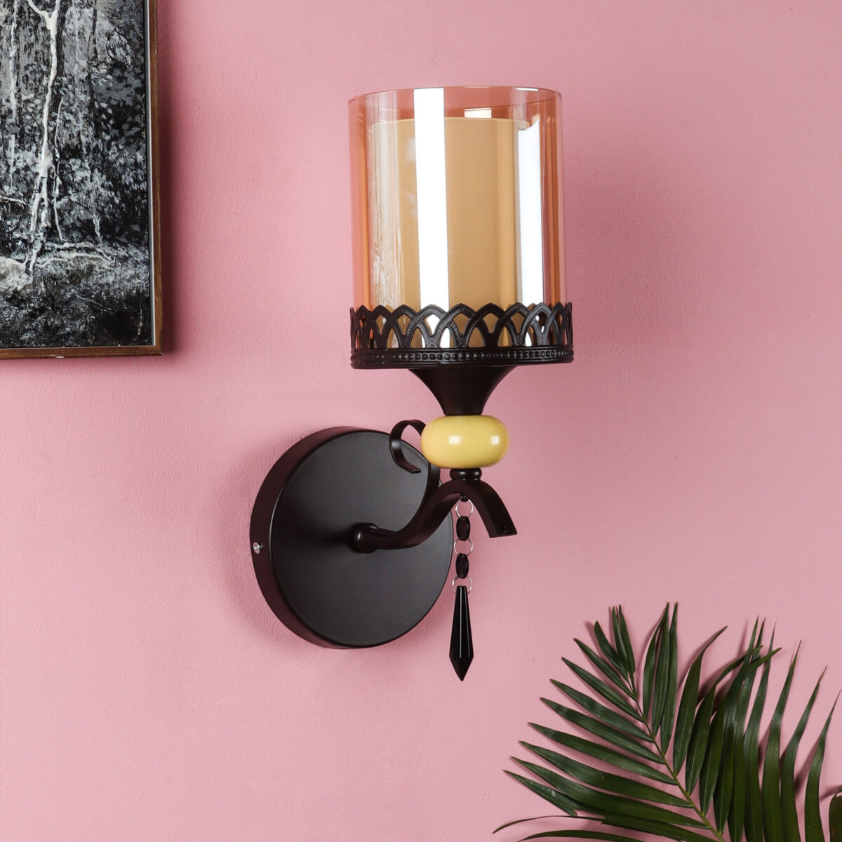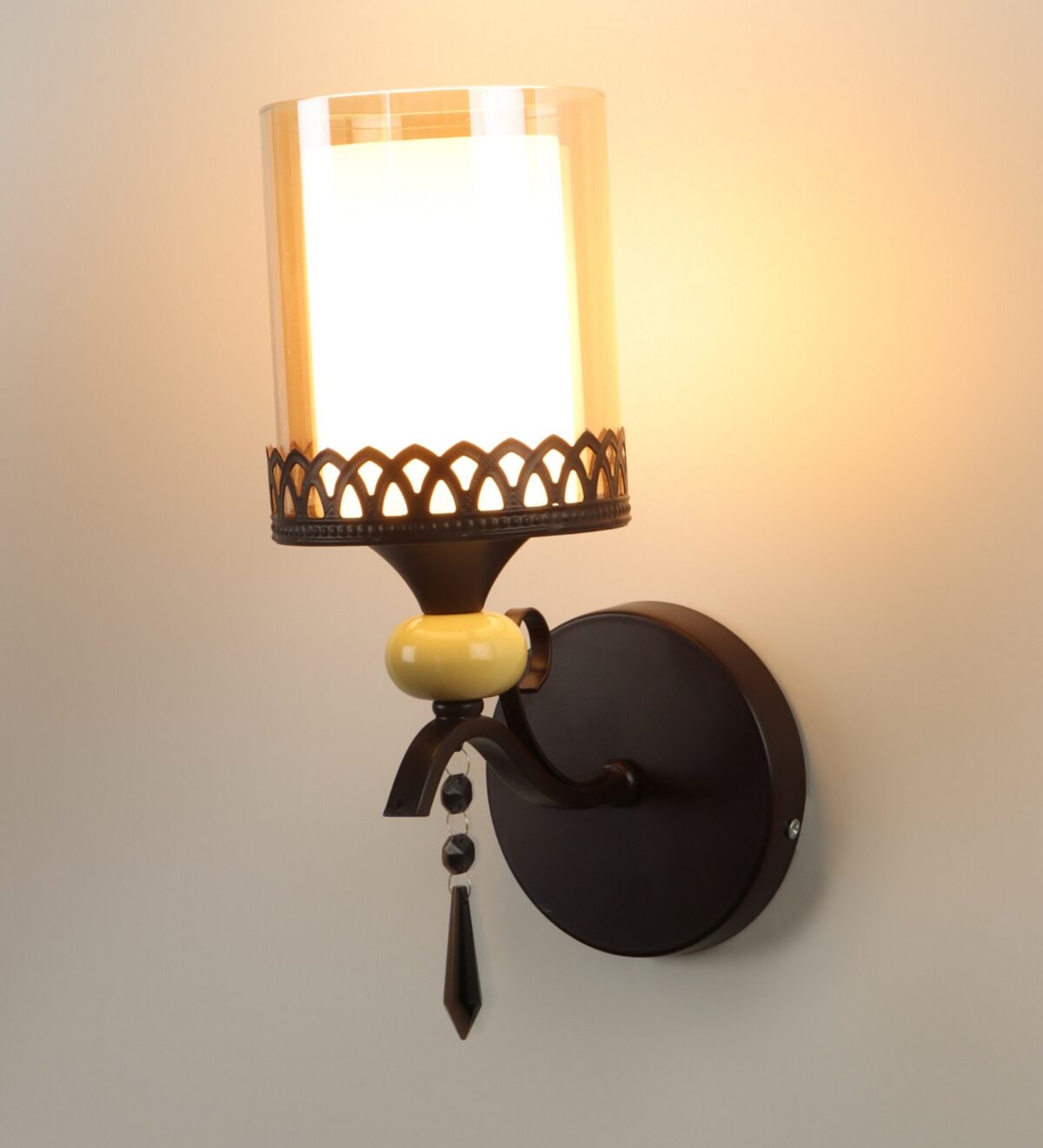 Dark brown, (wood) finish single wall light with cylinderical Champaign colored two layered glass . It is maintenance free, easy to remove glass and wash it. Comes with an E27 holder, only the change of lamp is required, which is available locally everywhere. Application includes both residential and commercial premises wherever it matches with your interiors. Matching double wall light code – WL2694. LAMP NOT INCLUDED.