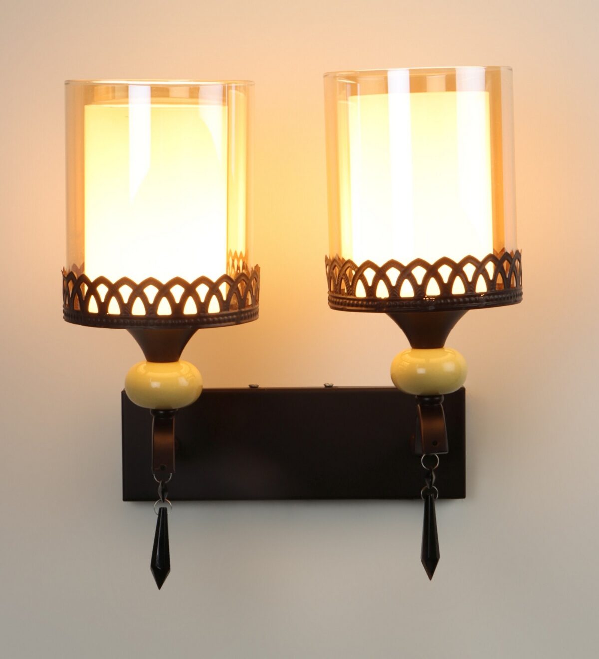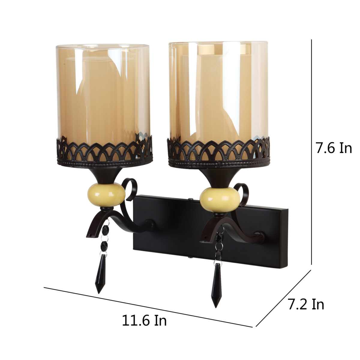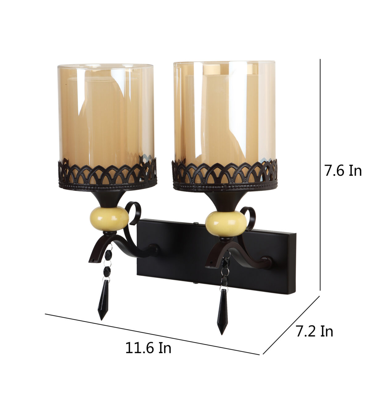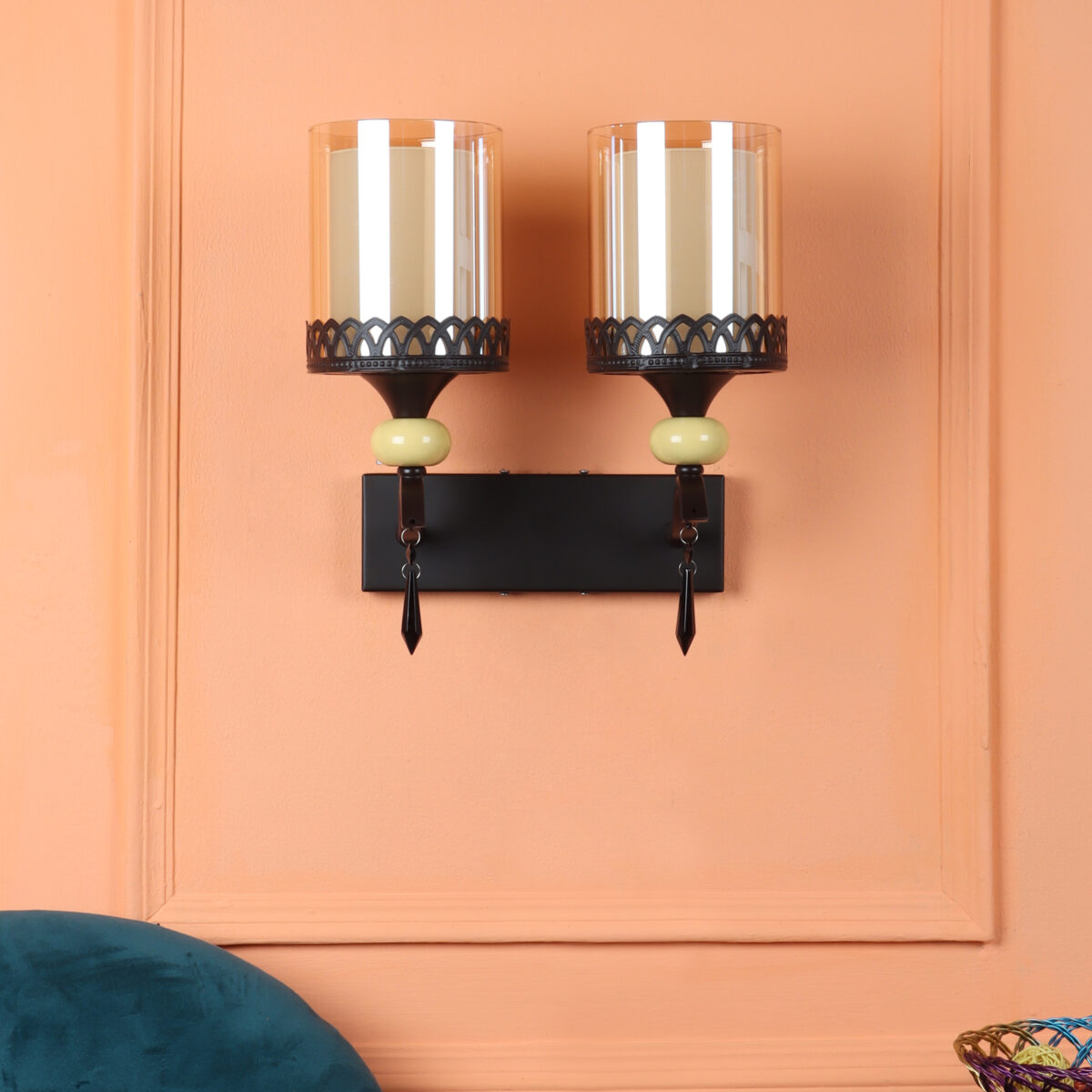 Dark brown, (wood) finish double wall light with cylinderical Champaign colored two layered glass . It is maintenance free, easy to remove glass and wash it. Comes with an E27 holder, only the change of lamp is required, which is available locally everywhere. Application includes both residential and commercial premises wherever it matches with your interiors. Matching single wall light code – WL2693. LAMP NOT INCLUDED.