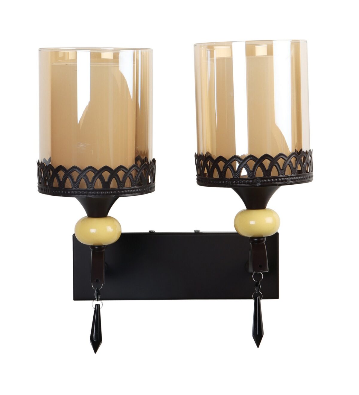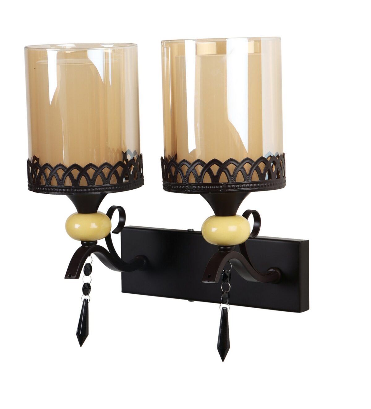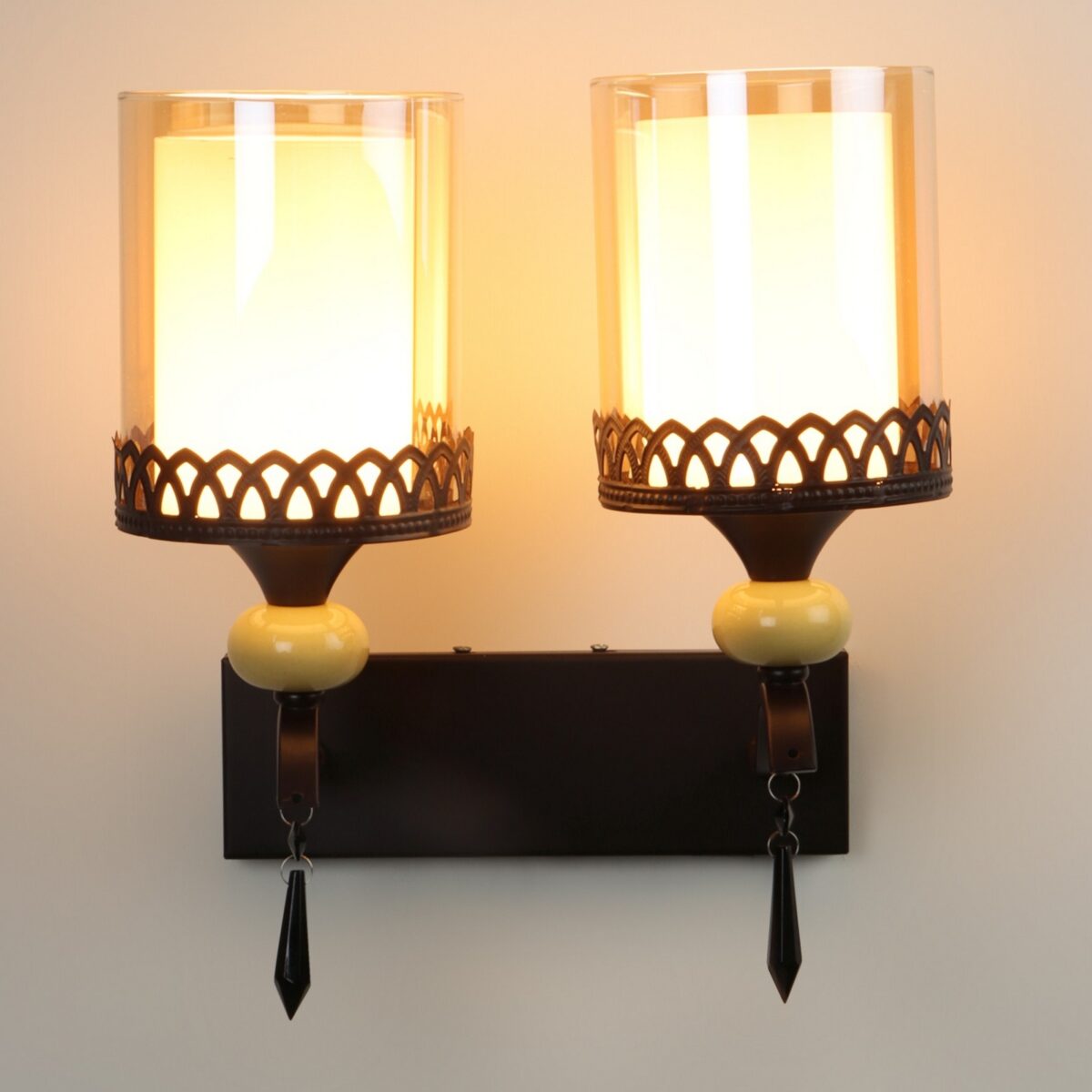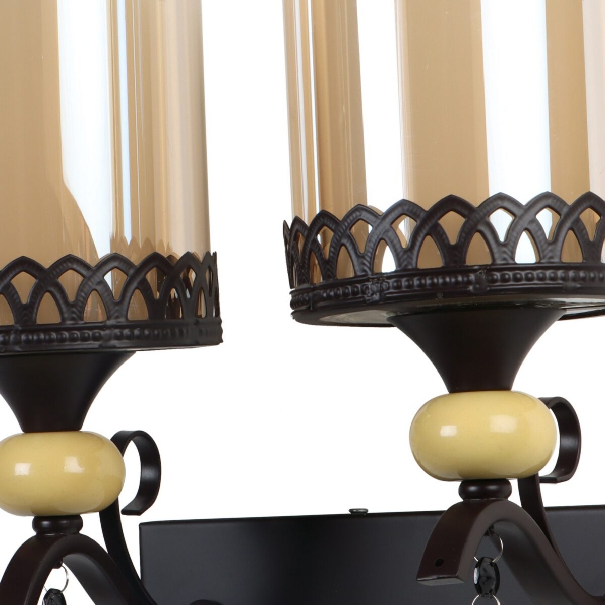 Dark brown, (wood) finish double wall light with cylinderical Champaign colored two layered glass . It is maintenance free, easy to remove glass and wash it. Comes with an E27 holder, only the change of lamp is required, which is available locally everywhere. Application includes both residential and commercial premises wherever it matches with your interiors. Matching single wall light code – WL2693. LAMP NOT INCLUDED.